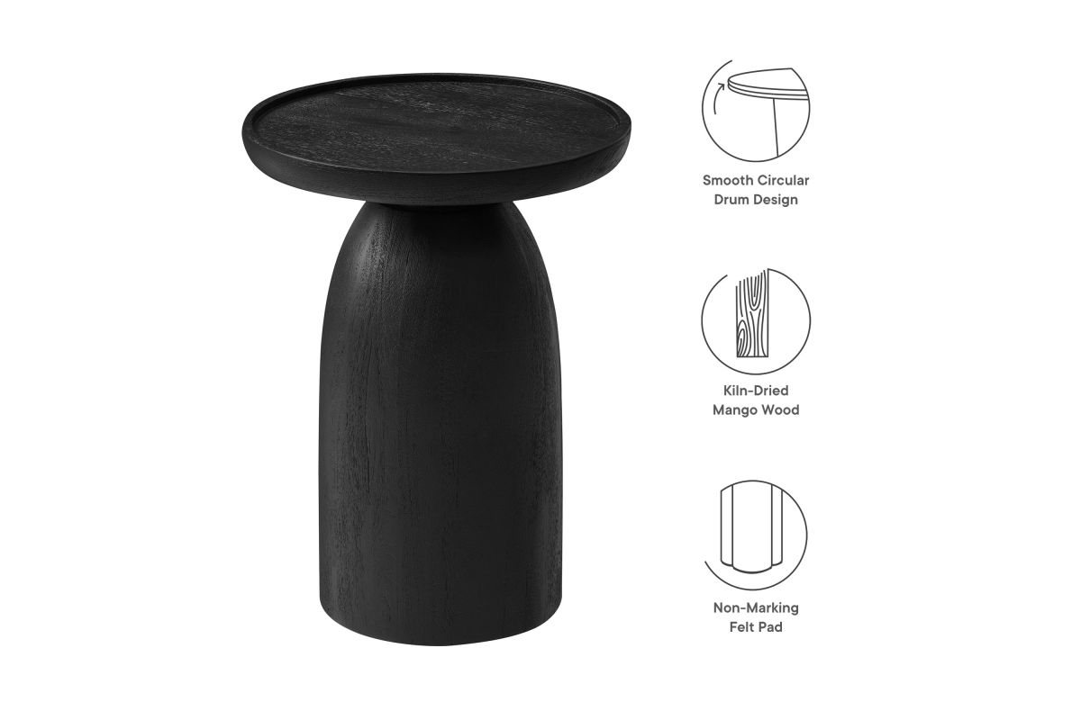 Bring timeless elegance to your living space with the Holloway Round Mango Wood Side Table. Crafted from solid mango wood, this small accent table features a smooth, circular drum design that combines contemporary style with mid-century modern appeal. Perfect as a side table, end table, or plant stand, the sturdy tabletop provides a durable surface for holding drinks, displaying decor, or showcasing your favorite indoor plants. Designed to complement small spaces, apartments, or modern living rooms, this round wood end table offers an inviting aesthetic that enhances a variety of interiors. The natural wood grain and warm tones highlight the beauty of mango wood, creating a versatile and sophisticated accent table. Arrives fully assembled. Weight Capacity: 200 lbs.