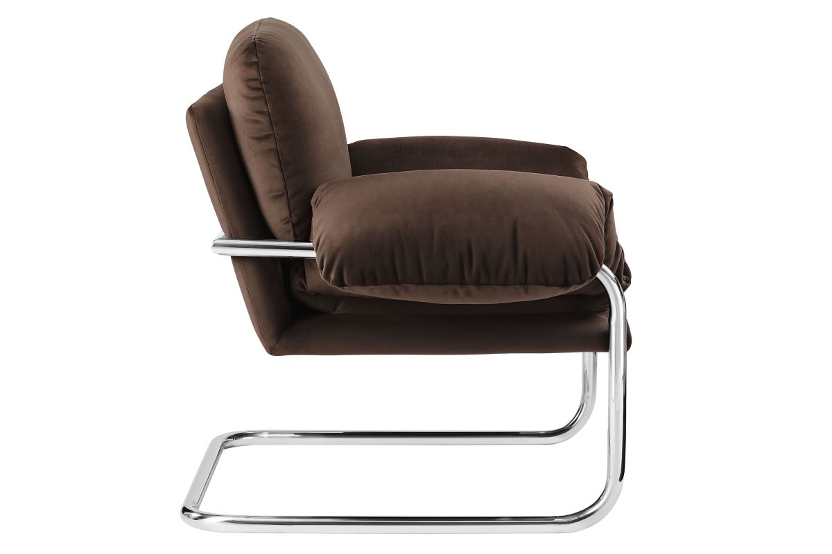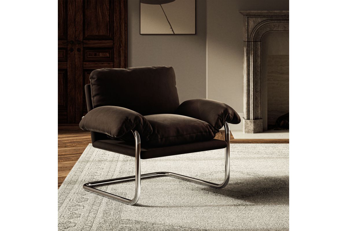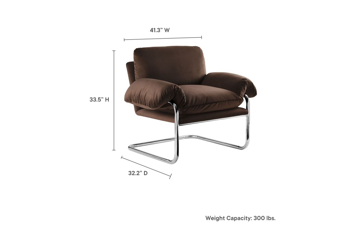 Sink into comfort with the Ansel Vintage Accent Armchair, an inviting statement chair perfect for your living room, bedroom, or lounge area. This modern retro armchair combines a stainless steel cantilever frame with the plush coziness of boucle fabric upholstery.The fixed back and seat provide a stable, lightly padded base, while a comfortable back cushion and a thick body cushion that drapes over the arms—add extra flair. Secured with metal fasteners, the body cushion stays firmly in place, creating an inviting, soft feel that complements the upholstered armchair’s mid century modern-inspired look. Designed with non-marking foot pins to protect your floors, this accent chair with arms effortlessly merges style with practicality. Ansel brings a sophisticated vintage charm to any space, creating a cozy yet refined atmosphere for relaxation and conversation. Weight Capacity: 300 lbs