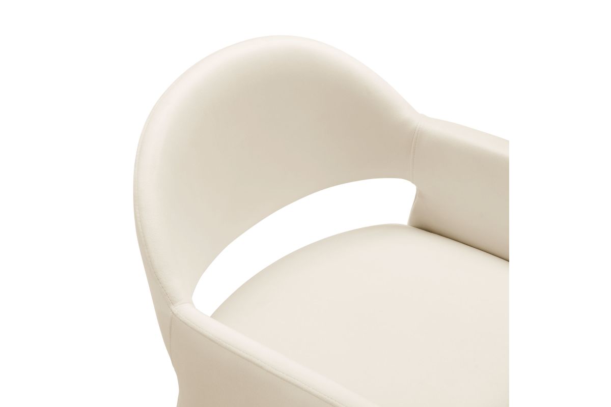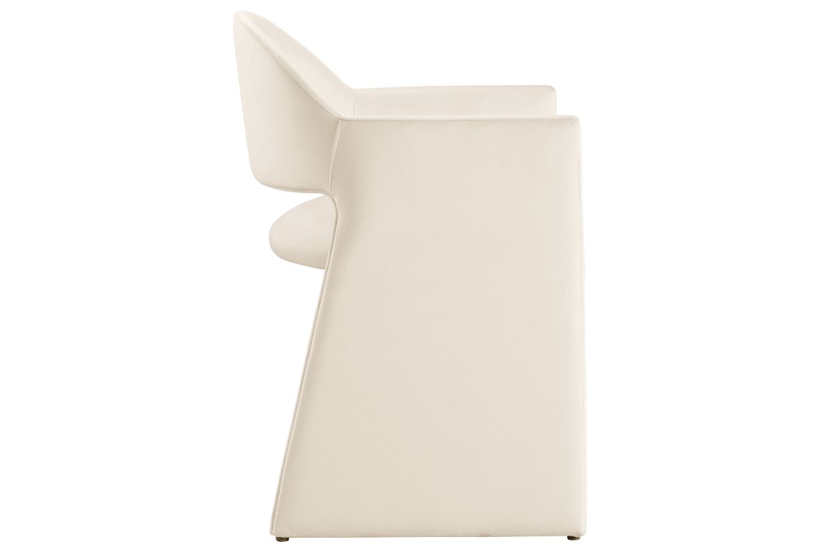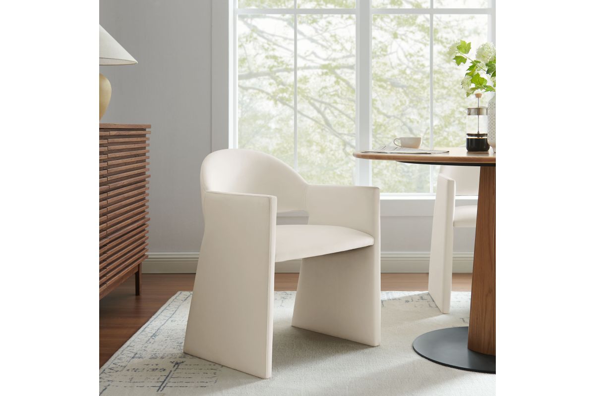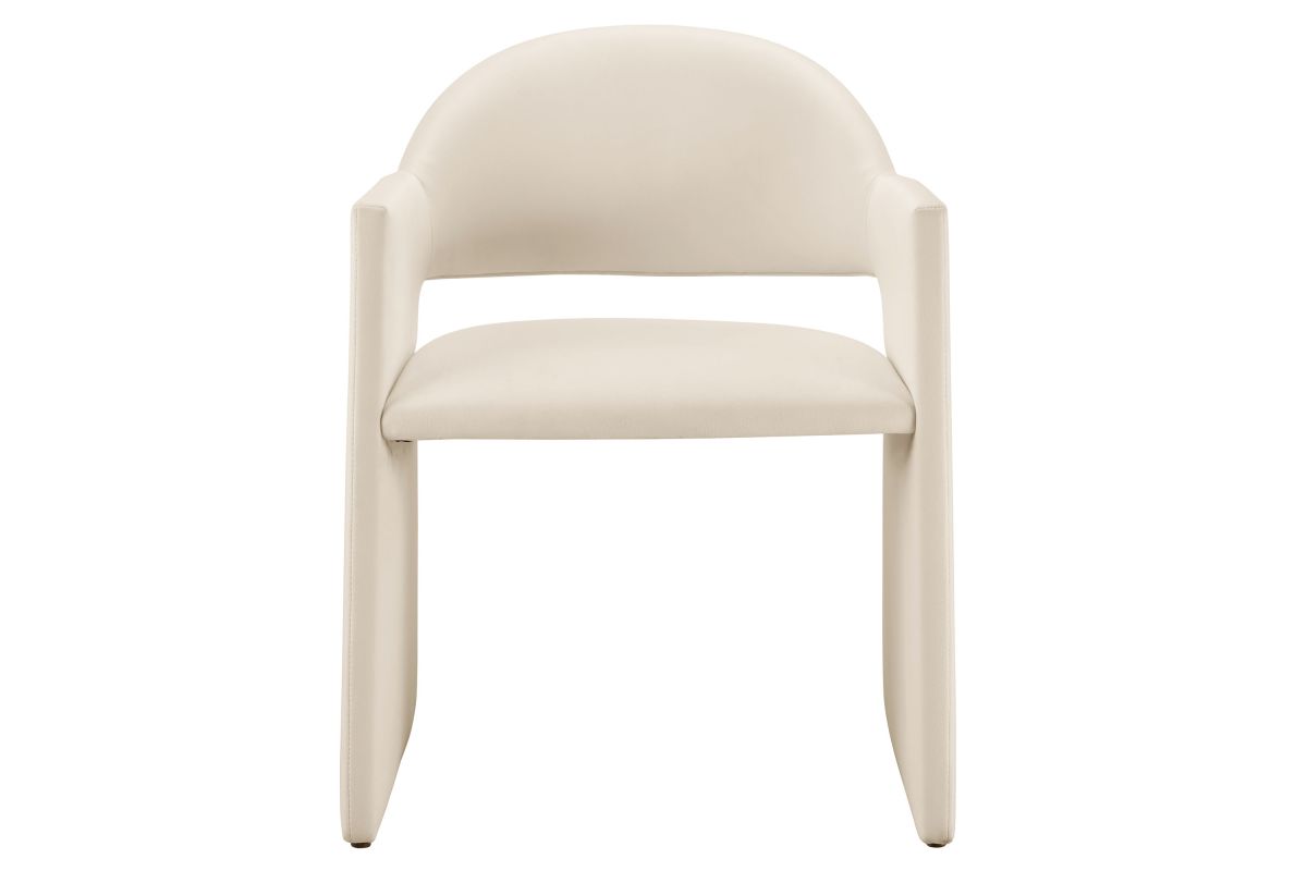 The Talia Performance Velvet Dining Chair is a stunning example of modern design, blending clean lines with luxurious comfort. Whether as a stylish living room accent chair, a statement piece in the dining area, or even a chic office accent chair, the Talia Barrel Back Dining Chair offers both timeless style and versatility. Built on a sturdy bentwood frame, this dining chair with arms is fully upholstered in soft, stain-resistant performance velvet for a premium feel. Its elegantly curved backrest flows seamlessly into wide, angular armrests that extend down to the floor, creating a sculptural look that's perfect for minimalist and contemporary spaces. The open-back design of this curved dining chair provides a light and airy feel, while the generously padded seat ensures lasting comfort. Completing the design, floor-protecting foot pins are included to prevent scratches, making it easy to move and enjoy without worry. The Talia Velvet Armchair arrives fully assembled, ready to elevate your space. Weight Capacity: 300 lbs.