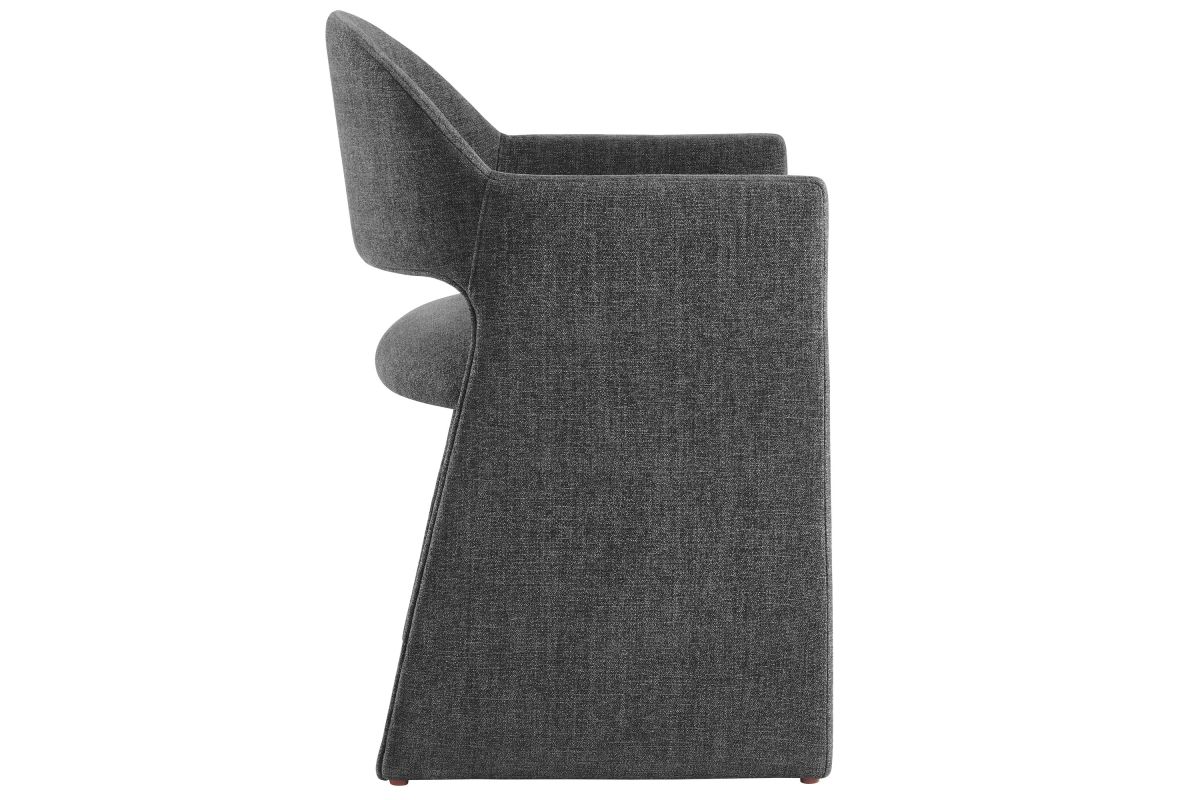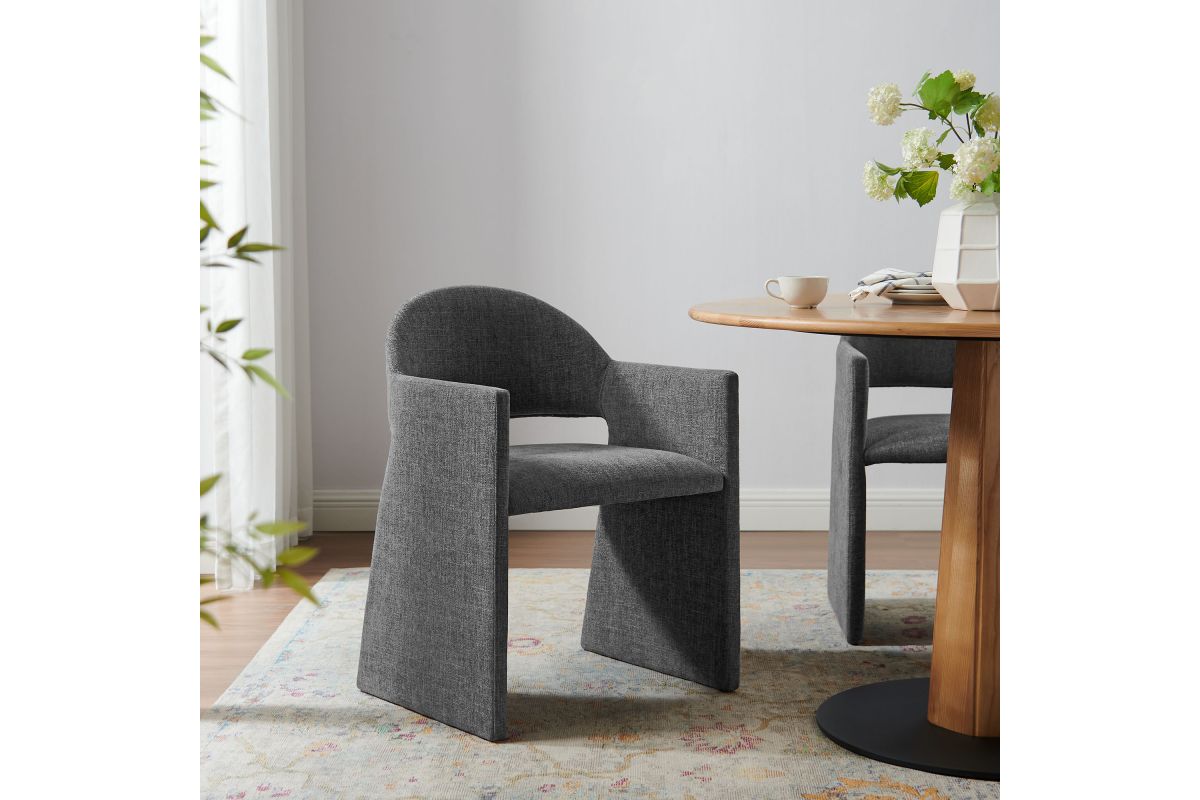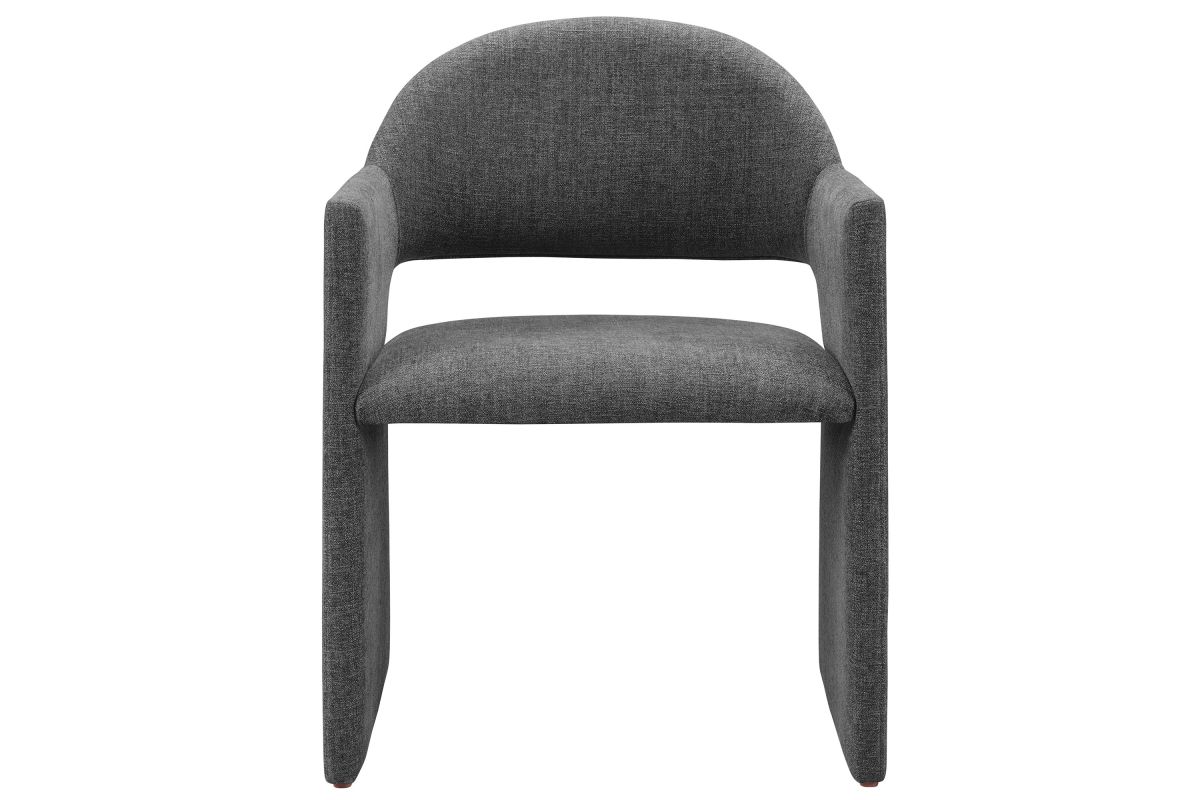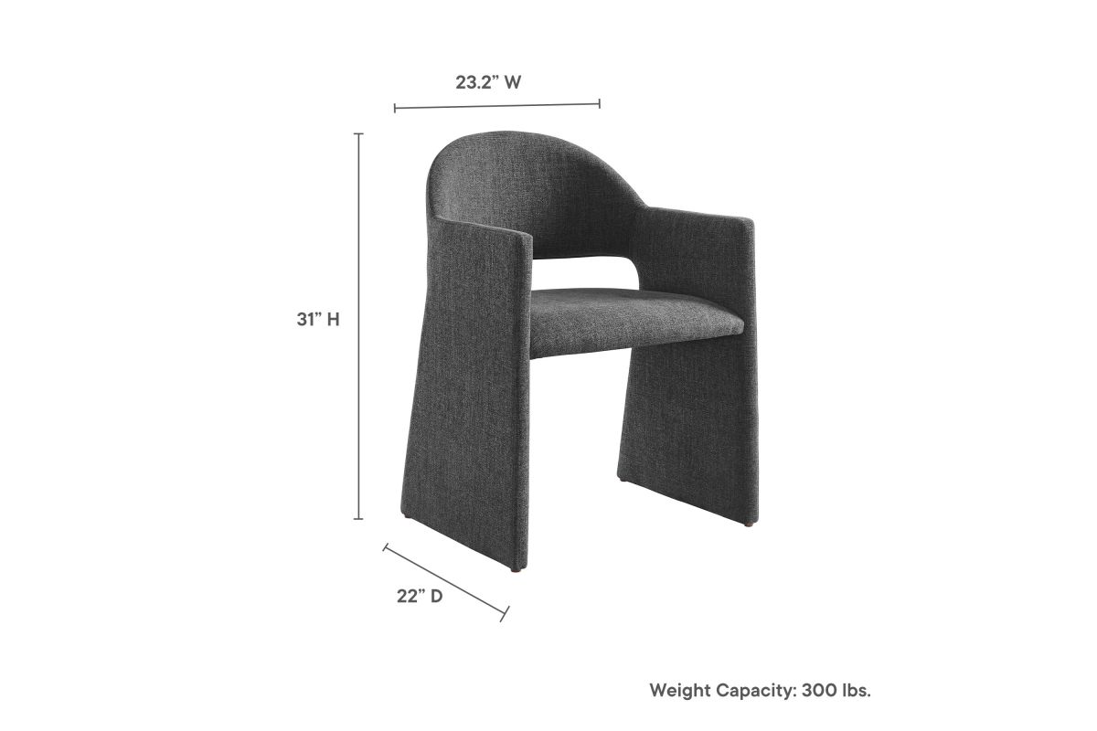The Talia Upholstered Dining Chair is a stunning example of modern design, blending clean lines with luxurious comfort. Whether as a stylish living room accent chair, a statement piece in the dining area, or even a chic office accent chair, the Talia Barrel Back Dining Chair offers both timeless style and versatility. Built on a sturdy bentwood frame, this dining chair with arms is fully upholstered in soft slub weave fabric for a premium feel. Its elegantly curved backrest flows seamlessly into angular armrests that extend down to the floor, creating a sculptural look that's perfect for minimalist and contemporary spaces. The open-back design of this curved dining chair provides a light and airy feel, while the generously padded seat ensures lasting comfort. Completing the design, floor-protecting foot pins are included to prevent scratches, making it easy to move and enjoy without worry. The Talia Dining Armchair arrives fully assembled, ready to elevate your space. Weight Capacity: 300 lbs.