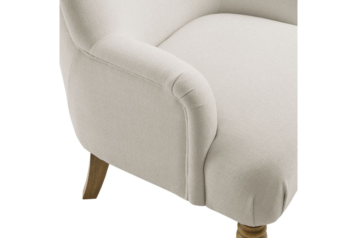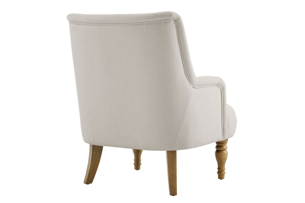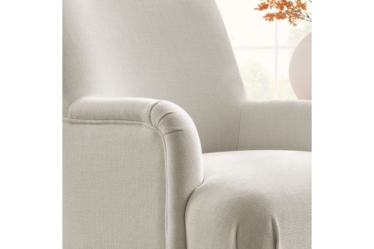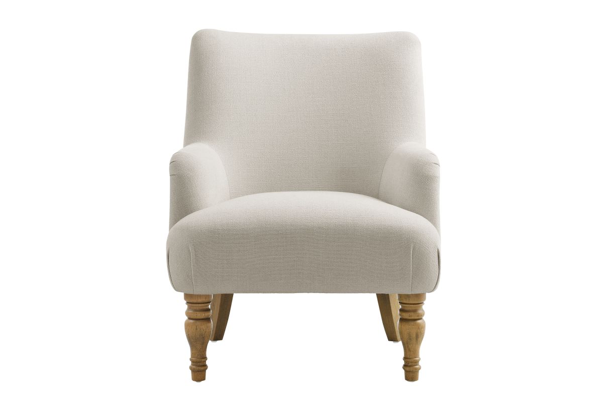 Elegance and comfort come together in the Ellington Accent Armchair, a sophisticated addition to any space. This armchair features plush upholstery in a textured slub weave-style fabric, providing a refined touch and inviting comfort. The high back and French piping trim create a polished silhouette, while the foam padding ensures a cozy seating experience. Designed with two turned front legs and two saber-style back legs, this accent chair blends traditional charm with a modern flair. Whether used as a lounge chair in the living room, a reading chair in the bedroom, or a cozy corner chair, the Ellington Fabric Chair adds a touch of timeless style to your home. Assembly required. Weight Capacity: 300 lbs.