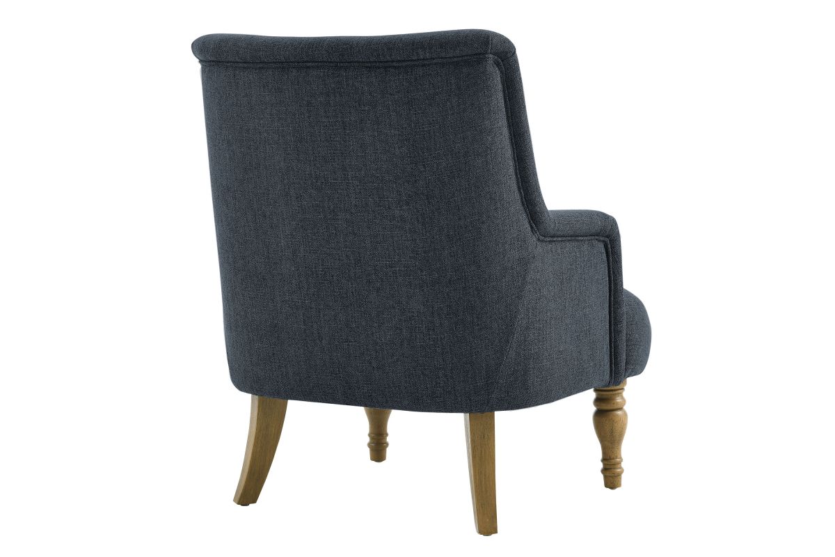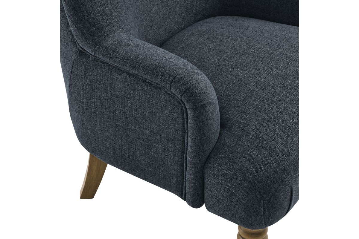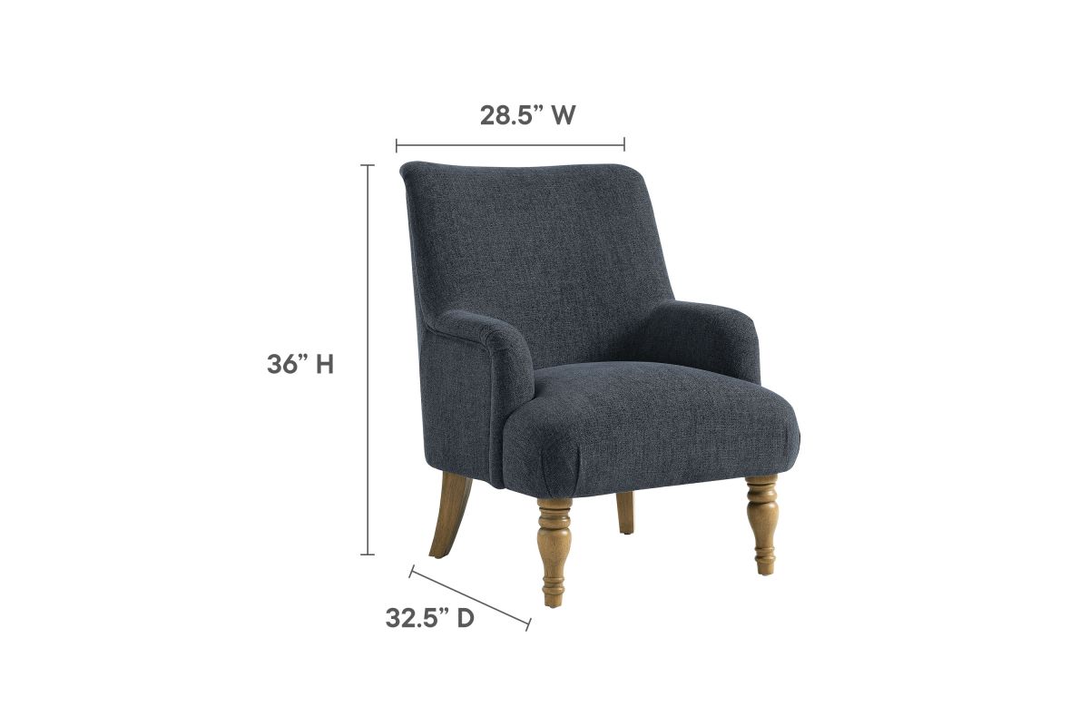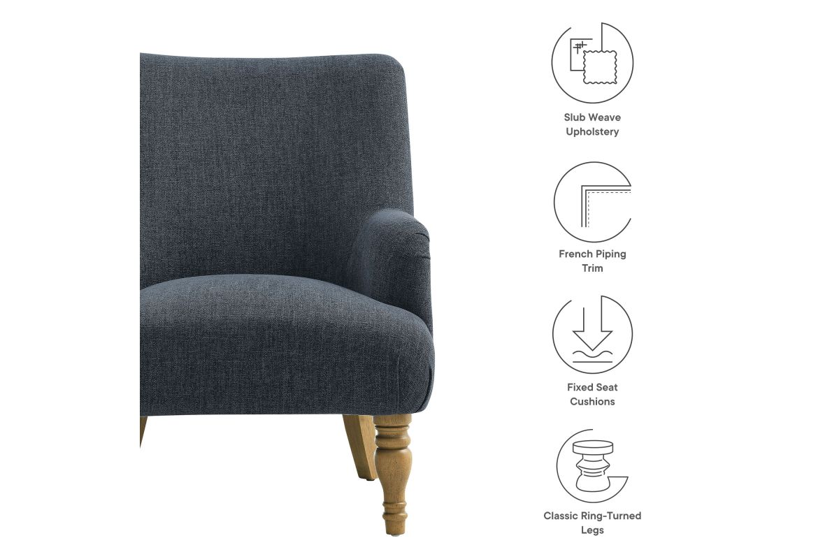 Elegance and comfort come together in the Ellington Accent Armchair, a sophisticated addition to any space. This armchair features plush upholstery in a textured slub weave-style fabric, providing a refined touch and inviting comfort. The high back and French piping trim create a polished silhouette, while the foam padding ensures a cozy seating experience. Designed with two turned front legs and two saber-style back legs, this accent chair blends traditional charm with a modern flair. Whether used as a lounge chair in the living room, a reading chair in the bedroom, or a cozy corner chair, the Ellington Fabric Chair adds a touch of timeless style to your home. Assembly required. Weight Capacity: 300 lbs.