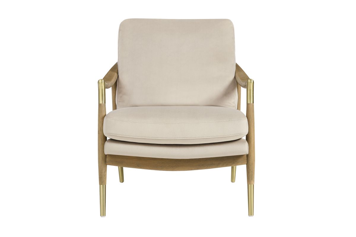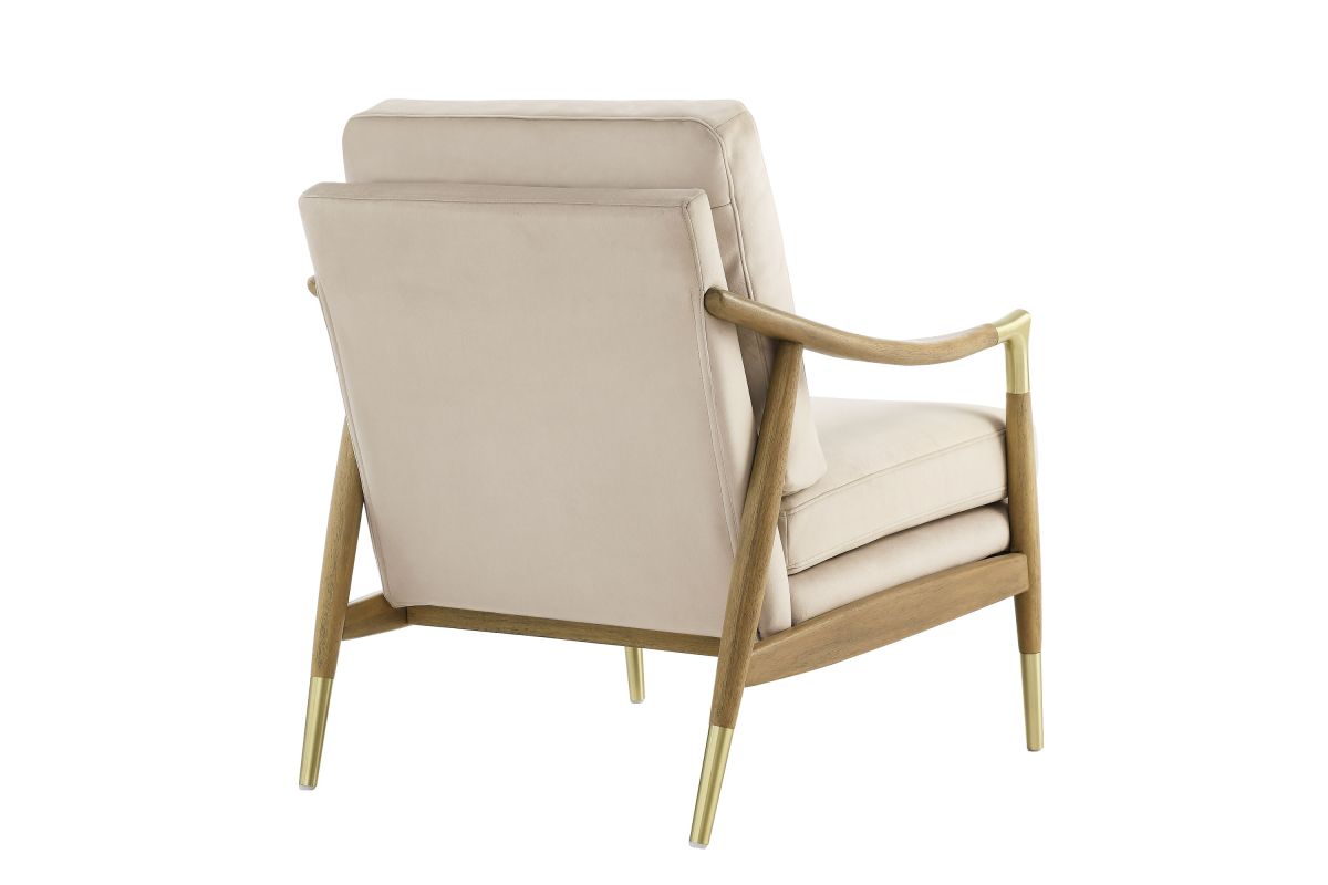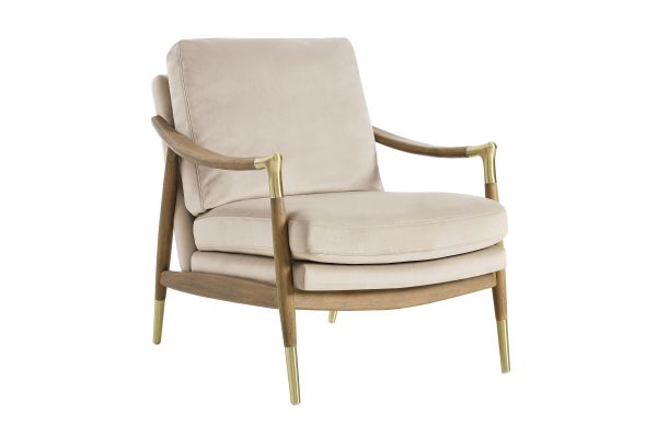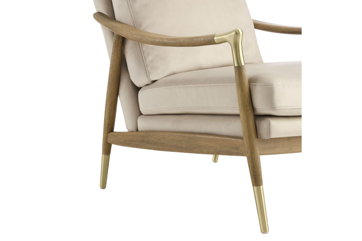 Enhance your living space with the Langford Performance Velvet Living Room Chair, where elegance meets comfort in a timeless mid-century modern design. Upholstered in stain-resistant performance velvet, this accent chair adds a sophisticated touch with its inviting, plush texture and resilient finish. Brass accents on the legs and corners of the swooped armrests bring a refined charm, highlighting the velvet chair's clean lines and classic structure. Crafted with a solid kiln-dried wood frame, this accent chair with arms is as durable as it is stylish, offering long-lasting support and comfort. Langford's cushions provide a consistent look and feel, ensuring this modern armchair remains as cozy as it is chic. Perfect for reading nooks, living rooms, or as a striking bedroom accent, the Langford Reading Nook Chair combines mid-century modern flair with modern functionality. Assembly required, with clear instructions provided for an easy setup. Weight Capacity: 300 lbs.