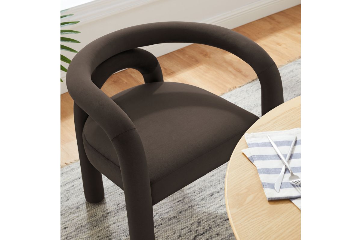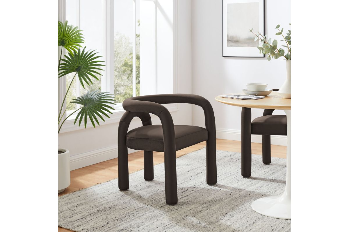 The Astrid Upholstered Barrel Dining Chair effortlessly combines modern sophistication with a hint of eclectic charm. Designed with an open-back silhouette and smooth, sweeping curves, this performance velvet dining chair adds a contemporary flair that fits beautifully in various settings. The upholstered chair�s padded foam cushion and stain-resistant performance velvet fabric ensure both style and comfort, making it an ideal choice for dining rooms, vanities, or as an accent chair in living spaces. Arriving fully assembled and equipped with non-marking floor glides, this aesthetic chair with an arch backrest is a versatile and functional addition to any modern or contemporary decor. Weight Capacity: 300 lbs.