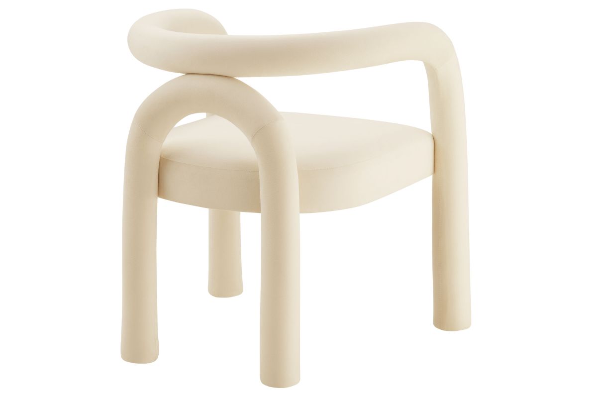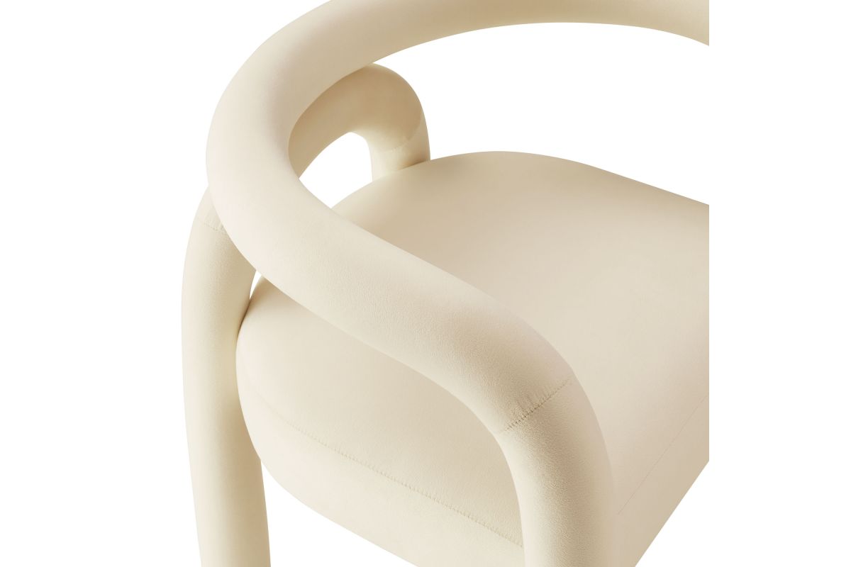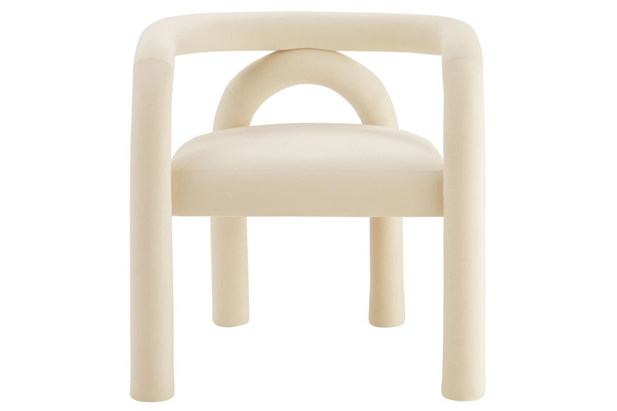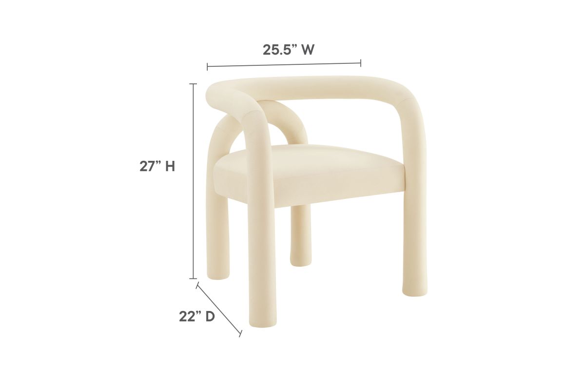 The Astrid Upholstered Barrel Dining Chair effortlessly combines modern sophistication with a hint of eclectic charm. Designed with an open-back silhouette and smooth, sweeping curves, this performance velvet dining chair adds a contemporary flair that fits beautifully in various settings. The upholstered chair's padded foam cushion and stain-resistant performance velvet fabric ensure both style and comfort, making it an ideal choice for dining rooms, vanities, or as an accent chair in living spaces. Arriving fully assembled and equipped with non-marking floor glides, this aesthetic chair with an arch backrest is a versatile and functional addition to any modern or contemporary decor. Weight Capacity: 300 lbs.