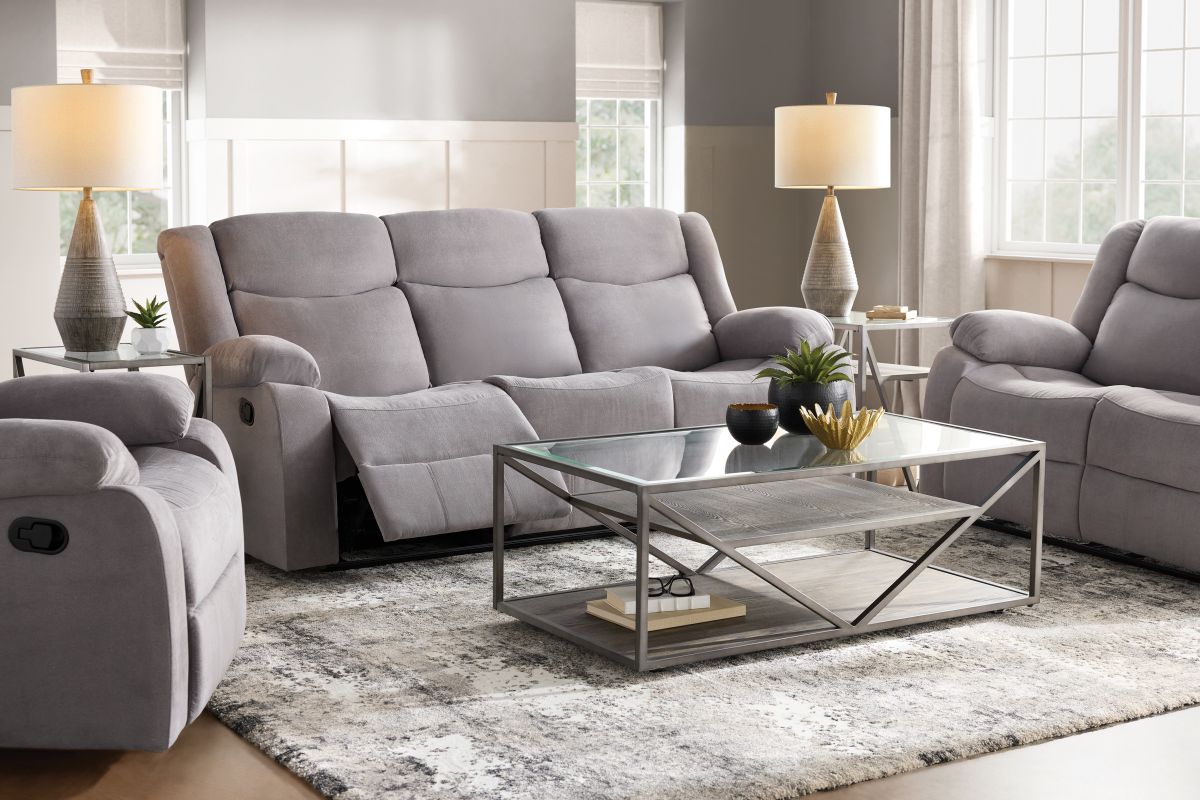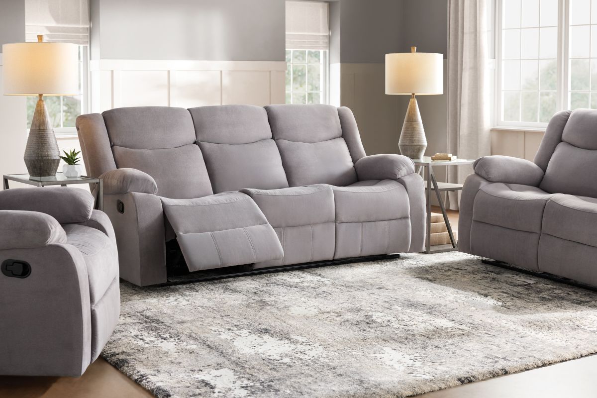 Turn your living space into a haven of relaxation with the River motion collection, designed for comfort that moves with you. Upholstered in a soft, grey fabric, the River offers plush cushioning, generously padded armrests, and smooth manual reclining mechanisms. Whether you're settling in for movie night or sneaking in a midday nap, this collection delivers cozy support and seamless functionality in every seat. The neutral tone and clean silhouette make it a versatile fit for any modern home, while the durability ensures it’s built to last.