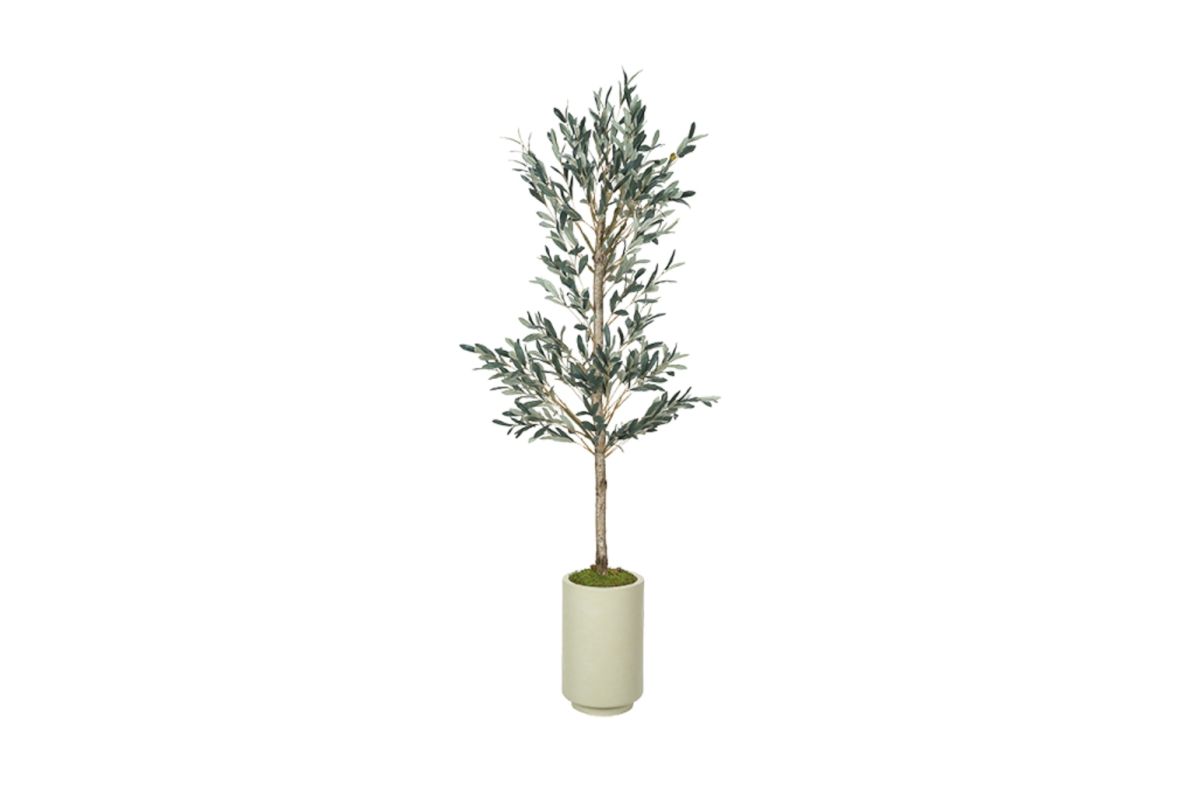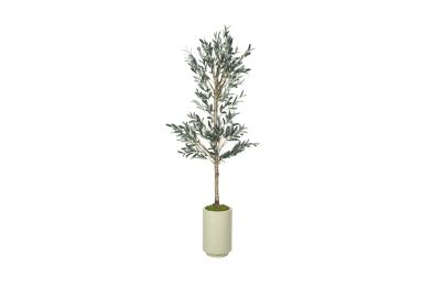 Add a touch of Mediterranean charm to your home with this 6' faux olive tree. Lush, realistic foliage and delicate olive details bring natural beauty and texture to any space—without the need for watering or sunlight. Standing tall in a sleek, neutral planter, this artificial tree is perfect for corners, entryways, or open living areas, offering effortless style and greenery that lasts year-round.