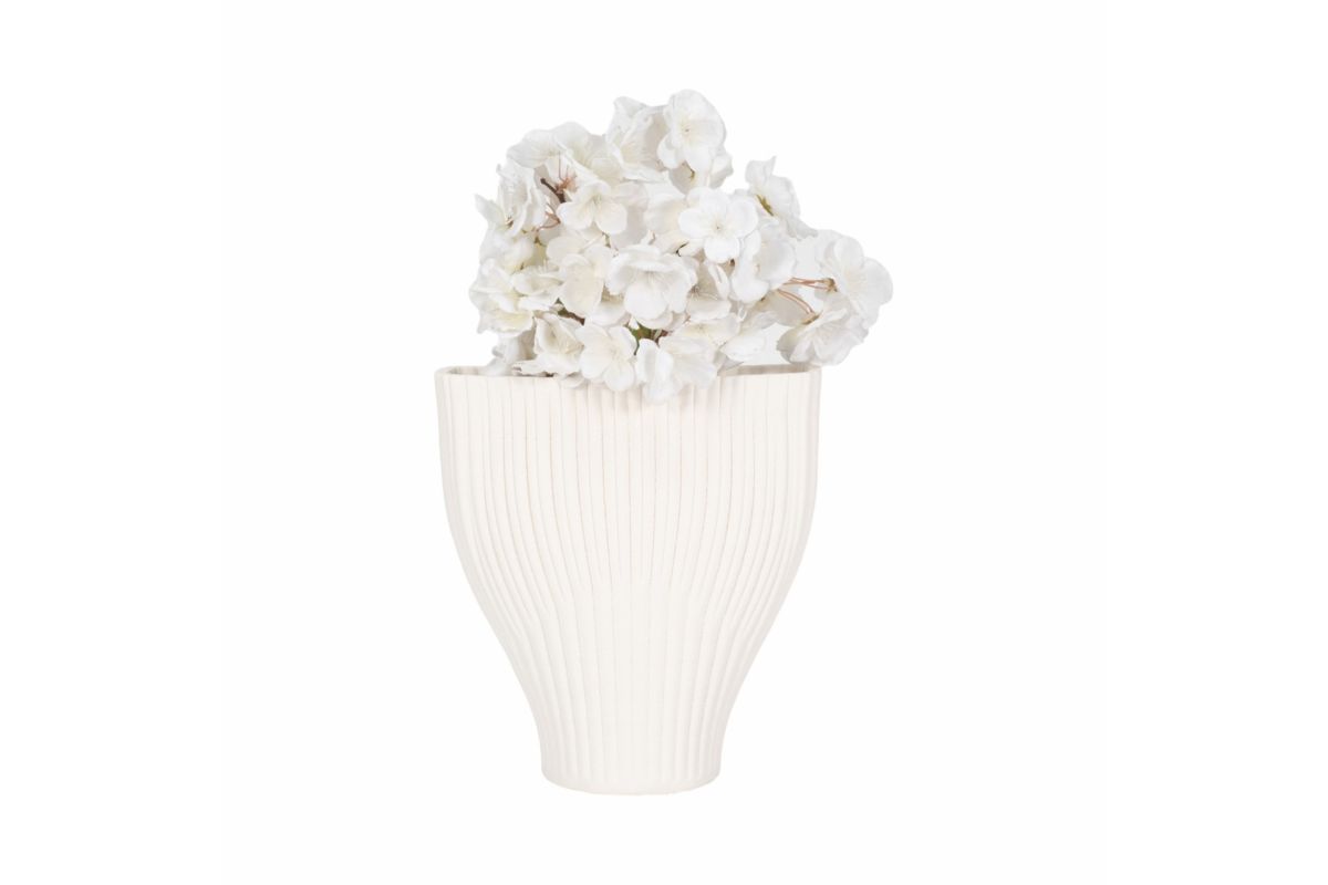 Elevate your space with the understated elegance of the Bello Printed Vase. Featuring a gently flared silhouette and vertical ribbed texture, this matte ivory vase offers a clean, sculptural presence perfect for modern, minimalist, or Scandinavian-inspired interiors. Its neutral tone and soft tactile surface make it an ideal vessel for dried stems, fresh florals, or as a standalone decor piece.