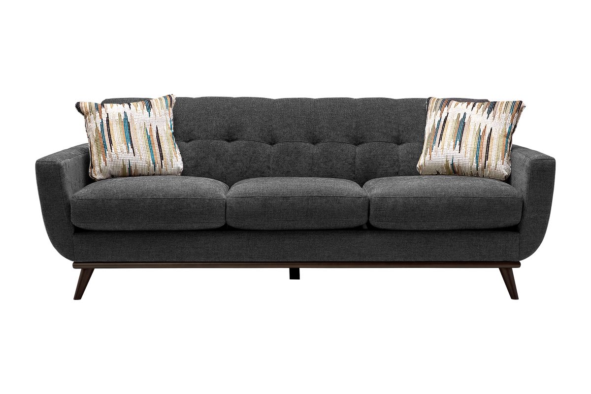 Elliot's streamlined silhouette creates a sofa that is as comfortable as it is stylish. This fashionable, mid-century inspired design will bring your room alive with its compact frame and trendy upholstery choices. Sofa includes 2 free accent pillows with charming mid-century modern diamond pattern design. Pairing well with modern decor, pops of color, or soothing neutrals the Elliot adds a stylish impact to any living space.