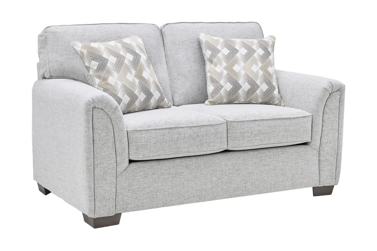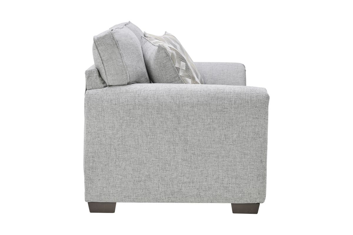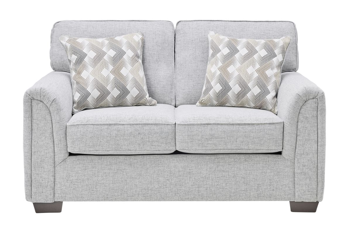 Create a bright and inviting living space with the stylish and comfortable Mackenzie collection. Featuring a clean-lined silhouette with gently sloped arms, this set blends modern simplicity with cozy charm. The soft, light grey fabric upholstery adds a fresh and airy feel, while plush seat and back cushions provide exceptional comfort for lounging or entertaining. Coordinating accent pillows introduce a subtle pattern for added visual interest. Designed for versatility and durability, the Mackenzie is perfect for contemporary, transitional, or minimalist interiors, making it a timeless addition to any home.