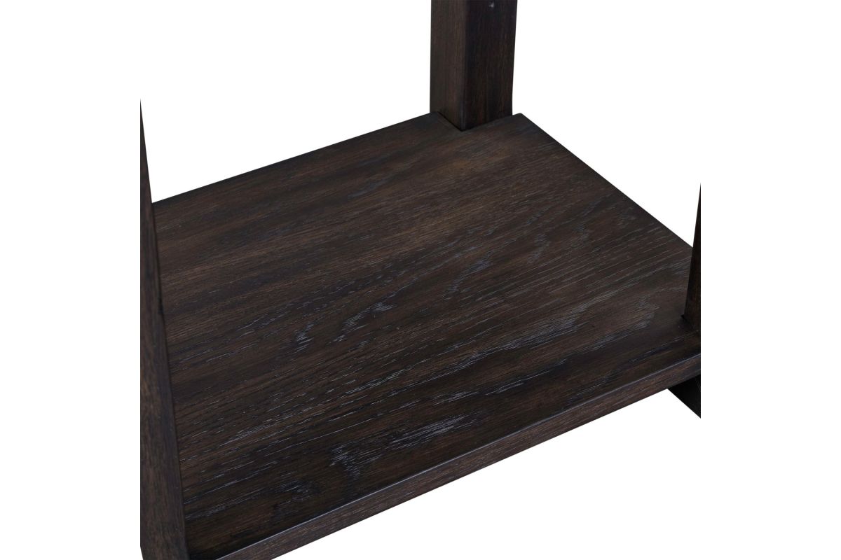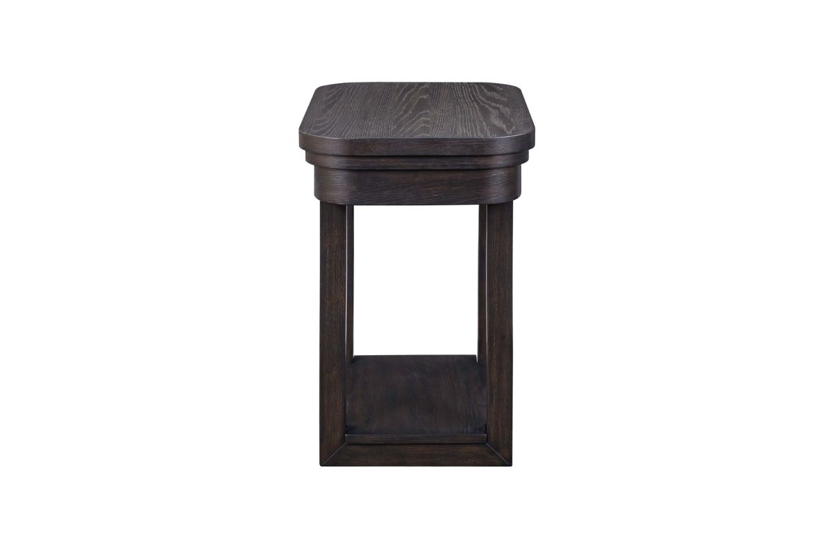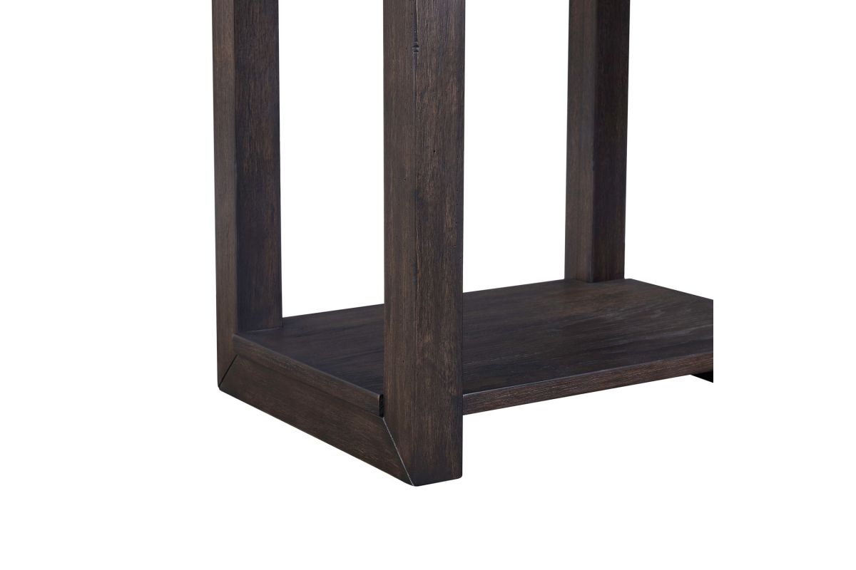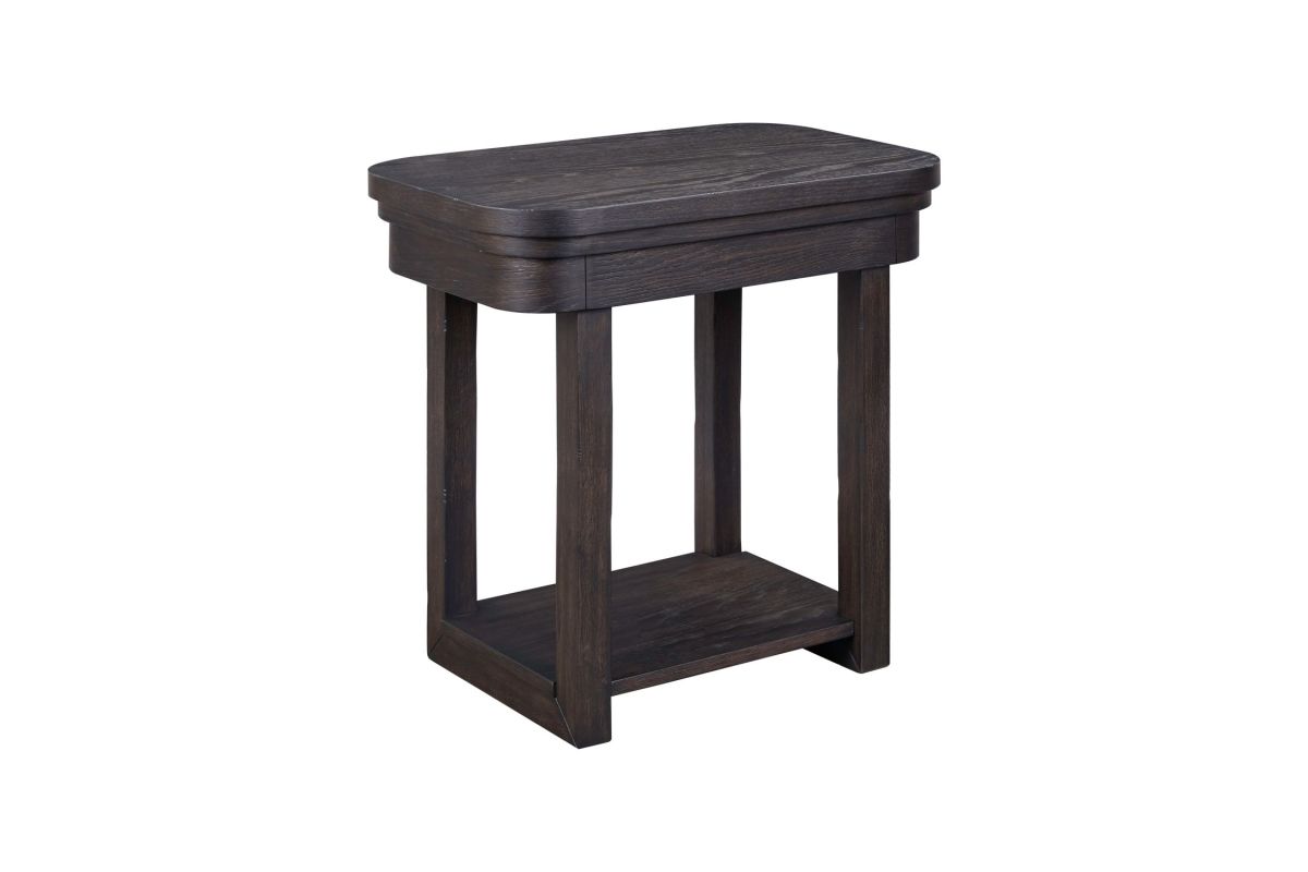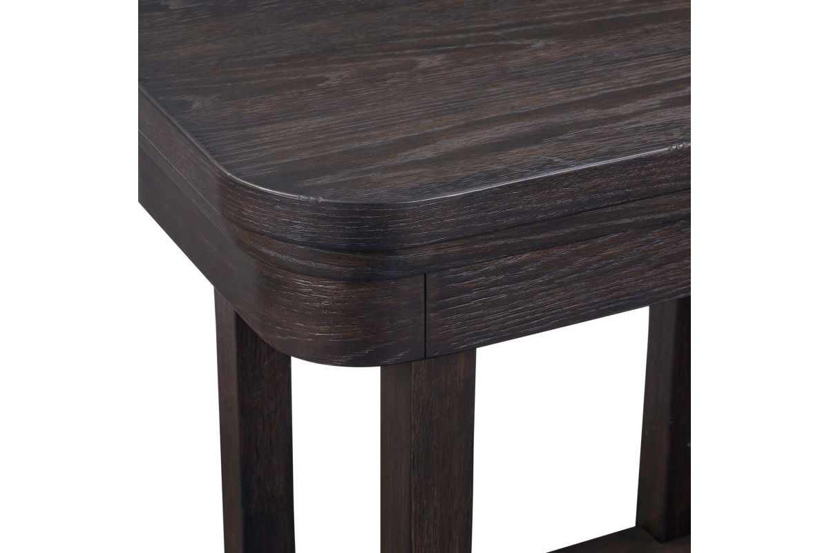 The Weston Chaiside features softly rounded corners with heavy wirebrused distressing. The table offers extra shelf for storage.
