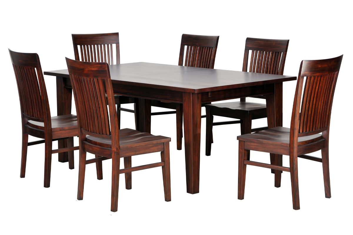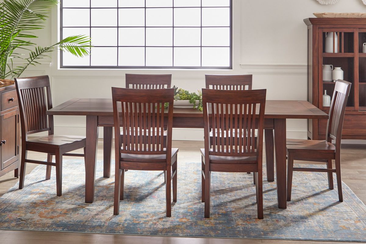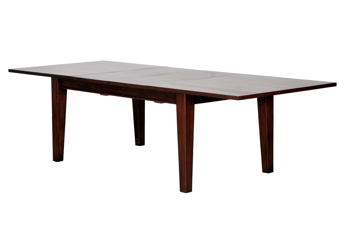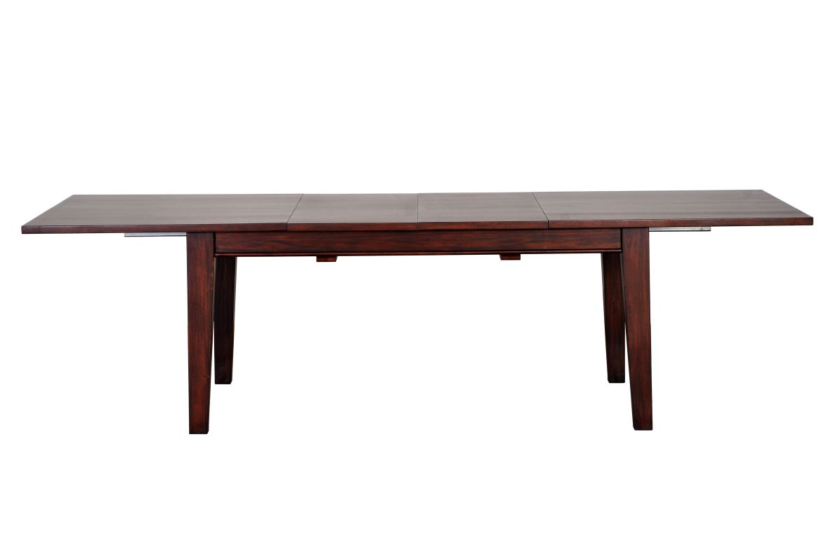 The Mahogany Dining Table has Solid wood tops with floating top construction. All wood is double sealed “by hand” before assembly to ensure correct and consistent moisture content dramatically reducing any chance of warping or splitting. Extends to 108″ with (2) 18" self-storing leaves.