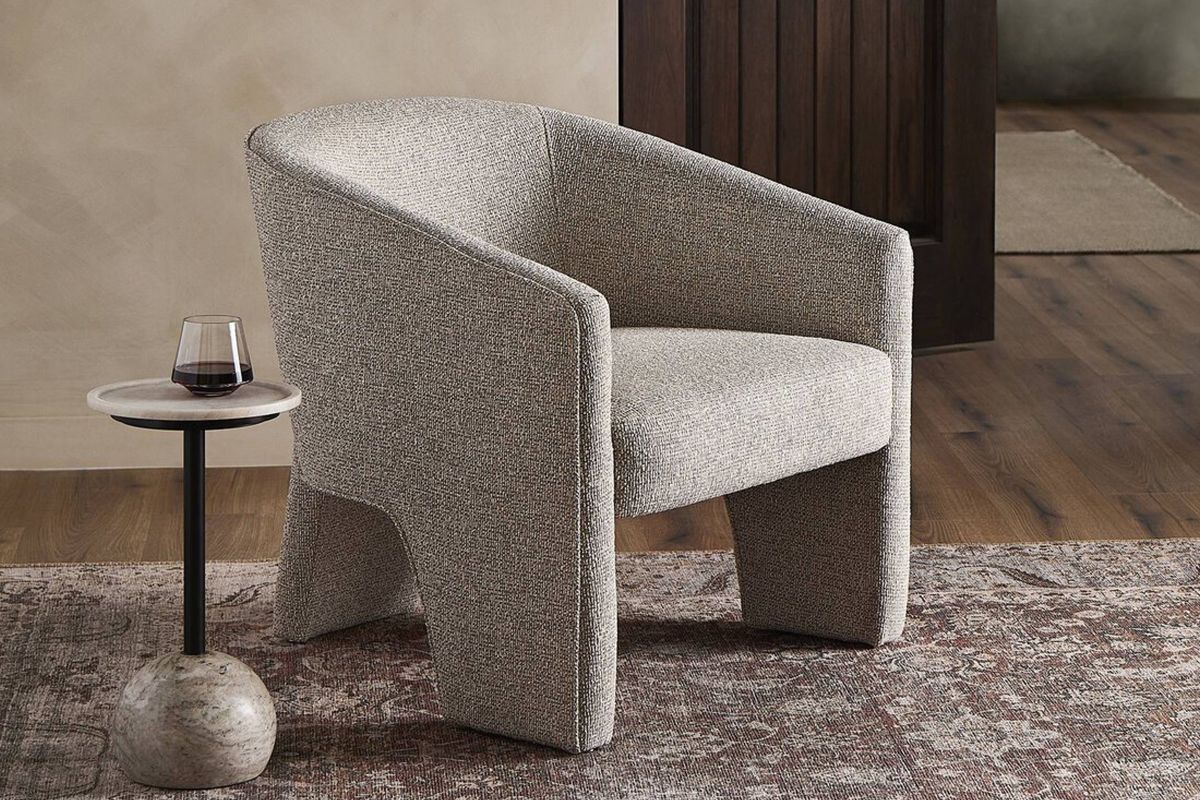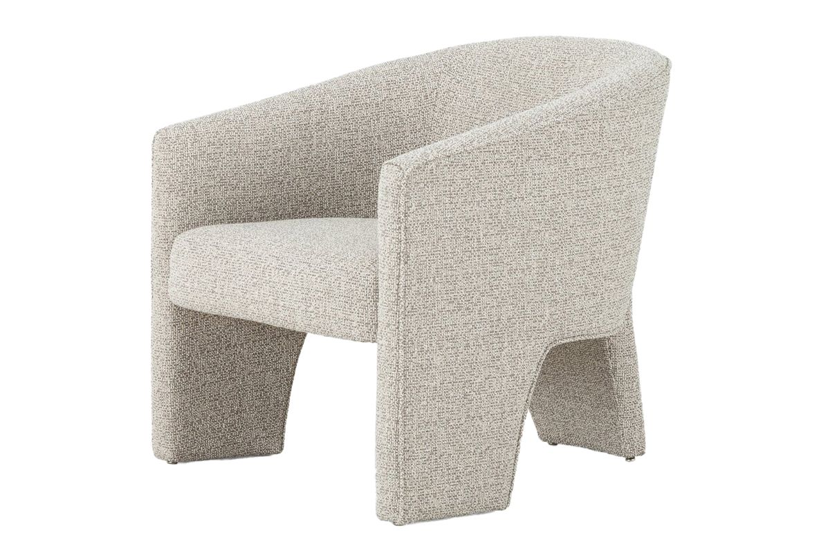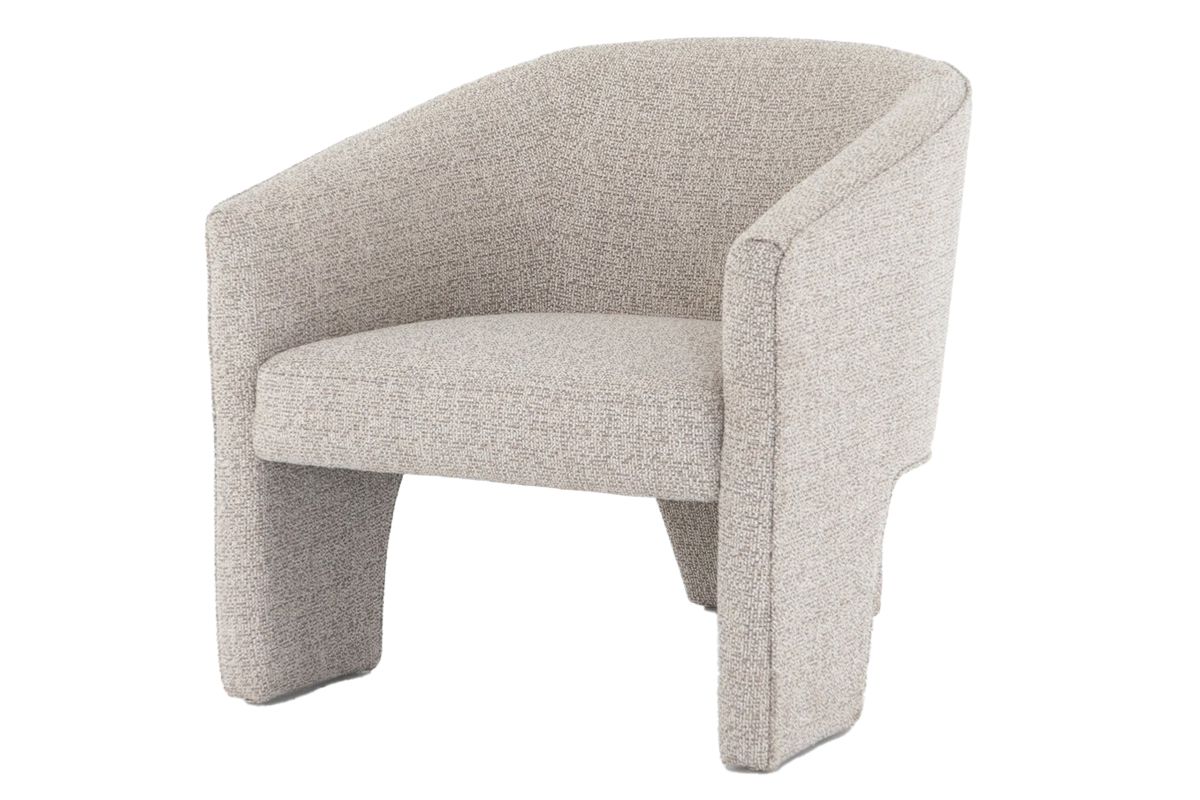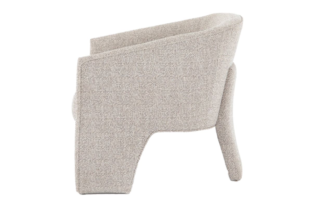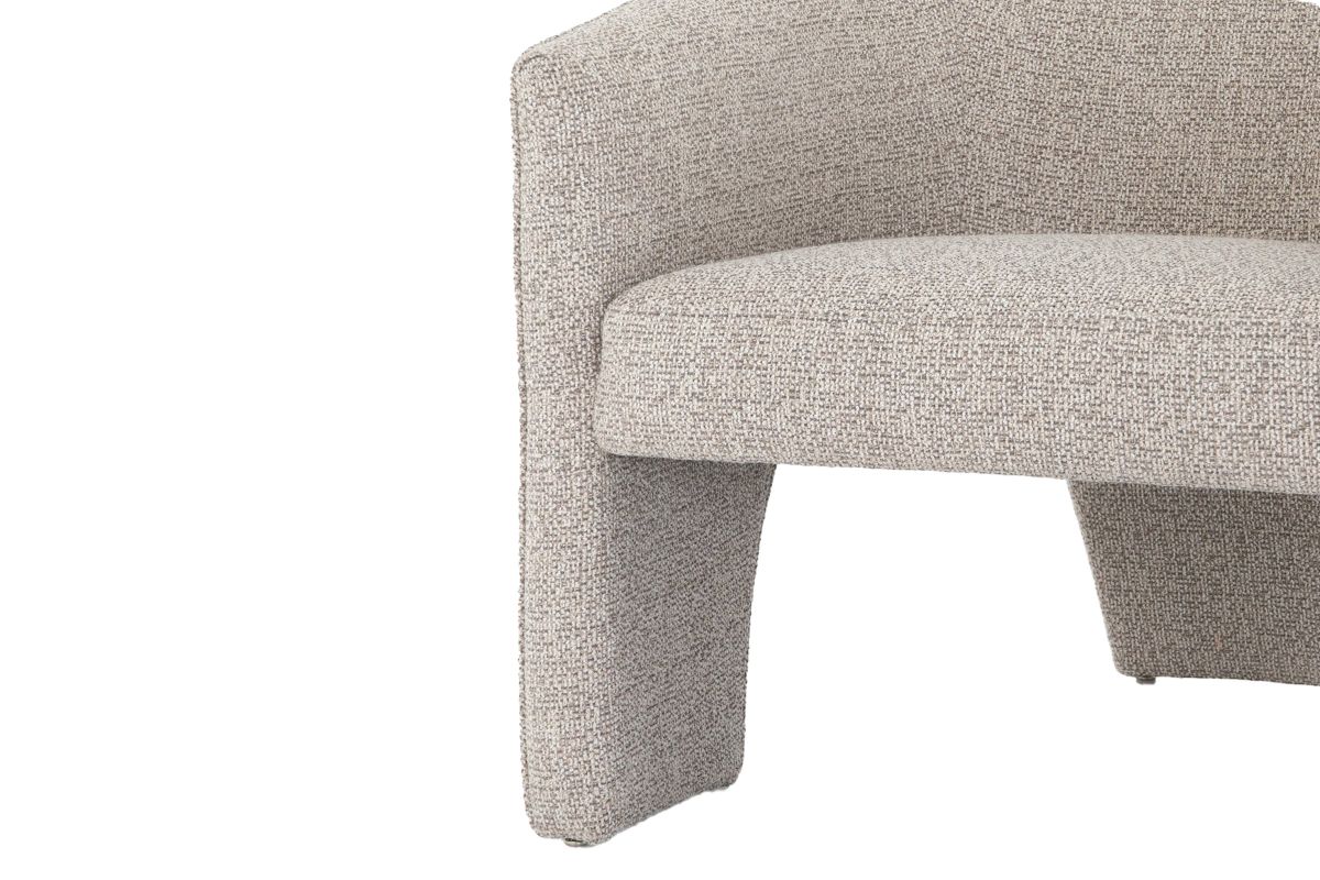 A striking three-legged dining chair that blends artful design with everyday comfort. Expertly upholstered in a soft, neutral fabric, this sculptural silhouette adds a touch of high-fashion sophistication while maintaining effortless versatility for real-life living.