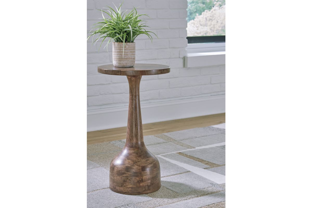 The perfect pedestal for a plant or decorative accents, this accent table highlights the simple refinement of wood. Its slim-turned design slides expertly between chairs or next to a wall, providing a chic surface for drinks and other essentials. It's a sleek, stunning complement to your contemporary home.