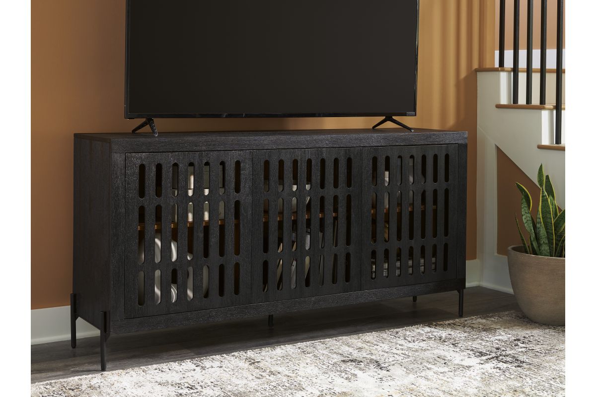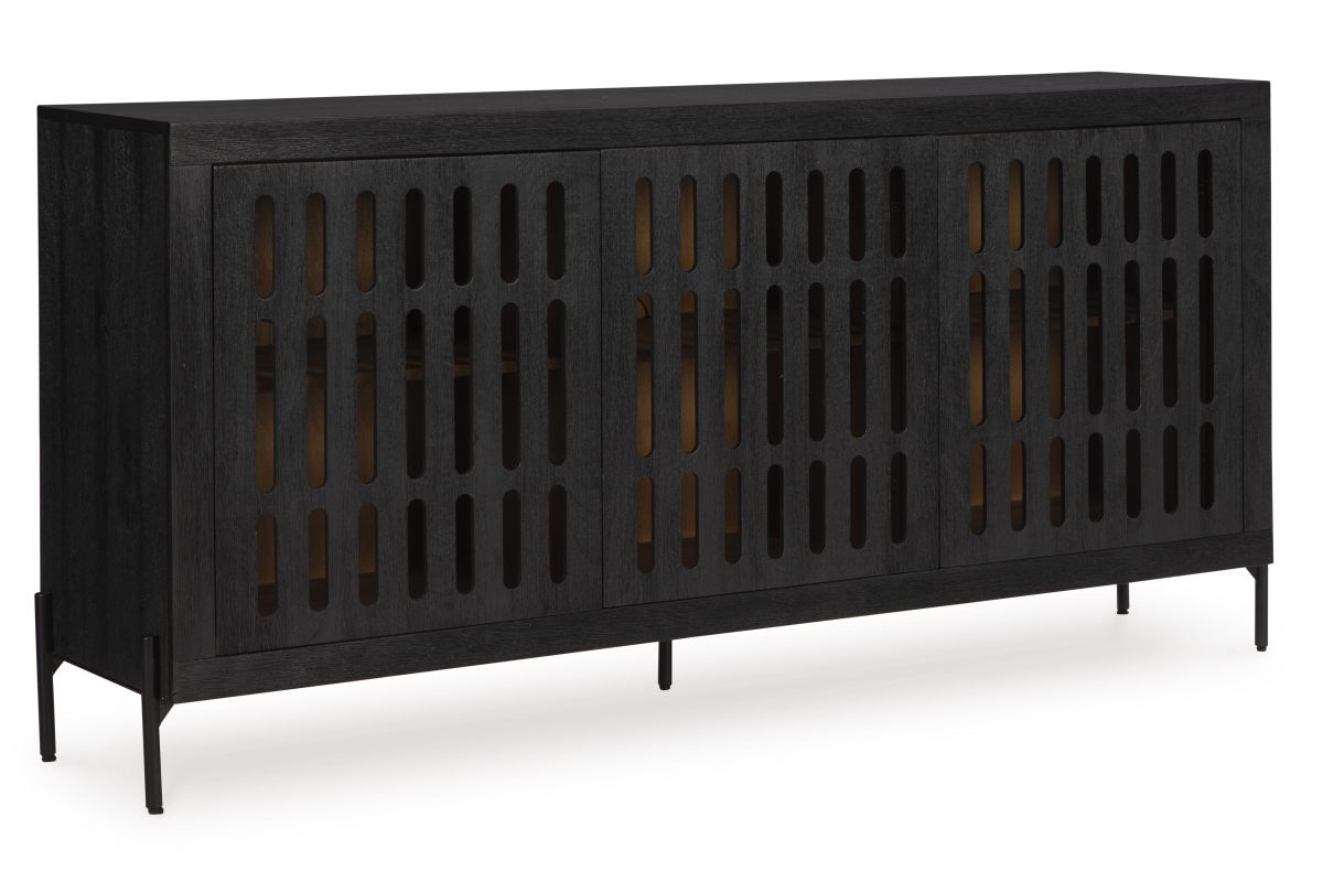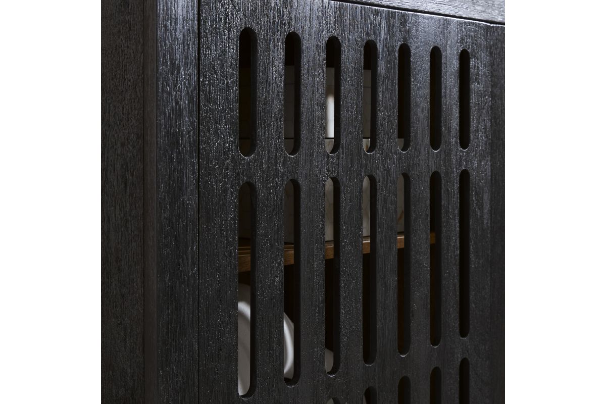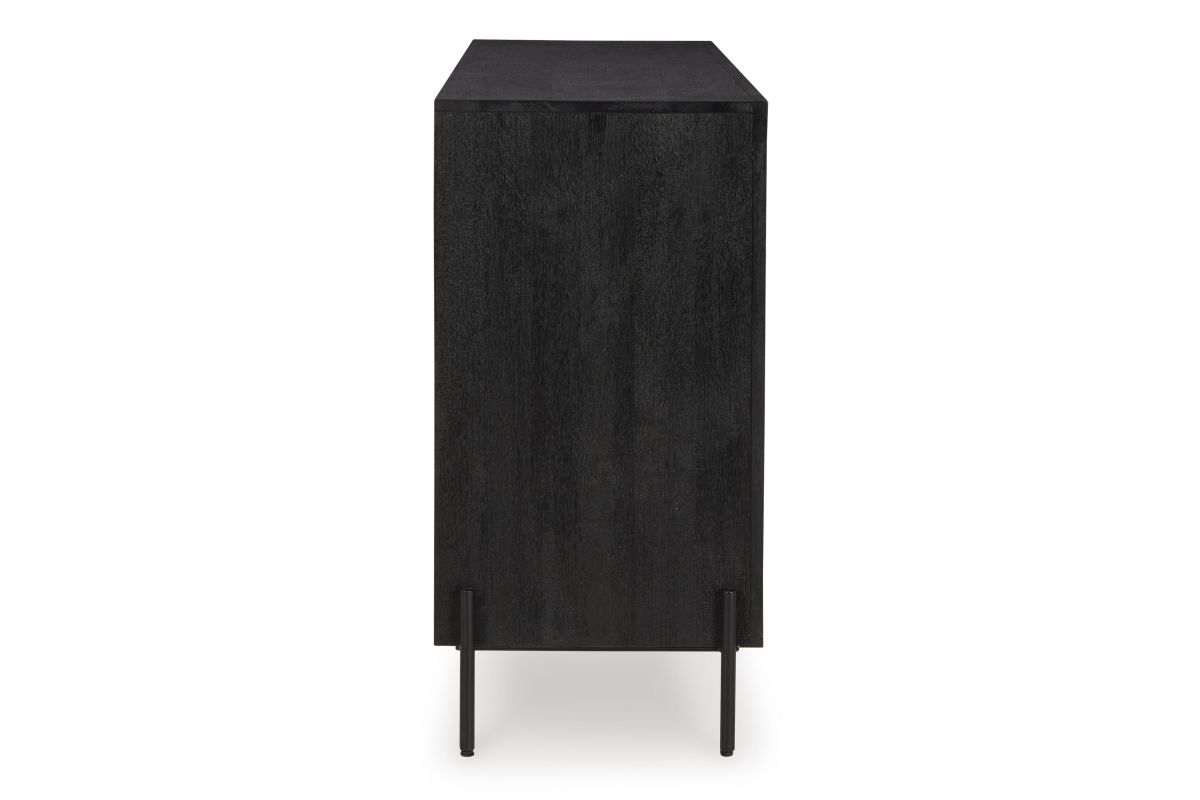 This accent cabinet showcases high-end style with a captivating design. A cleverly placed cutout offers a sneak peek inside, making it a versatile choice for use as a buffet, console or media cabinet. Contemporary and casual, this piece epitomizes laid-back luxury.