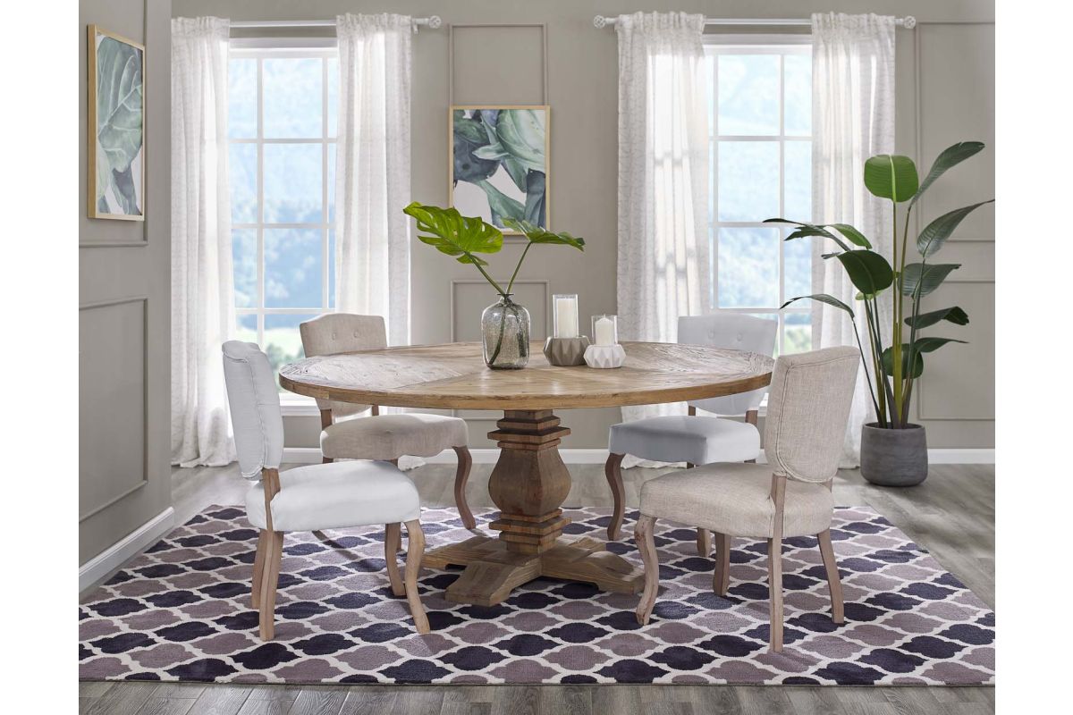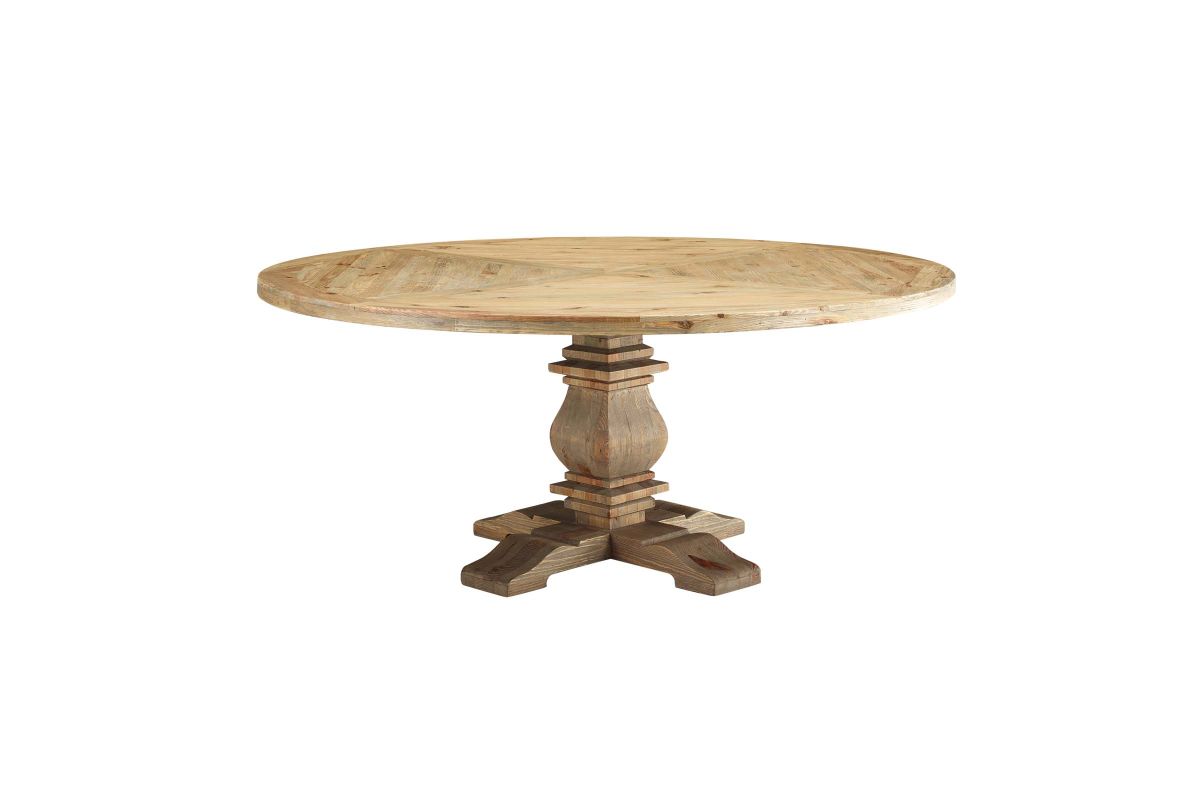 Gather family and friends for good food and good conversation with the Column Dining Table. A charming addition to a modern farmhouse, rustic, industrial, or ranch style home, Column boasts a rich wood grain texture, solid pine wood construction, and rests atop a sculpturally carved pedestal base. Complete with a 71-inch round table top for extra leg room, Column accommodates up to ten guests, making it the perfect choice for everyday dining or occasional entertaining.