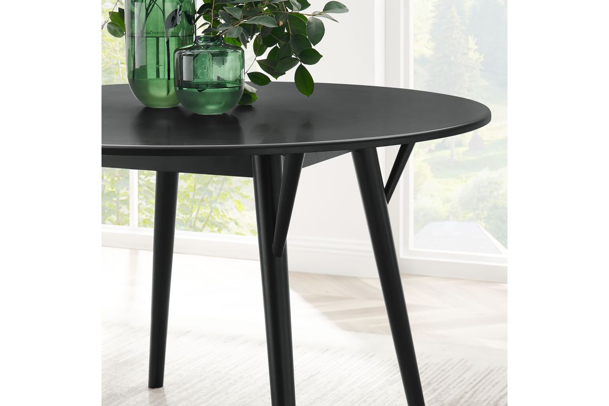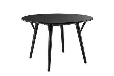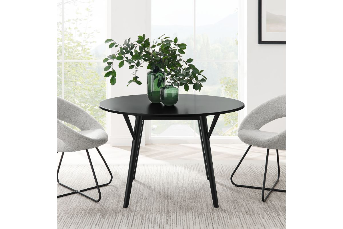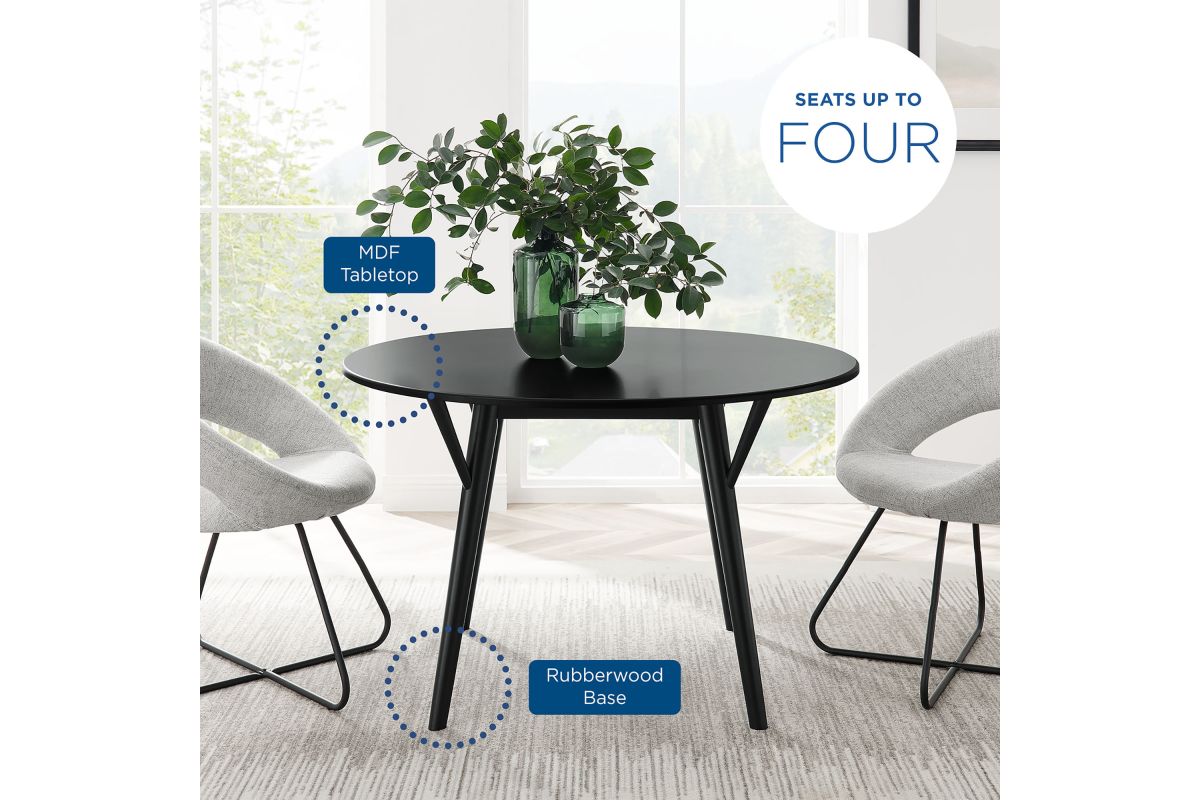 Enjoy dinner with friends or daily mealtimes with the 47" Gallant Dining Table. With a simple round shape, this dining table rests atop splayed and tapered legs crafted from solid rubberwood with angular supports for added interest. This kitchen table is complete with a smooth, durable MDF tabletop and a wood veneer finish that is easy to clean and maintain. A striking addition to the modern home, Gallant emboldens decor in the dining room or kitchen. Assembly required.