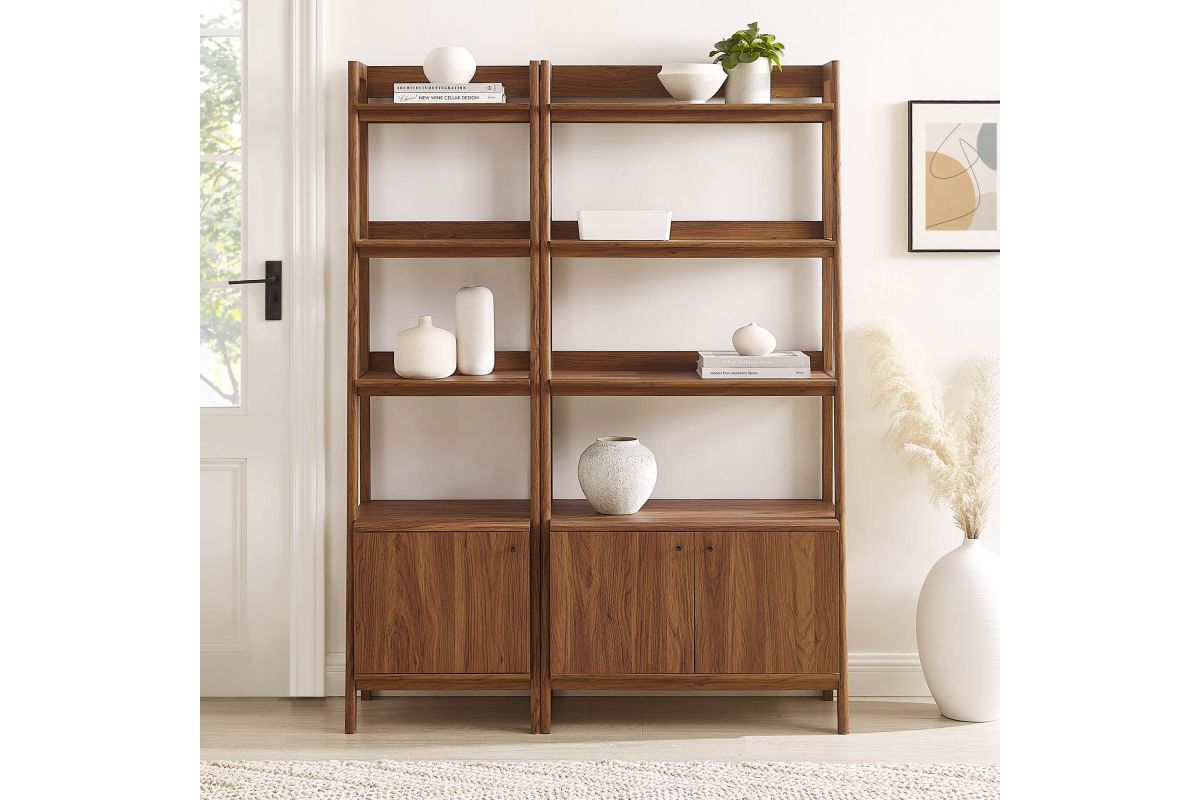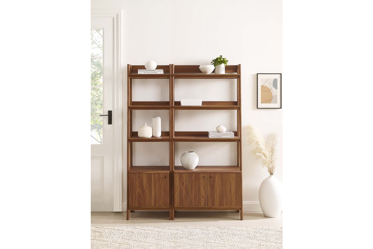 Stack your favorite reads and display home accessories with the Bixby Bookshelves. Featuring slim, tiered silhouettes, these bookcases blend organic wood grain with the sleek lines of the shelves to create beautiful contrast. With plenty of room for storage and display, this bookshelf set is complete with spacious shelves and concealed storage areas on the bottom to keep living room or home office essentials out of sight. These display stands are crafted with particleboard and MDF for a sturdy construction that's built to last. Set Includes: 21" and 33" Bookshelves