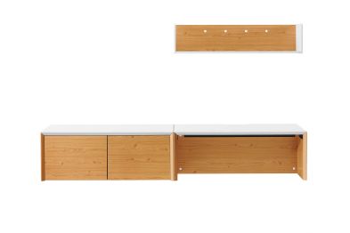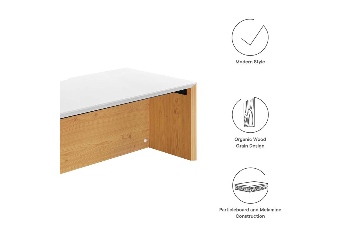 A perfect workspace for the home office, college dorm, bedroom, living room, or any other work area, the 3-Piece Kinetic Wall-Mount Office Furniture Set introduces style and function to the modern home or apartment. Crafted from durable, lightweight particleboard with a complementing melamine top, this office desk features a spacious work area and flip-up cable management compartment to keep things neat and organized while the wall-mount storage cabinet is complete with magnetic-close doors to conceal its shelved storage area. With an organic wood grain design, this wall-mount office desk, storage cabinet, and accent shelf brings natural elegance to any space and mounts directly to the wall to save valuable floor space. Assembly required.