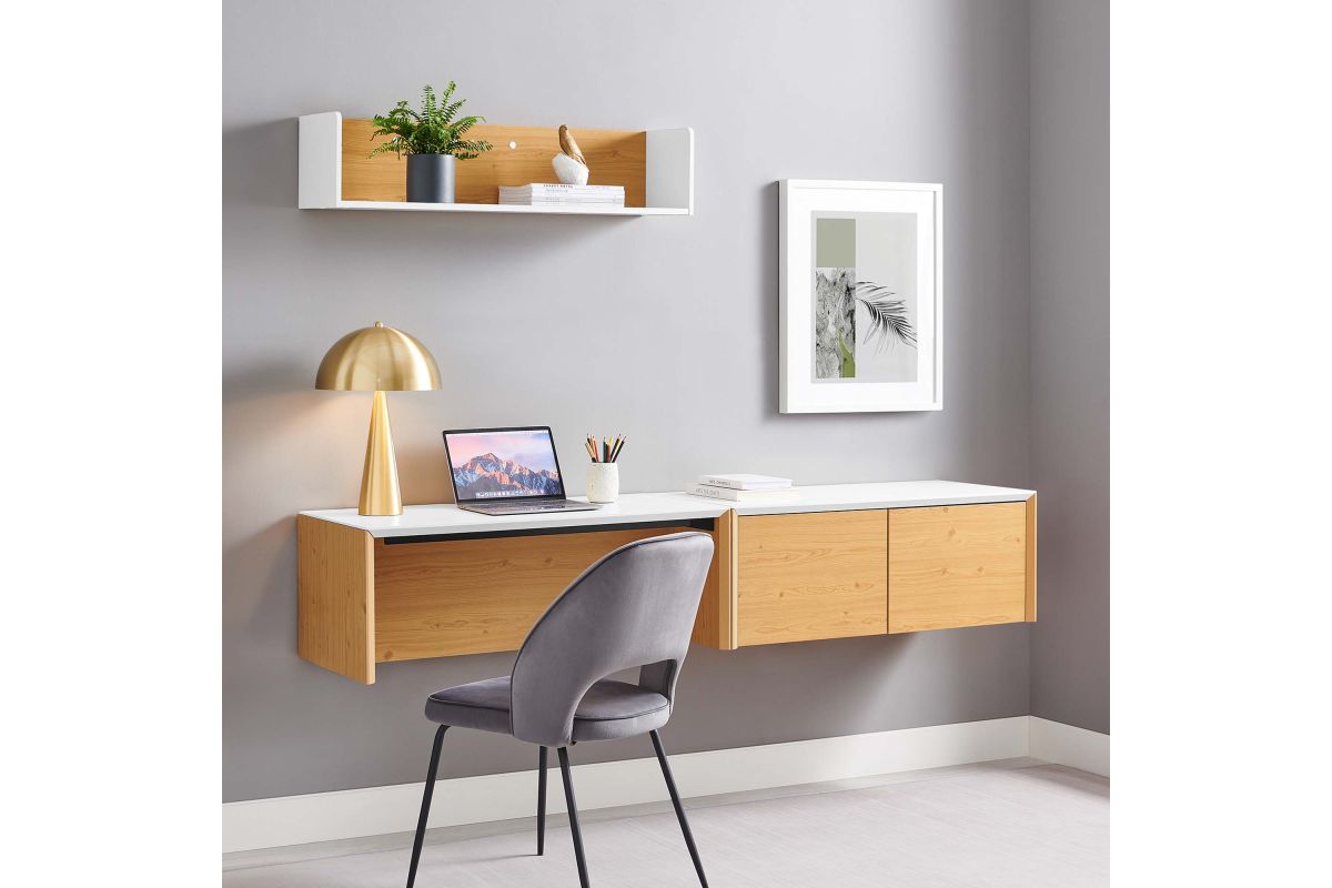 - Wall-Mount Office Desk, Cabinet, and Shelf