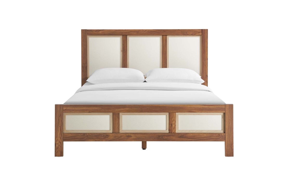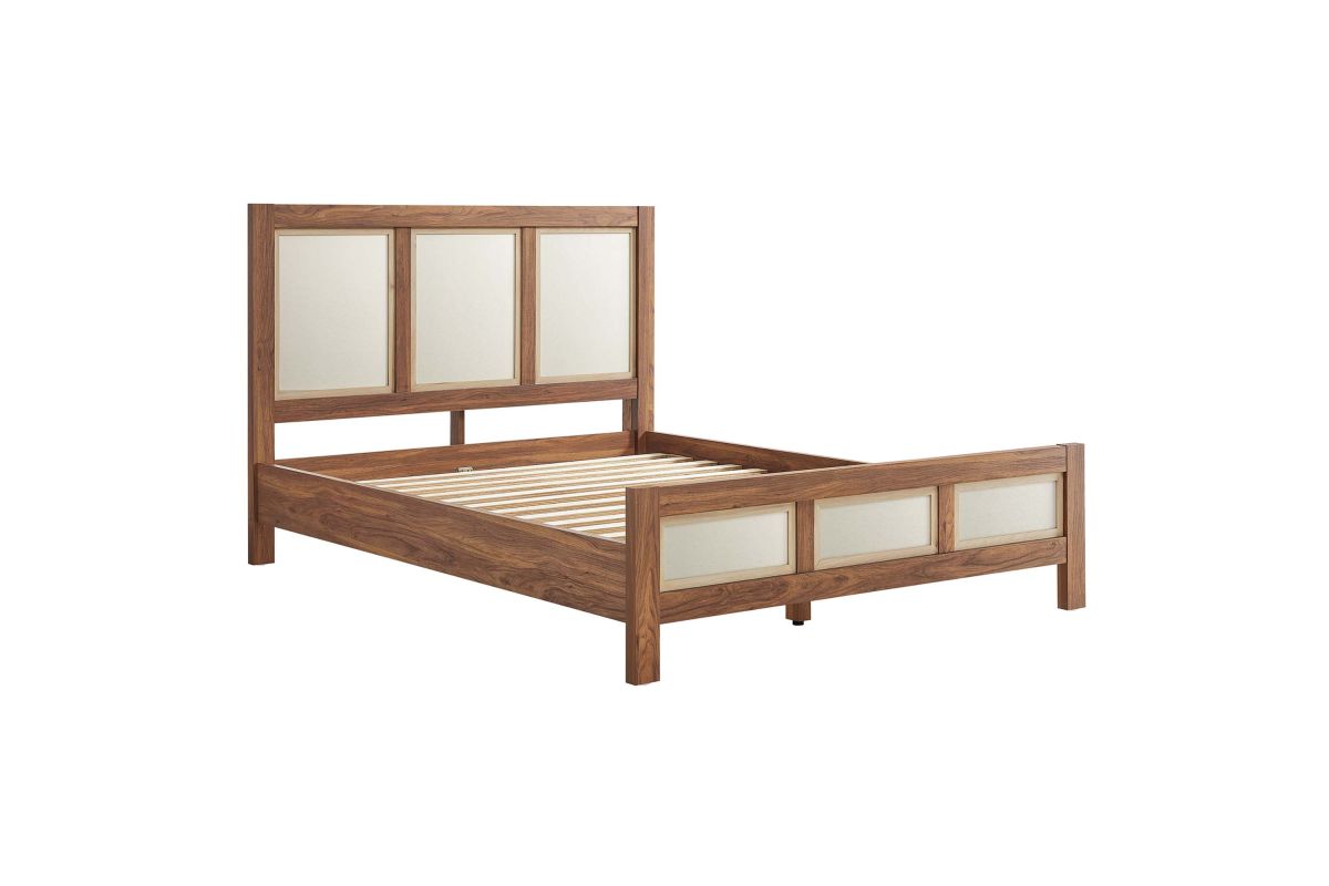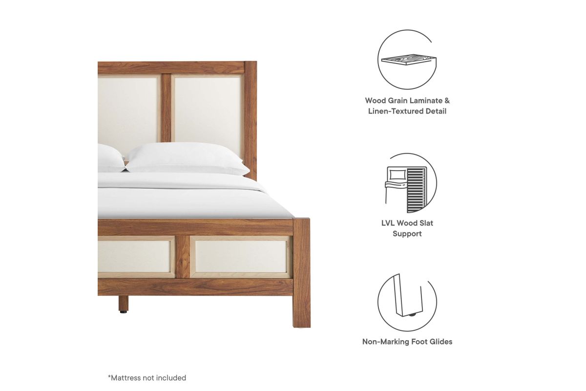 Elevate your space with the mid-century modern Capri Queen Bed, a centerpiece that brings functionality and style to your bedroom. Crafted with durable materials, this queen size bed frame boasts a wood grain laminate finish, imparting a contemporary touch to your decor. The queen headboard showcases a three-panel detail with framed linen-like texture, complemented by a footboard that echoes the headboard's design. The platform bed frame queen size supports all types of mattresses - memory foam, innerspring, latex, hybrid - without the need for a box spring, ensuring both air circulation and support. LVL wood slat supports enhance the sturdy build, with a weight capacity of 800 lbs. This bed frame with headboard, as a modern queen bed, is not just a statement of style but also a testament to practicality, offering a refined look with no box spring needed. Does not include mattress. Assembly required. Weight Capacity: 800 lbs.