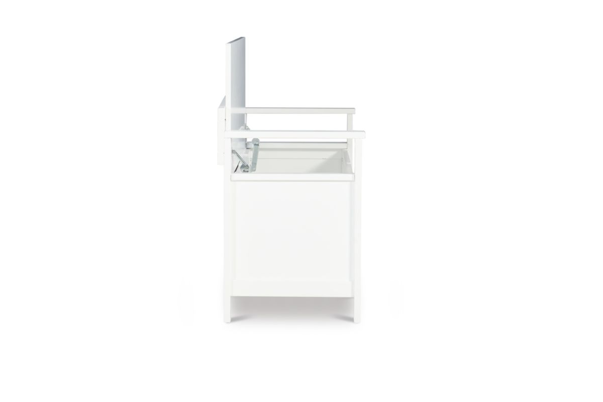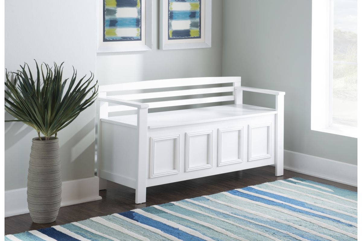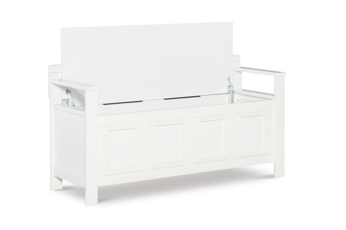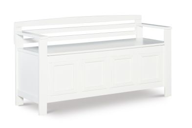 Create added seating and storage to your foyer or mudroom with this attractive and functional laredo storage bench. The bench features a flip top lid, allowing the user to easily retrieve articles from the storage compartment. The ladder designed back and decorative front are enhanced by the white finish. A stylish and functional addition to any home.