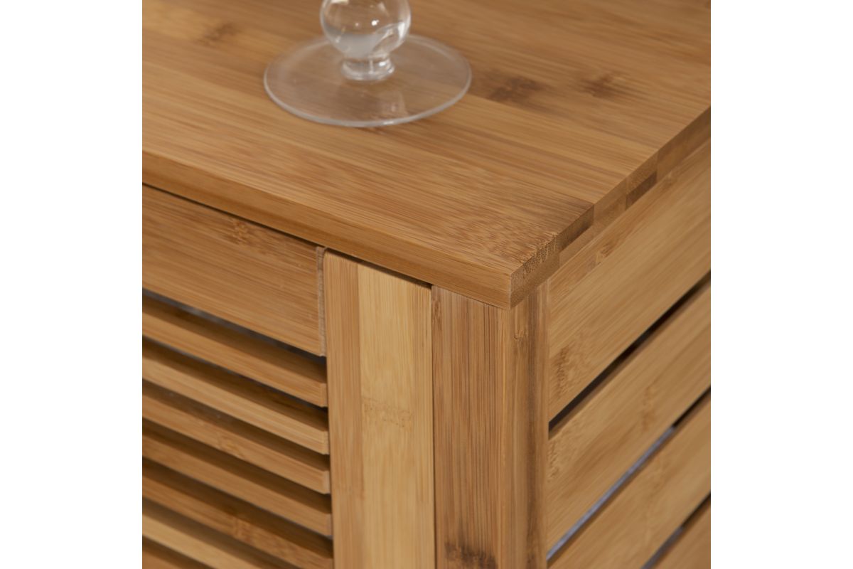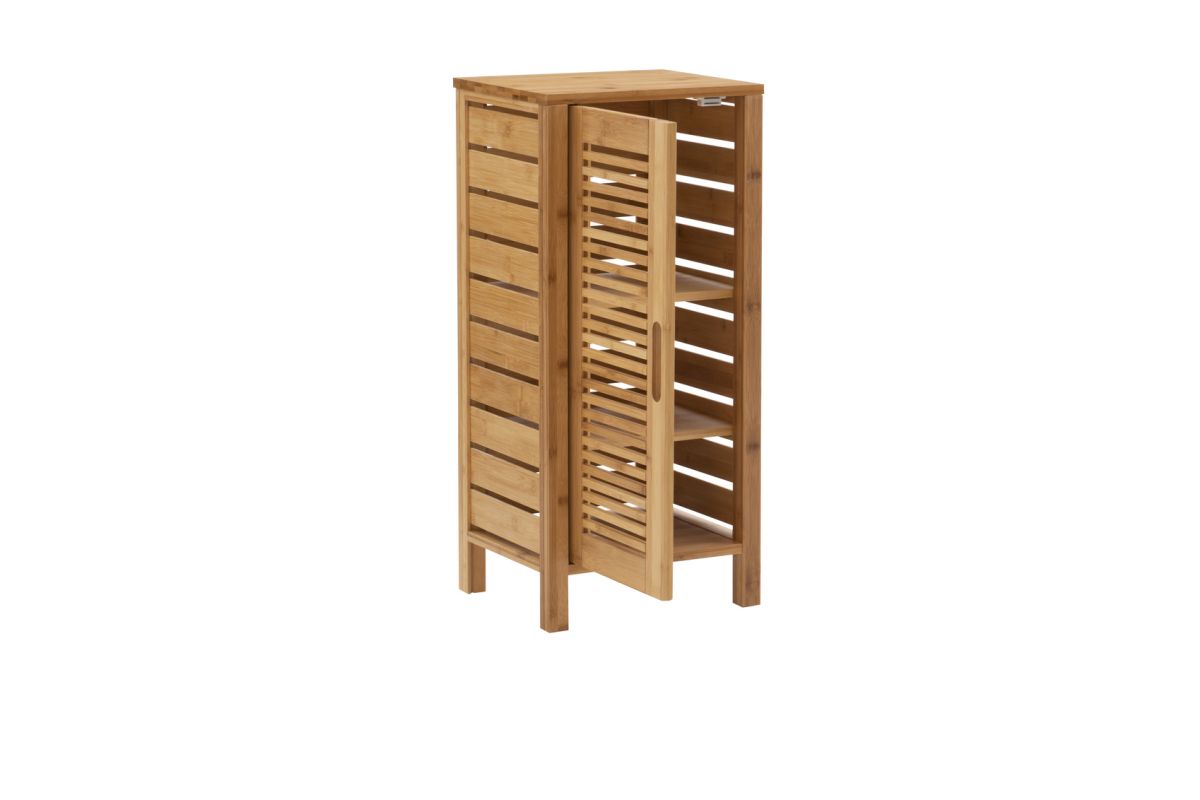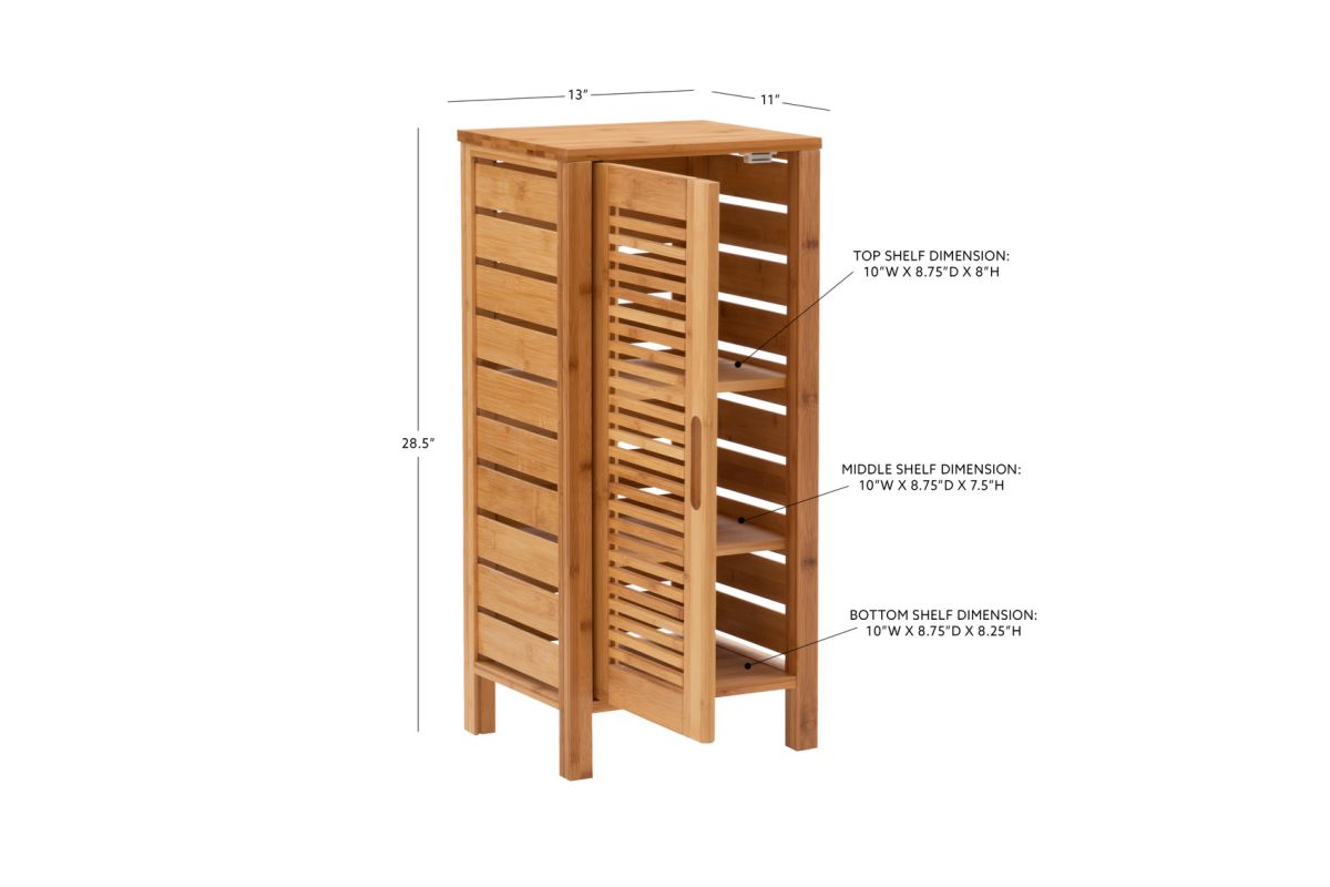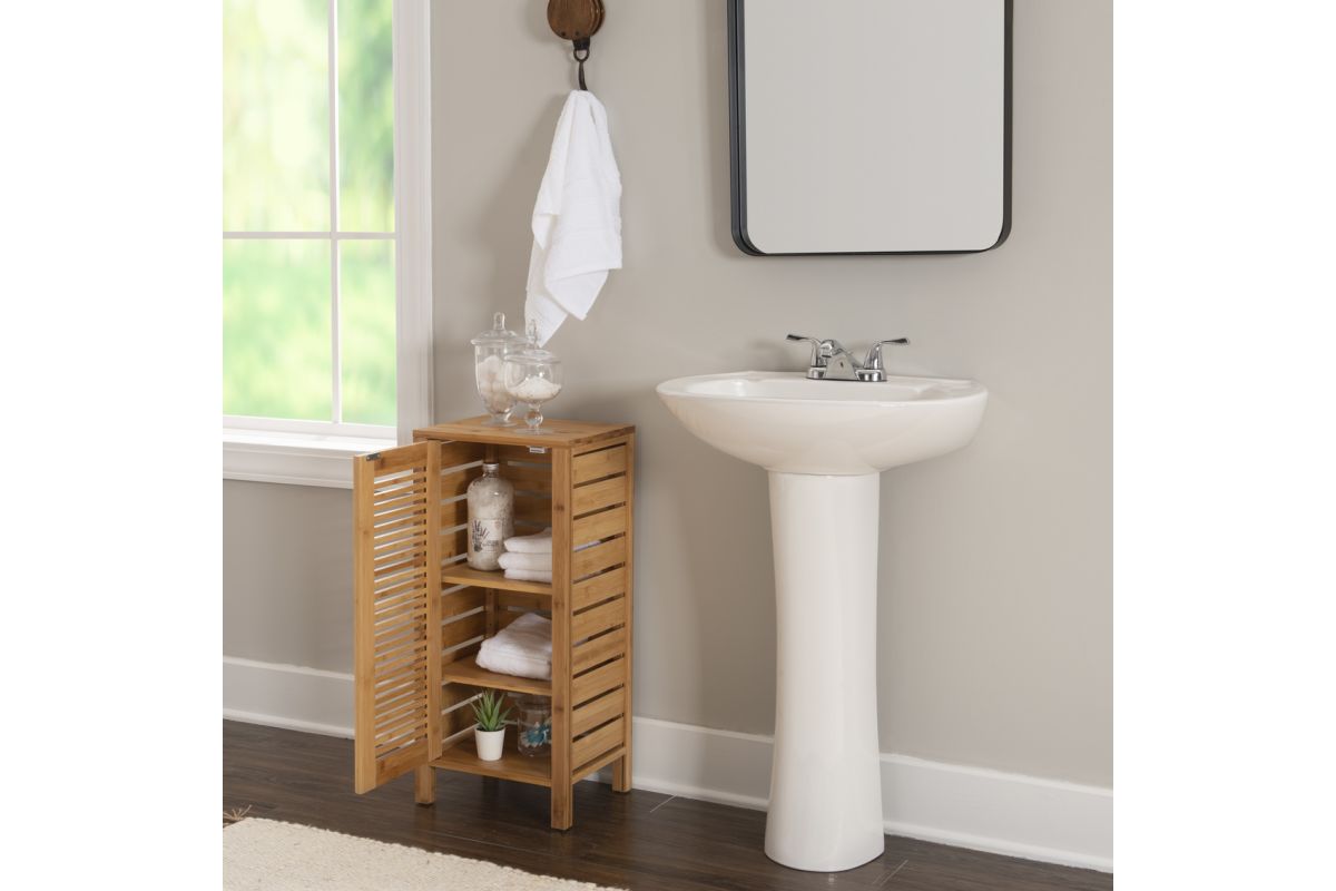 This floor cabinet is perfect for adding style and storage to your space. One door keeps the interior hidden, while three small shelves provide ample storage for all of your bathroom essentials. Crafted from solid bamboo, the piece is both sturdy and durable.