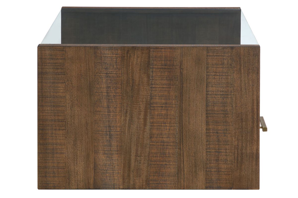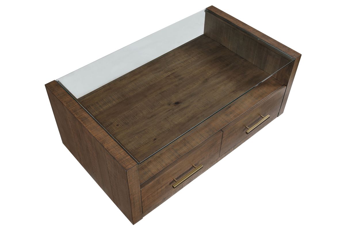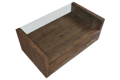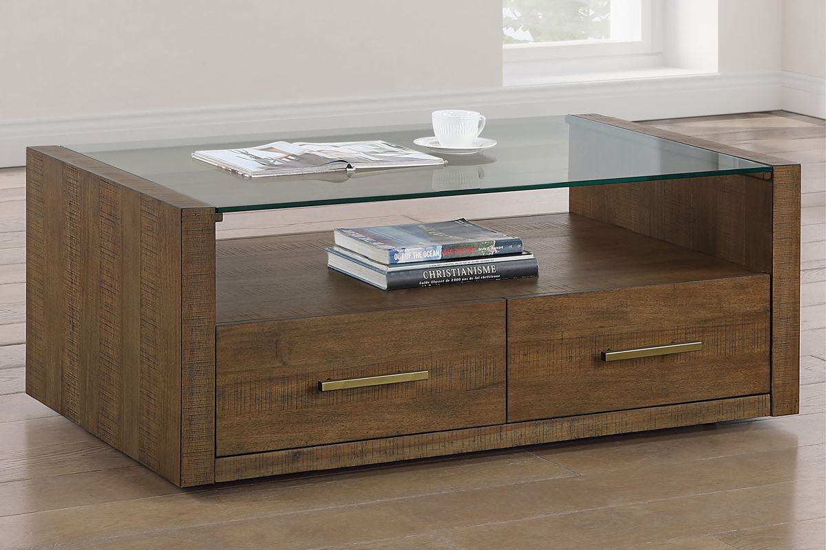 Bring casual elegance to your living room with the Garland Castered Coffee Table, a stylish blend of modern design and rustic charm. Its clean lines and saw rasp distressing in a warm toffee finish create a beautiful focal point. The clear glass top offers a lovely display area, while two drawers provide convenient storage for essentials. With hidden casters, it’s easy to move the table for cleaning or when you need extra space to relax. This coffee table is both functional and chic, perfect for any home.