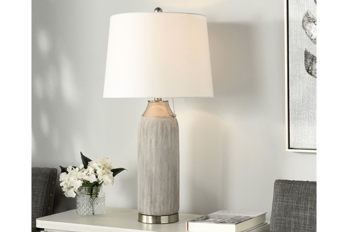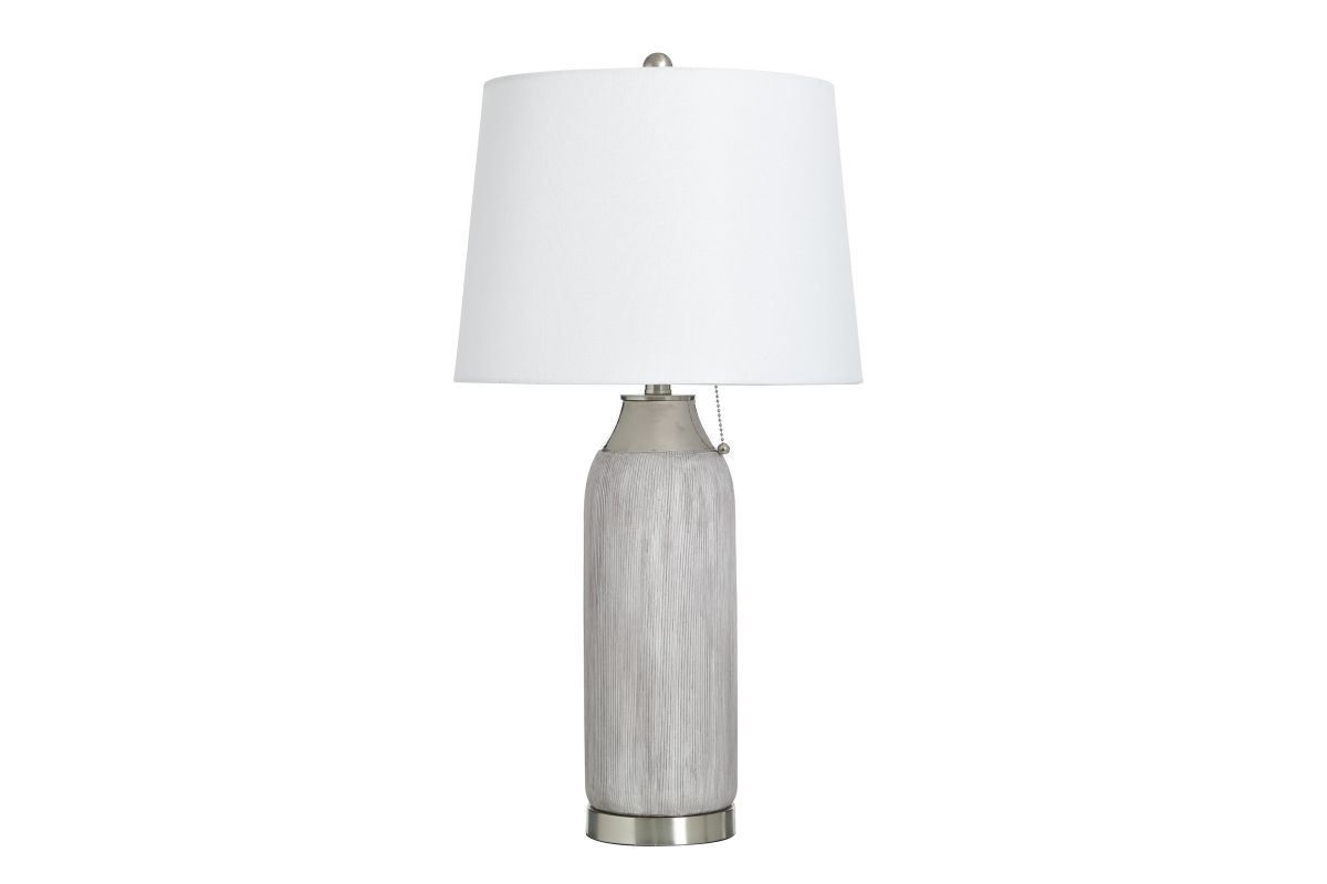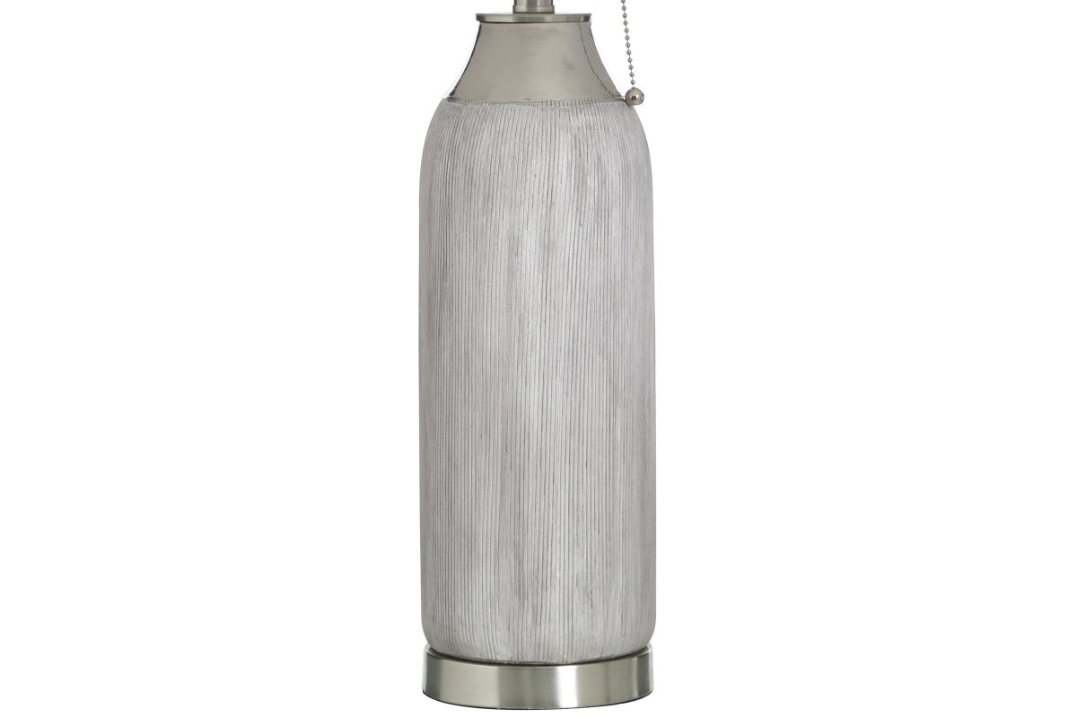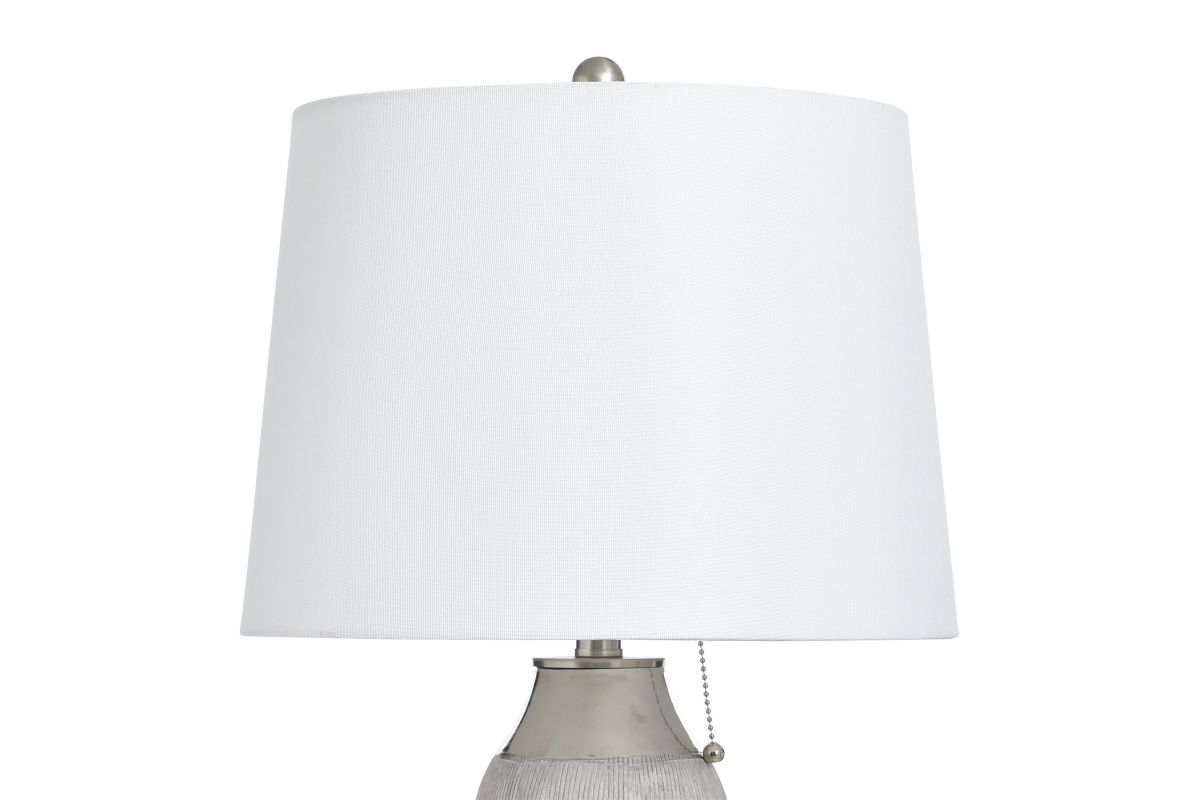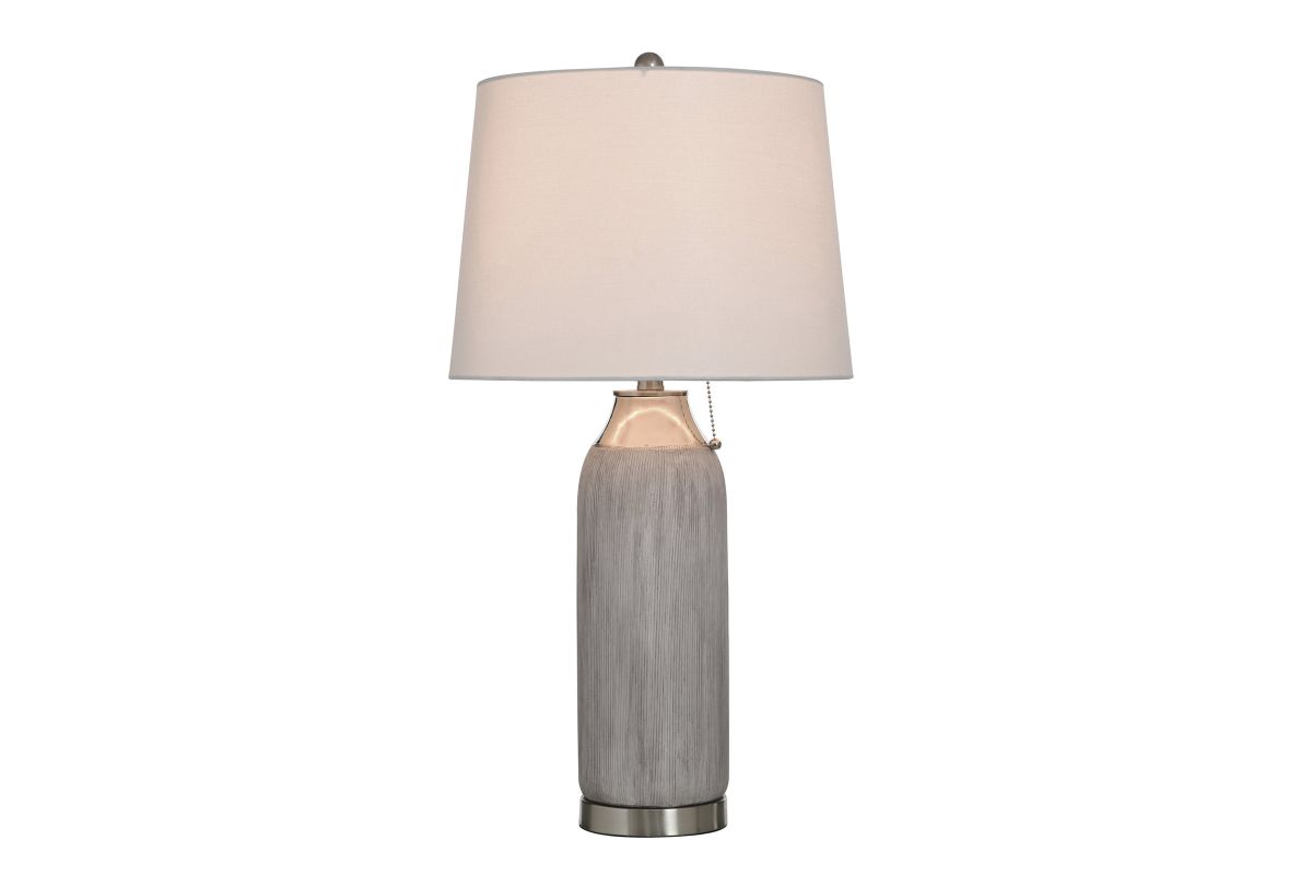 The Plated Silver Ceramic Lamp offers a ceramic base that would compliment any style in any space.