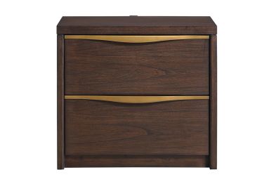 Beautifully crafted Zafa 2-drawer nightstand, featuring a striking two-tone wood finish that blends rich natural tones with contemporary design. The warm, textured wood grain adds depth and character, while the lighter wood handles offer a subtle contrast that brings out the piece’s unique charm.