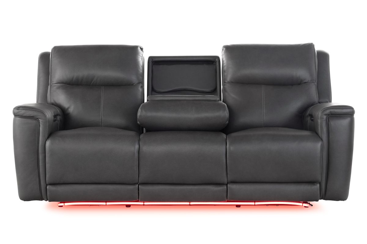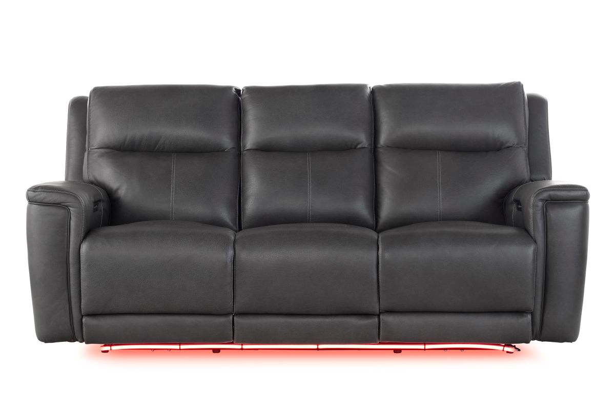 The sleek grey leather finish adds a sophisticated edge that complements any living space, blending contemporary design with everyday functionality. More than just furniture, the Sonic Grey Dual Power Reclining Sofa transforms your living room into a personal retreat where comfort, technology, and style come together effortlessly.