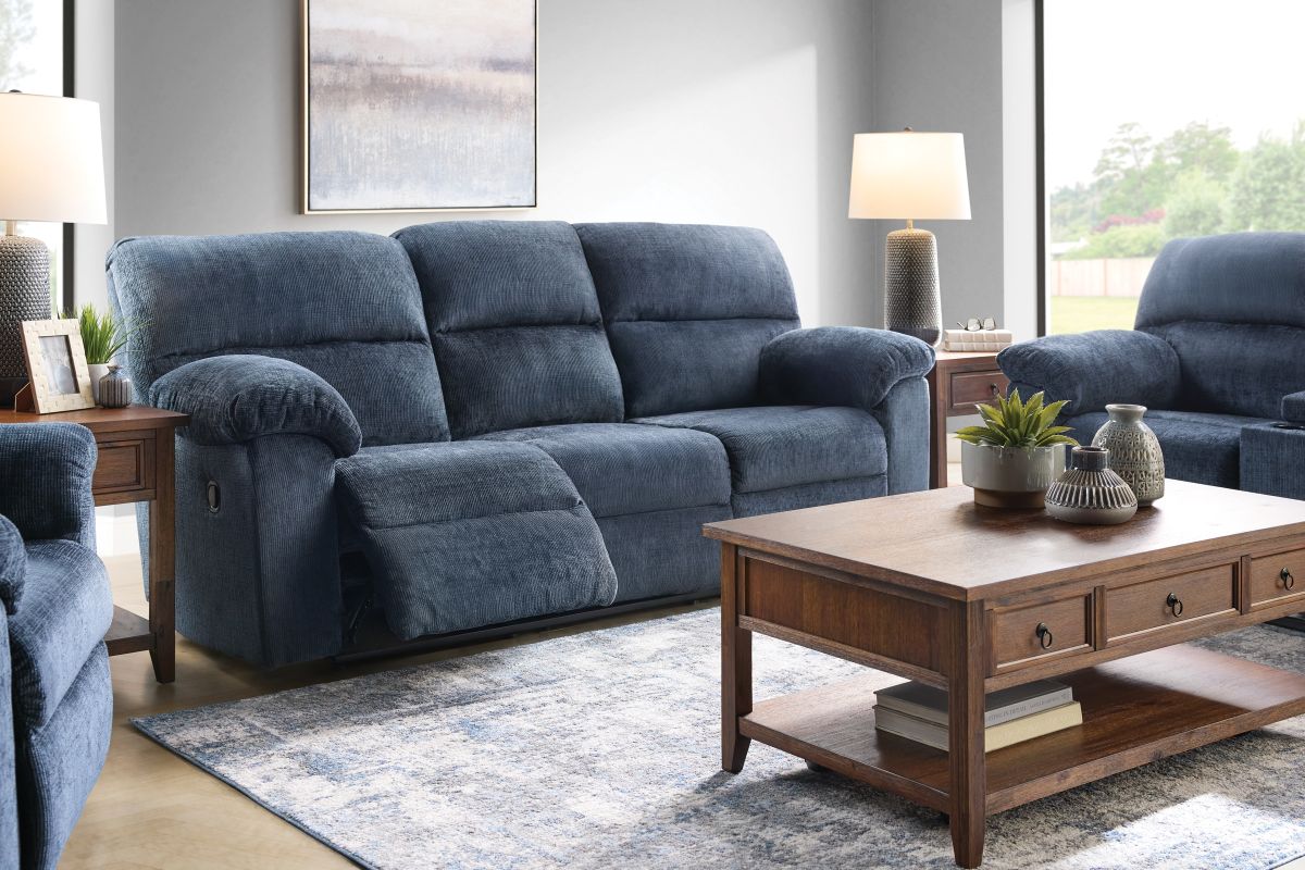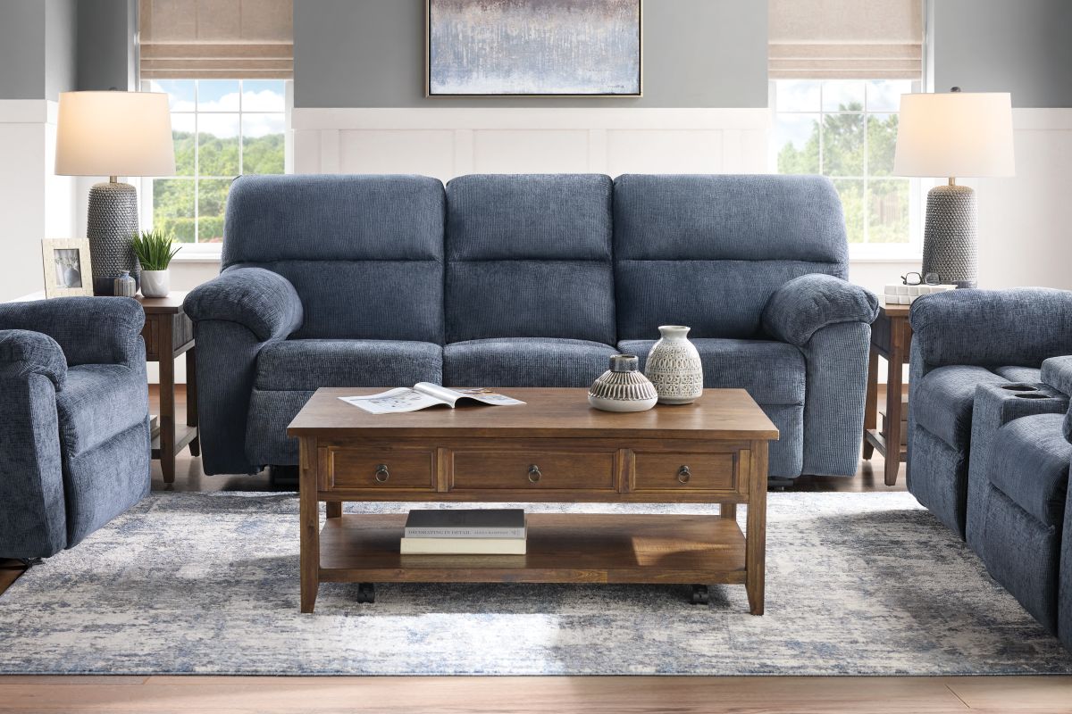 Elevate your living space with the sophistication and unbeatable comfort of the Martin Motion Collection. Upholstered in a contemporary blue fabric, this collection blends modern style with the ultimate in relaxation. Each piece is thoughtfully designed with plush, supportive cushioning and smooth reclining mechanisms that allow you to kick back with ease. Whether you're outfitting a cozy living room or a spacious entertainment area, the Martin collection adapts to your needs.