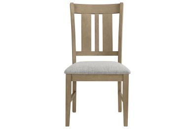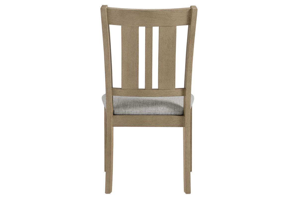 The Natural Hadley slat-back Dining chair are equipped with comfortable 100% polyester upholstered seats and a stretcher system for added strength and durability. This collection seamlessly combines aesthetic appeal with practical functionality, making it a versatile addition to any dining space.