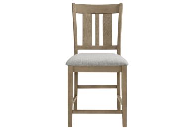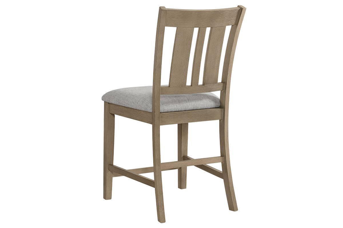 The Natural Hadley slat-back Counter chair are equipped with comfortable 100% polyester upholstered seats and a stretcher system for added strength and durability. This collection seamlessly combines aesthetic appeal with practical functionality, making it a versatile addition to any dining space.