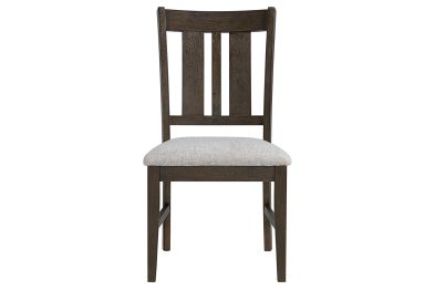 The Brown Hadley slat-back Dining chair are equipped with comfortable 100% polyester upholstered seats and a stretcher system for added strength and durability. This collection seamlessly combines aesthetic appeal with practical functionality, making it a versatile addition to any dining space.