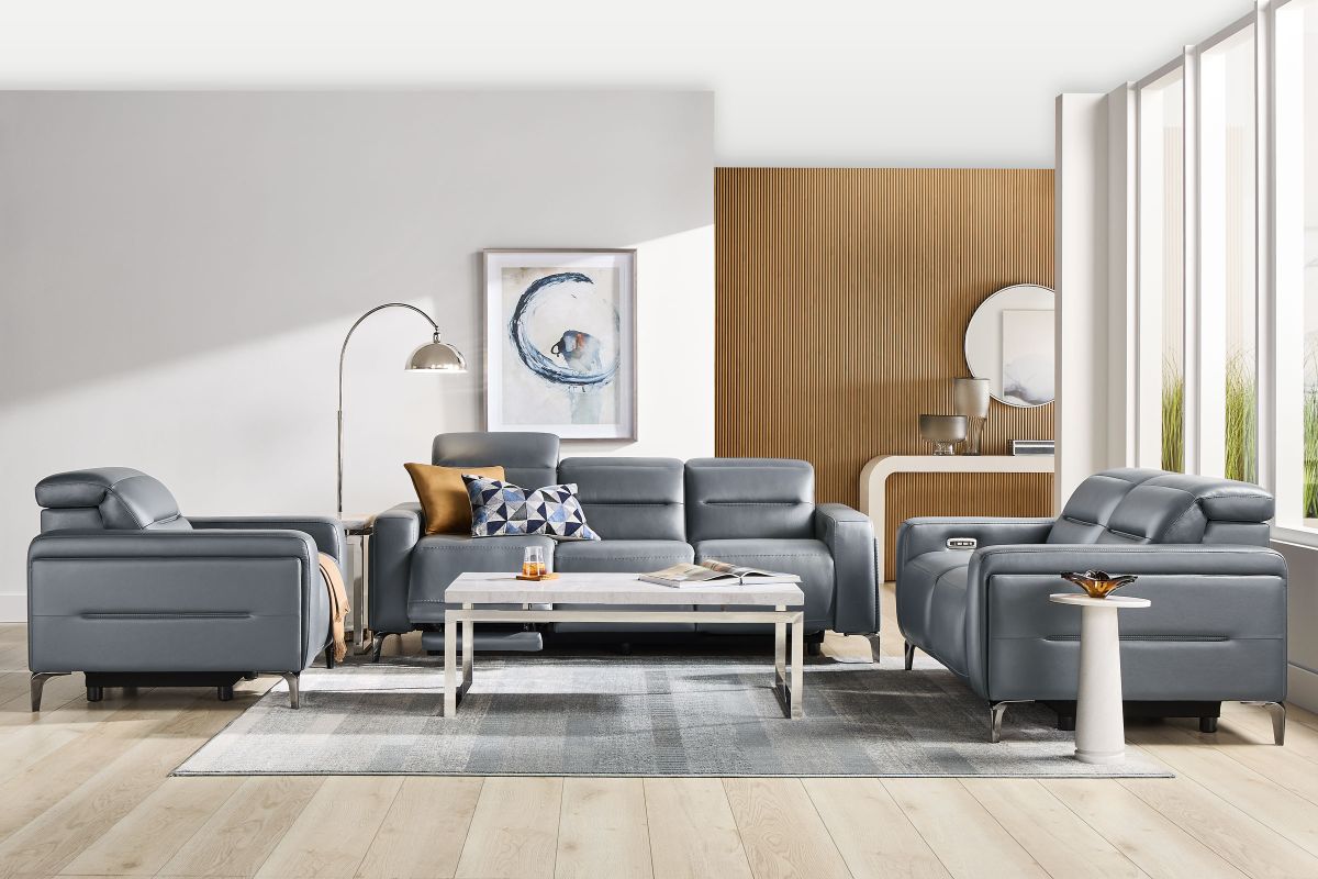 Where comfort meets contemporary design. The Amalfi Dual Power Reclining Collection features smooth lines, plush cushions, and premium upholstery available in Grey or Blue. With dual power reclining, you can independently adjust the headrest and footrest to find your ideal lounging position—perfect for movie nights, afternoon naps, or quiet evenings in.