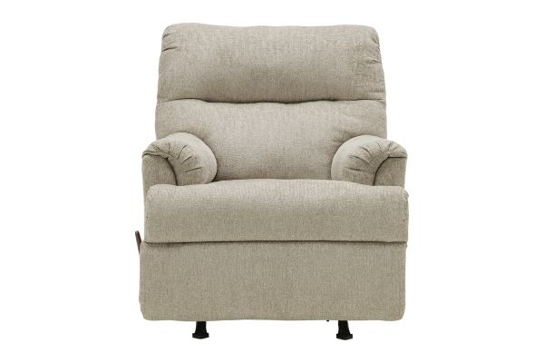 Discover the perfect blend of comfort, function, and timeless style with this Benny rocker recliner. Upholstered in a soft, neutral fabric that complements any décor, this recliner offers a welcoming seat at the end of a long day. The gentle rocking motion soothes and calms, while the smooth manual reclining mechanism lets you kick back effortlessly. With its plush cushioning, padded armrests, and supportive backrest, this recliner is ideal for everything from movie nights to midday naps.