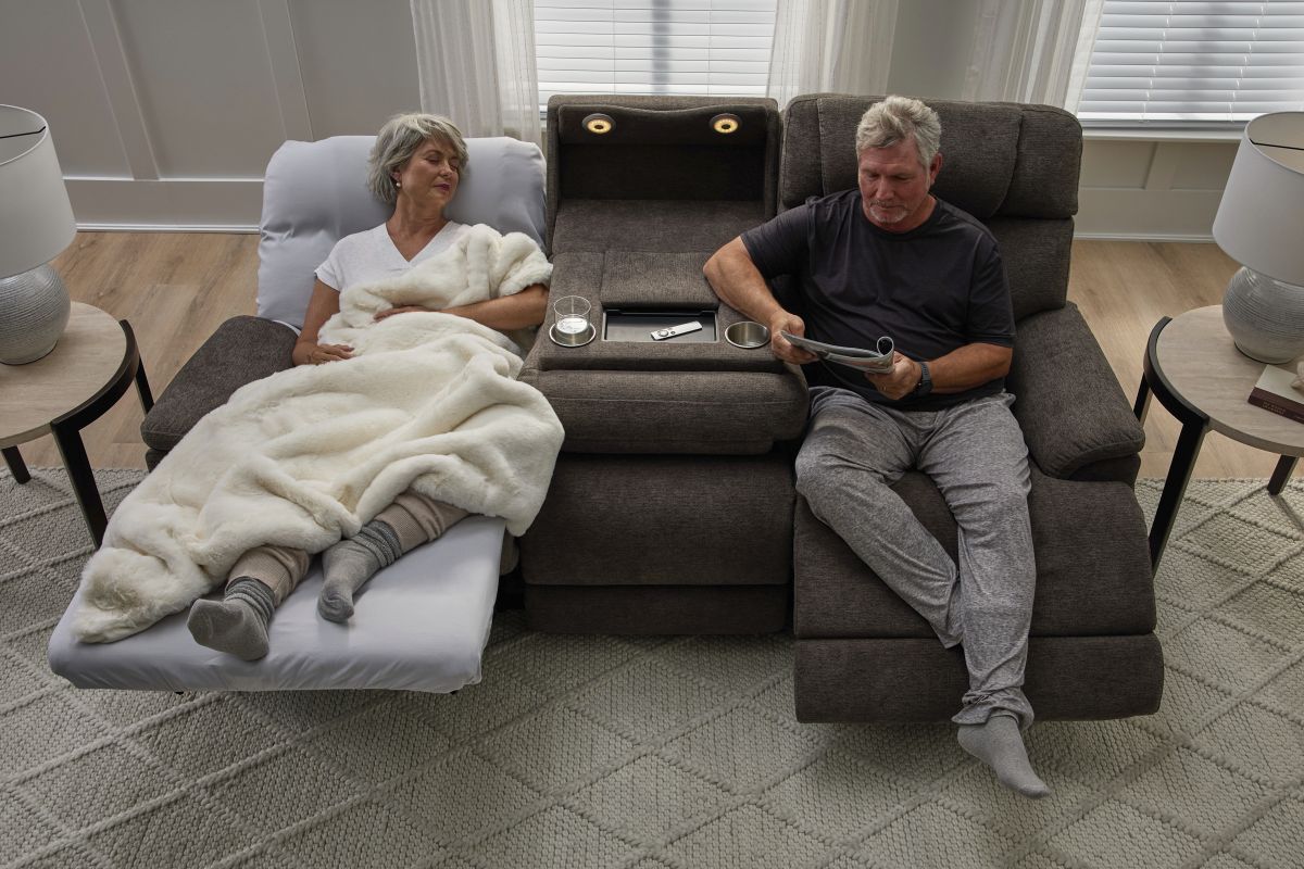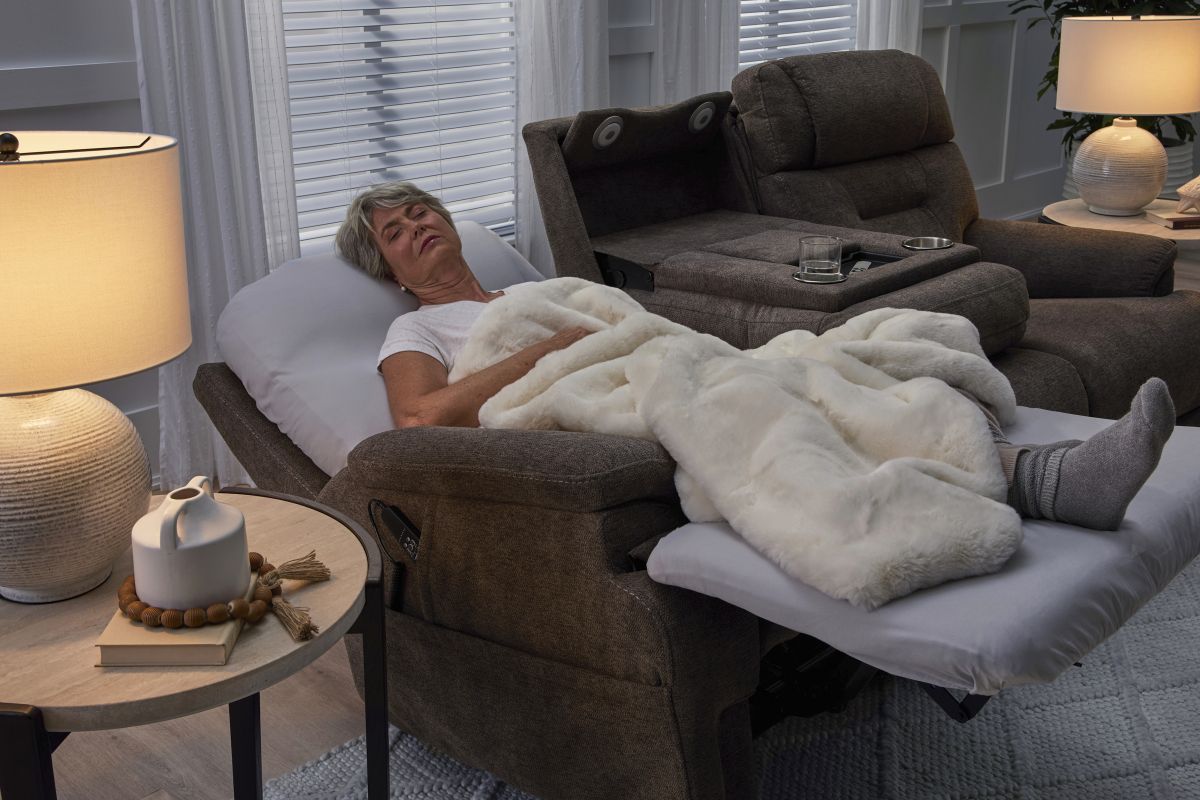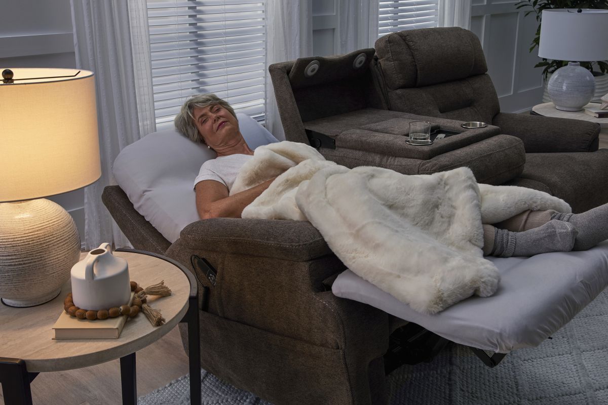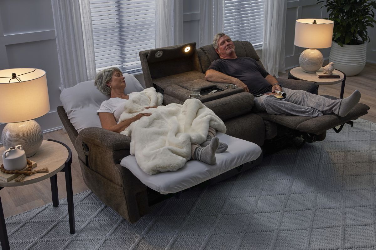 Blissful relaxation, rejuvenating sleep, all with Zofa. Designed as two Zecliners in one, this power sleep sofa brings cutting-edge technology to create the ultimate in luxury. With Zero Gravity recline, CloudLux™ seat cushions, and heat and air massage features, the Zofa brings wellness to relaxation. Upholstered in moisture-resistant and easy to clean performance fabric choices, including a scientifically backed Nanobionic fabric that contains infrared-emitting minerals that recycle the body's energy. The future of modern reclining furniture, Zofa includes motion-sensitive LED base lighting, with USB ports, bluetooth speaker, and a wireless charging pad to keep all your devices powered up and within reach.