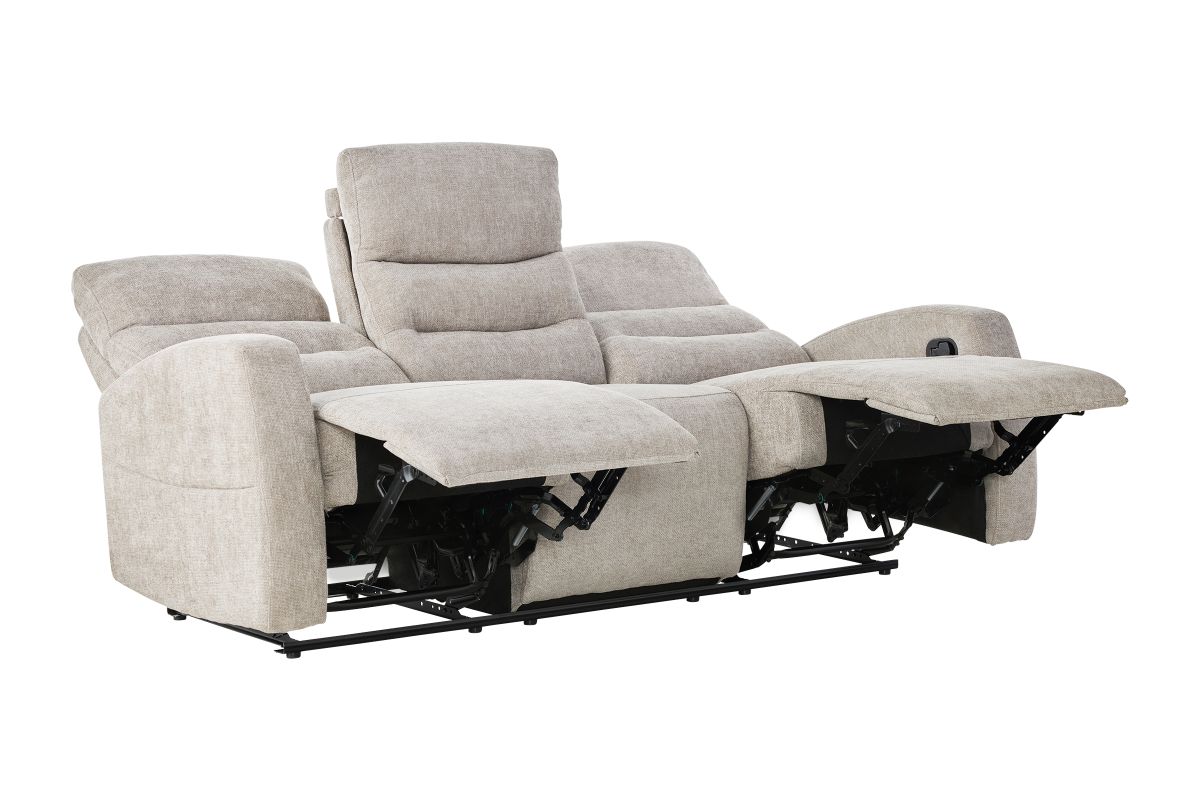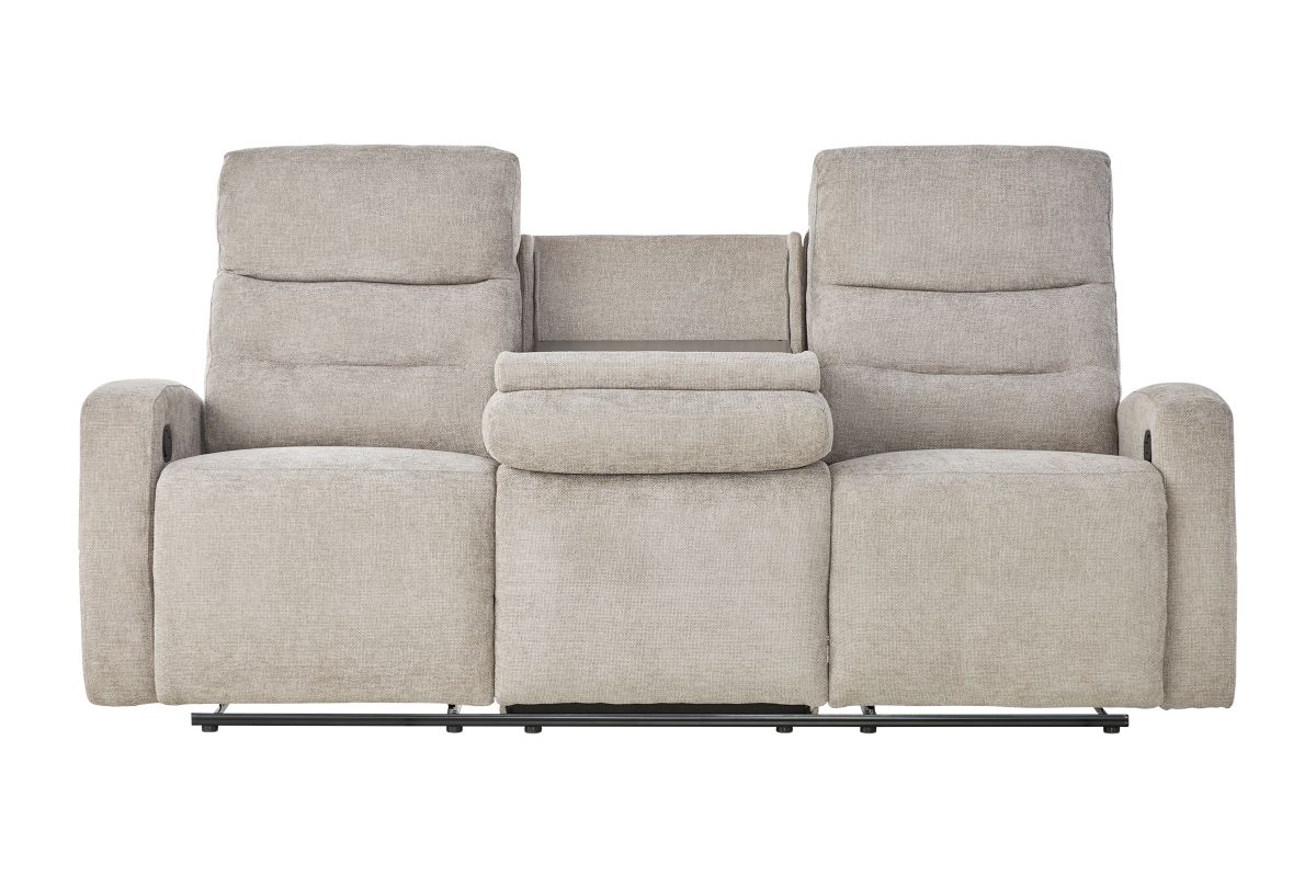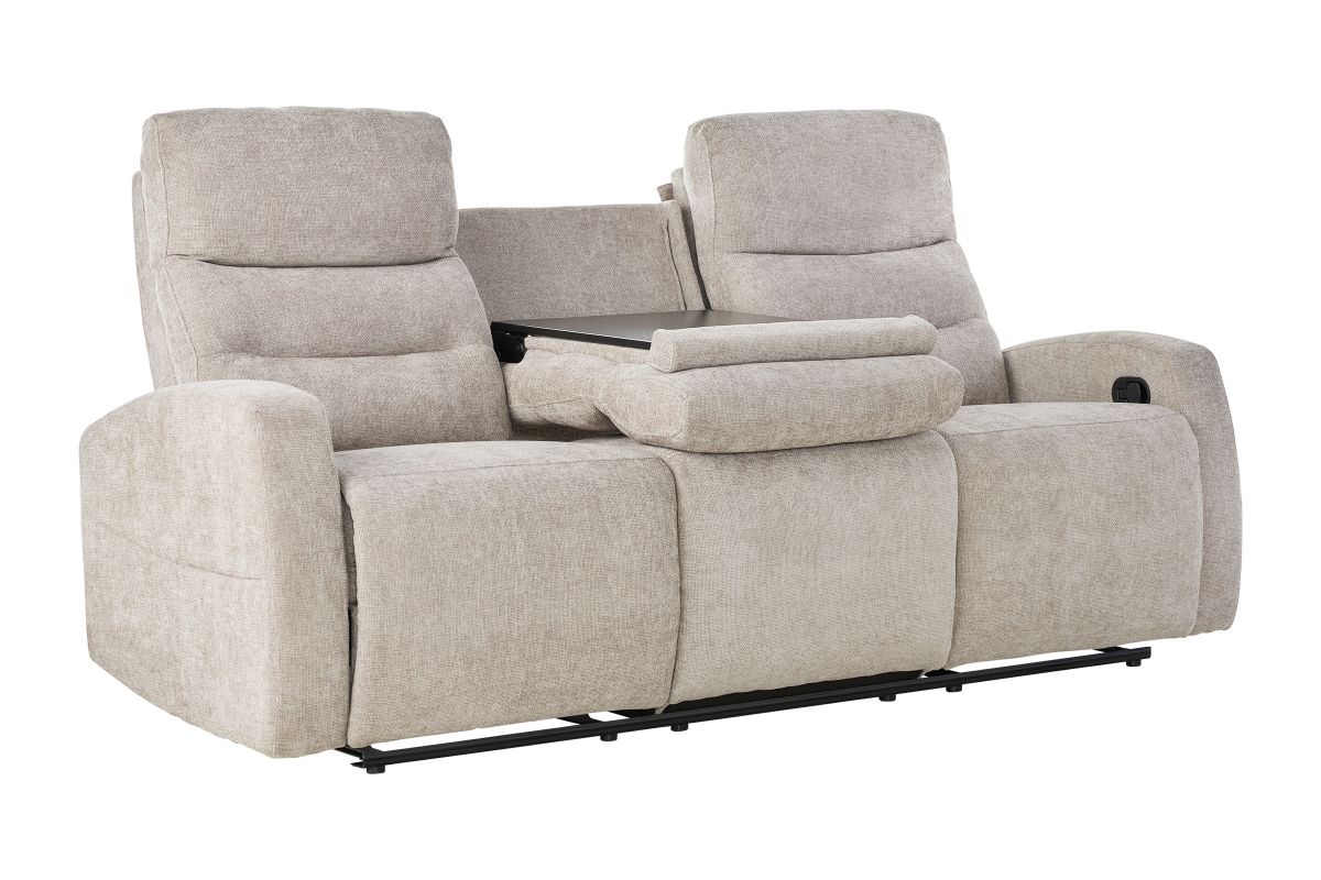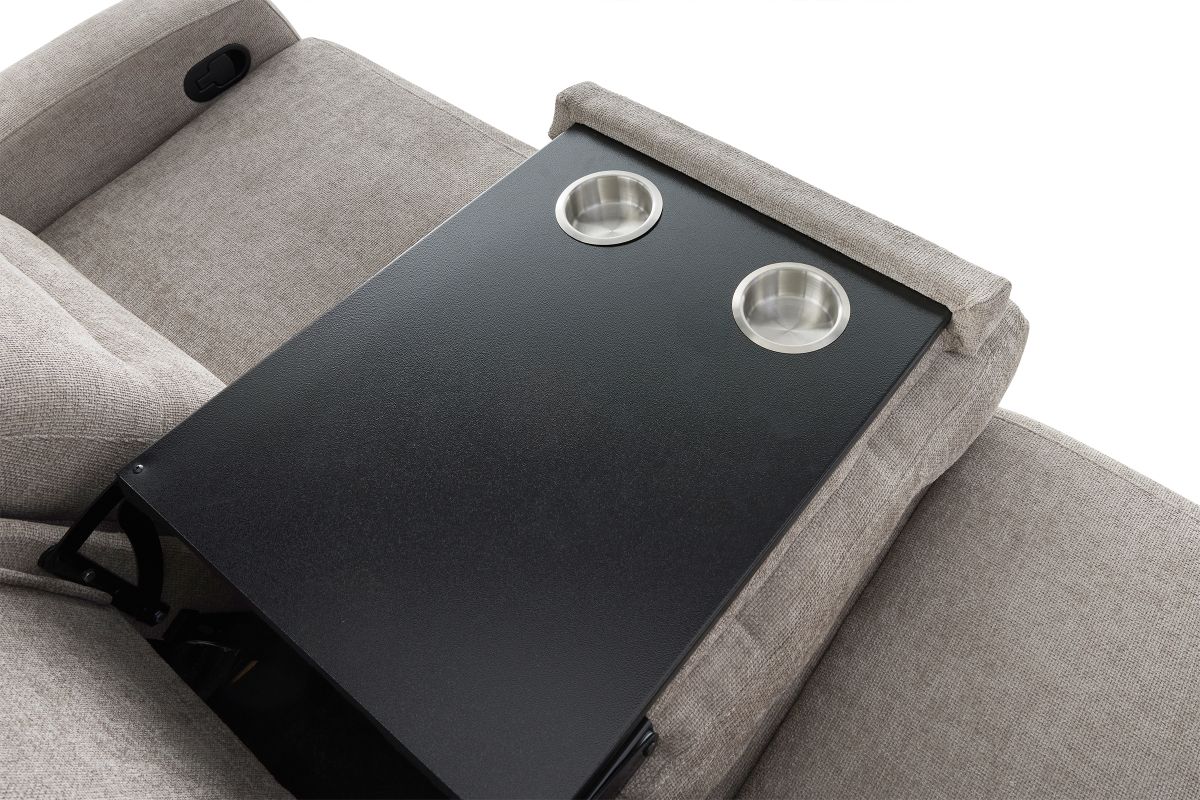 The drop-down center table adds everyday convenience, complete with cupholders and space for snacks or remotes, making it perfect for movie nights or relaxed evenings at home. The sofa’s soft cushions and supportive radial track arms cradle you in comfort, while the smooth reclining mechanism lets you lean back and unwind with ease.