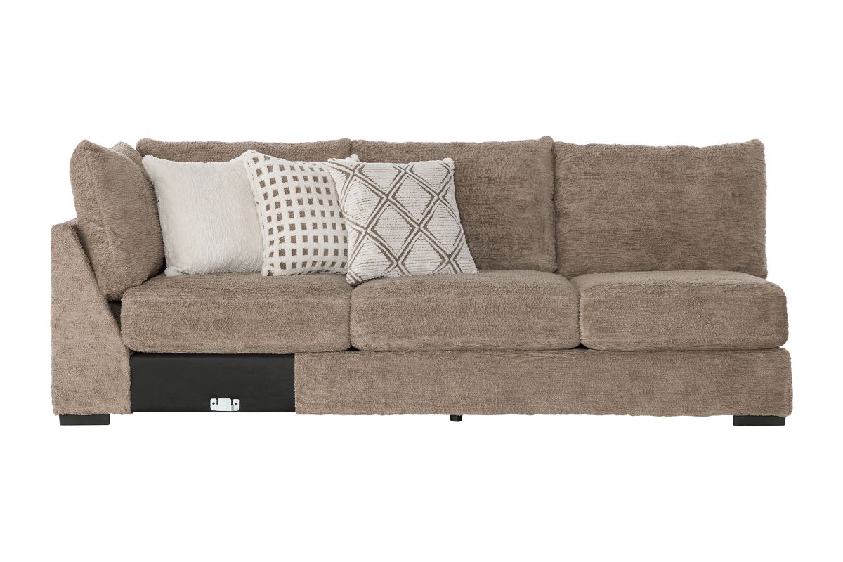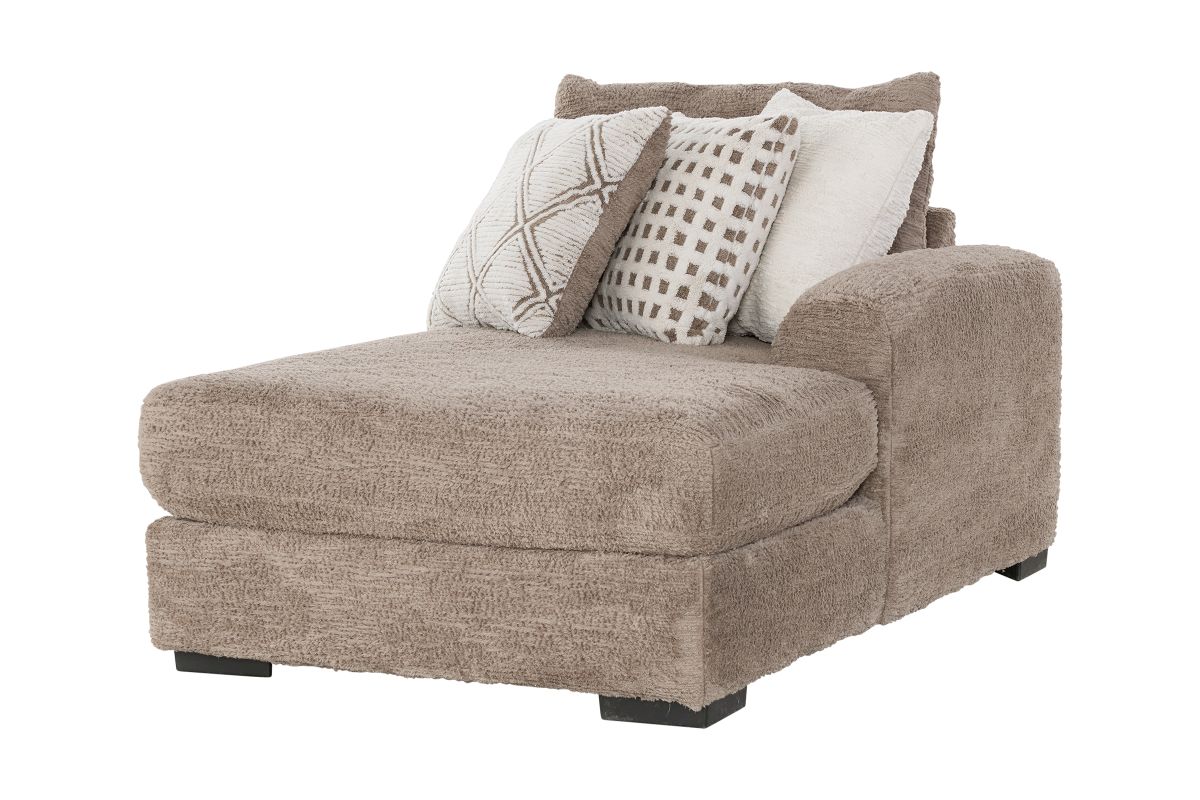 Stretch out in style with the Haven Cocoa 4-Piece Sectional with Right-Arm Facing Chaise. Upholstered in ultra-soft chenille fabric, this piece delivers the perfect mix of cozy comfort and contemporary design. The warm cocoa hue creates an inviting atmosphere, while deep seating and plush cushions provide plenty of room to lounge, relax, and unwind.