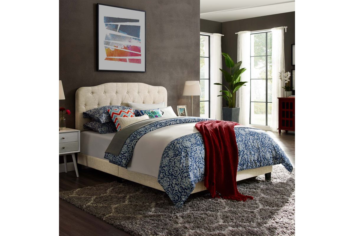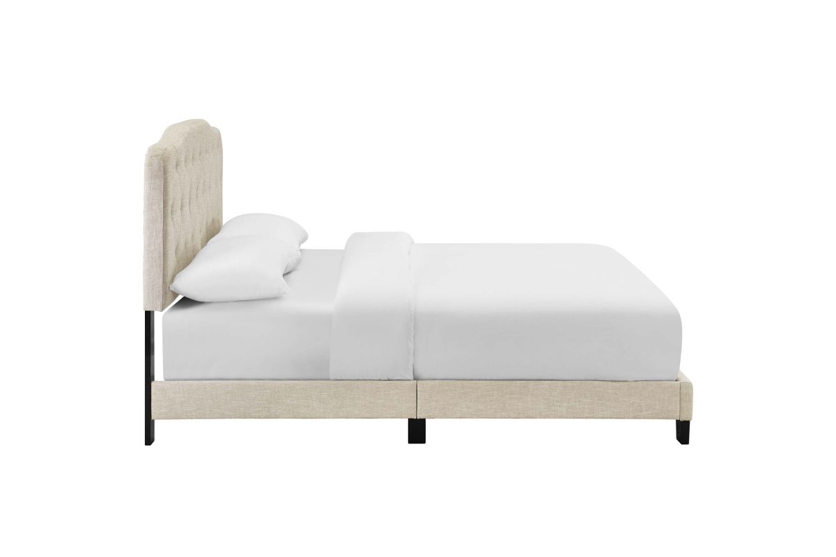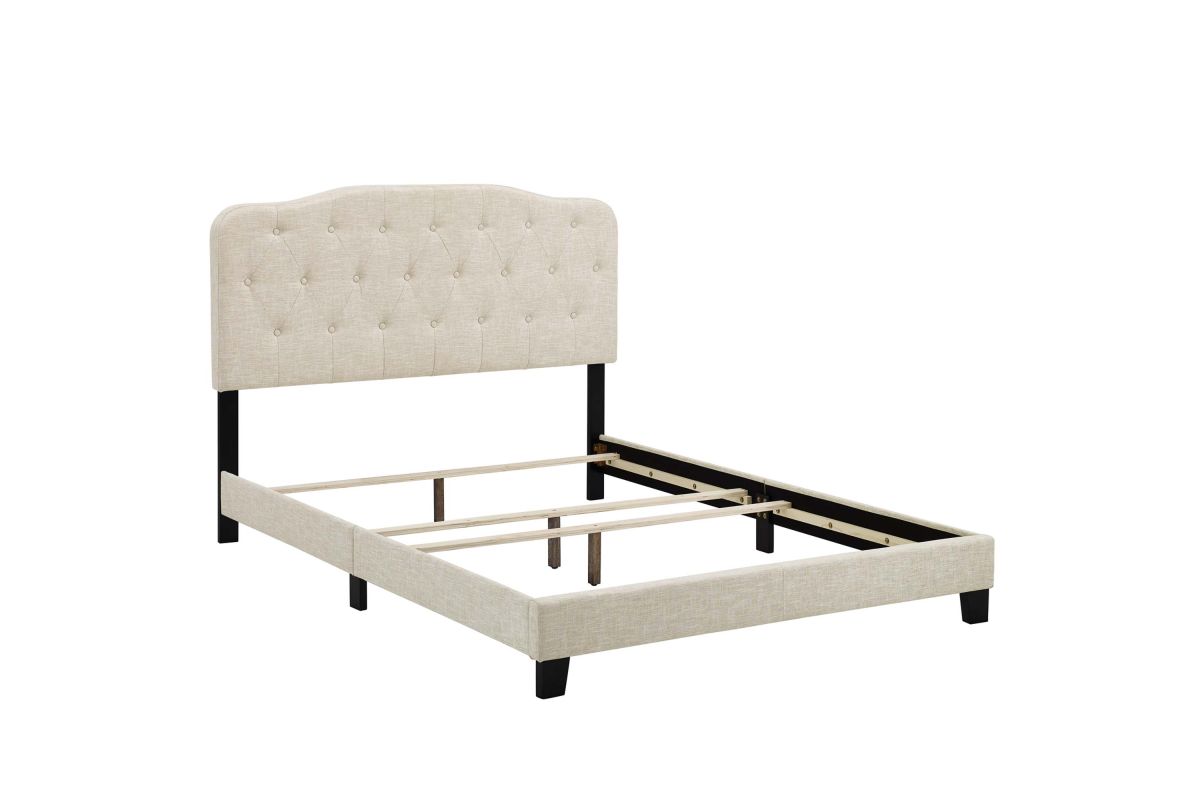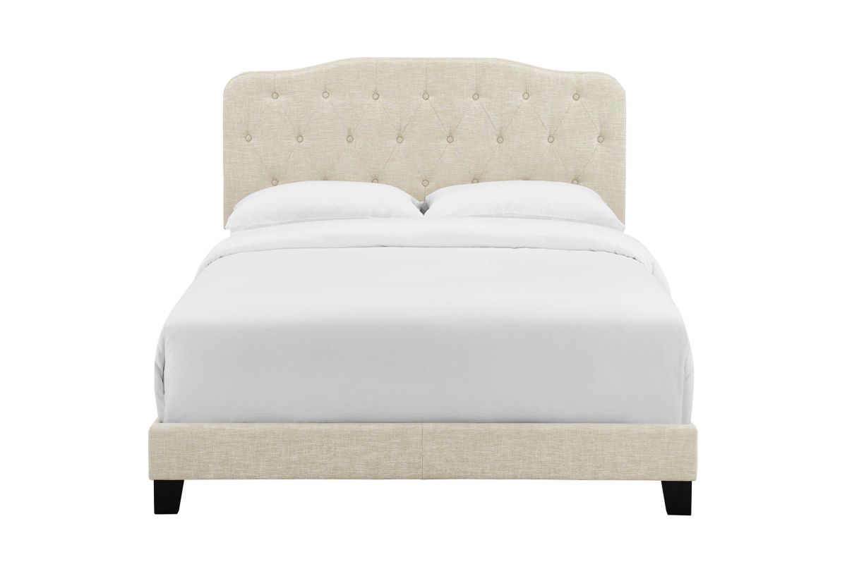 Refresh your bedroom space with the cozy elegance of the Amelia Full Bed. Designed with chic style and contemporary charm, Amelia is upholstered in soft polyester fabric and features a timeless button-tufted headboard, solid wood and LVL construction, and wood legs with non-marking caps. Complete with reinforced center beams for maximum stability, Amelia accommodates memory foam, spring, latex, and hybrid mattresses. A modern centerpiece to a teenager's bedroom or guest suite, this upholstered bed frame effortlessly transforms bedroom decor with its gentle curves and luxe look. Box spring required (not included). Bed Weight Capacity: 800 lbs.