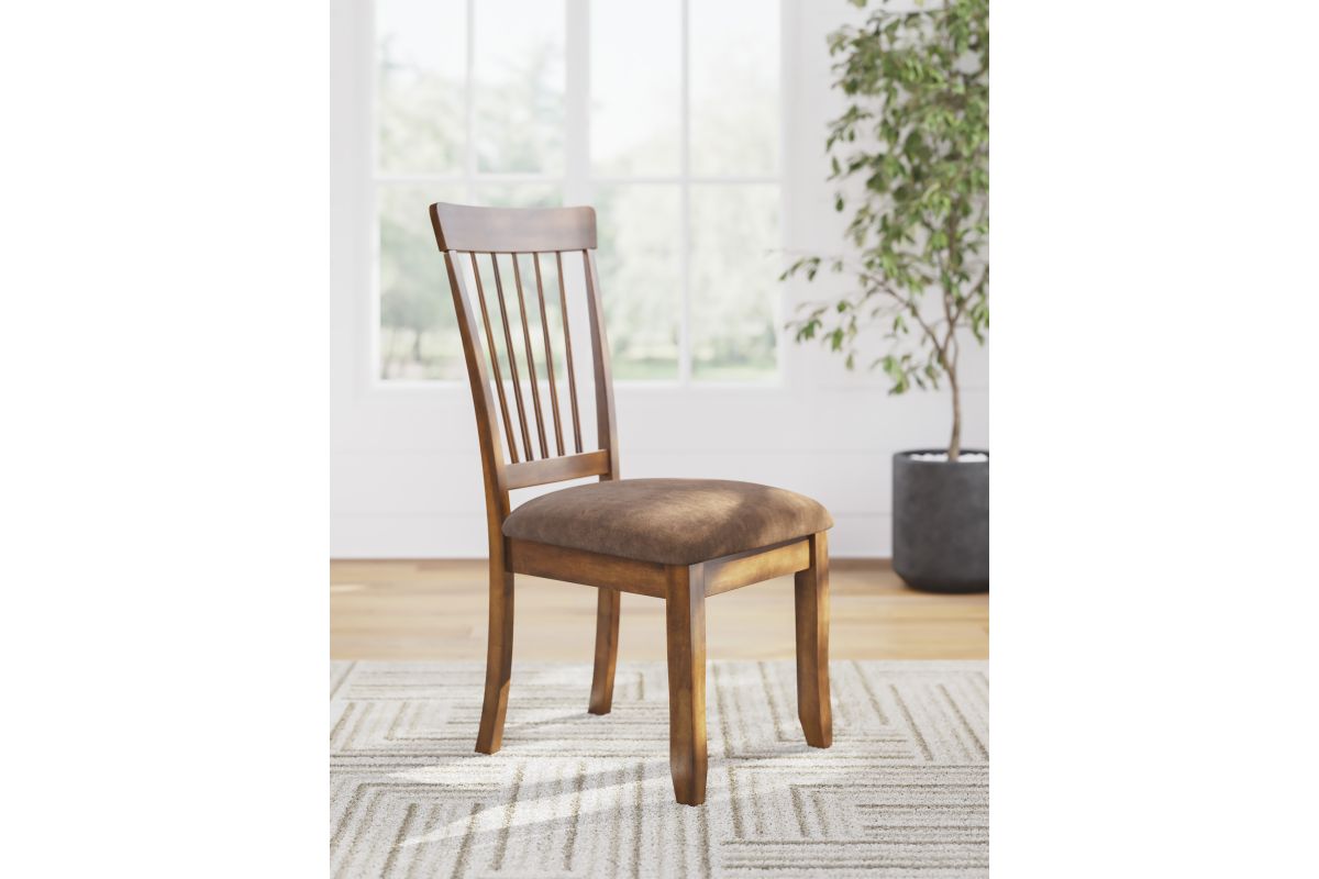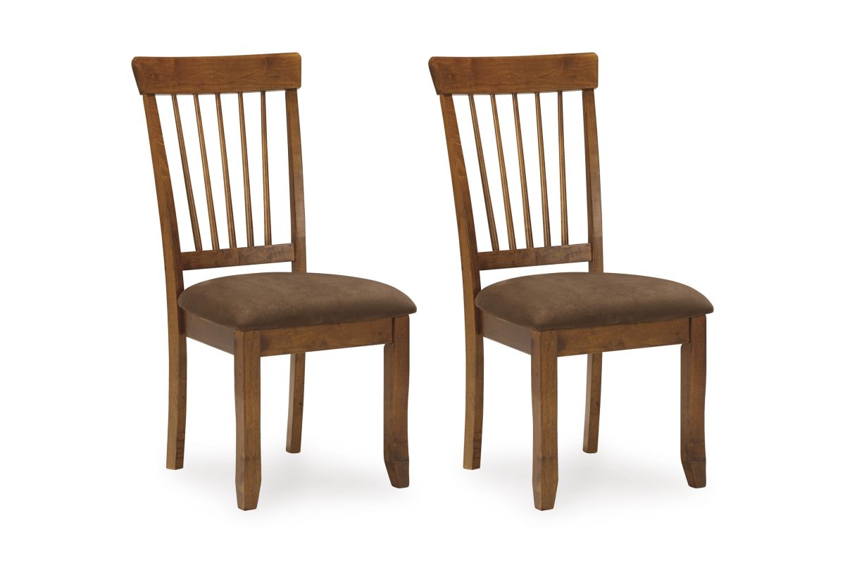 This handsome chair serves up elegance family style. The rich finish and simple profile are always in vogue, whether your aesthetic is vintage, country or traditional. Upholstered side chair has a classic spindle back and seat covered in easy-to-maintain microfiber.
