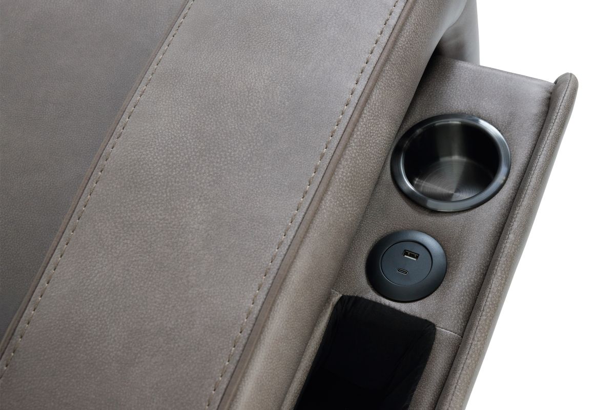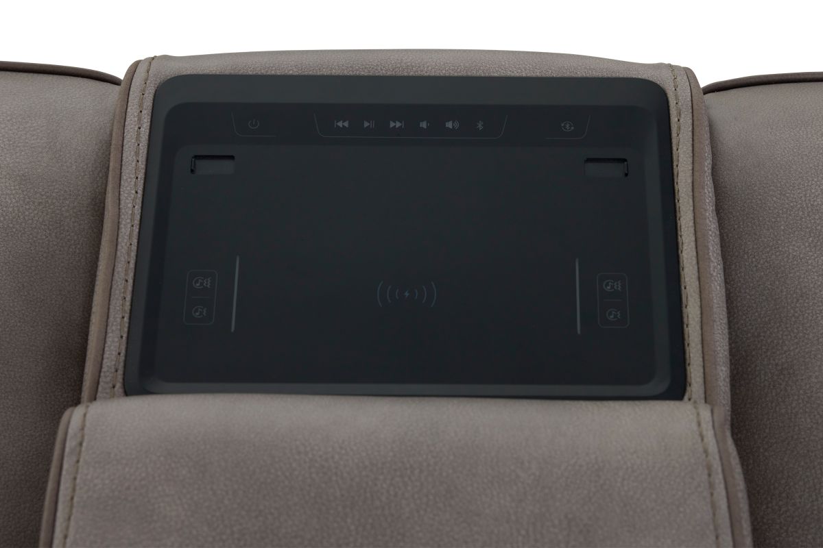 The centerpiece of this loveseat is the Okin audio table, engineered with immersive audio through dual built-in speakers for a rich, theater-like sound experience. The table also features mass vibration, wireless charging, and both USB-A and USB-C ports for seamless device connectivity.