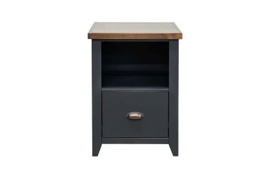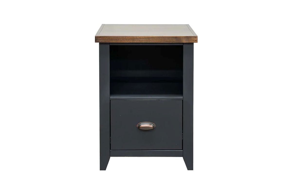The Essex File Cabinet combines the charm of coastal cottage aesthetics with the simplicity of modern farmhouse design. Featuring a distinctive Black and Whiskey finish complemented by oil-rubbed bronze hardware, this cabinet includes a storage drawer and shelf, perfectly complementing any writing desk. Its versatile style makes it an ideal choice for organizing your workspace.