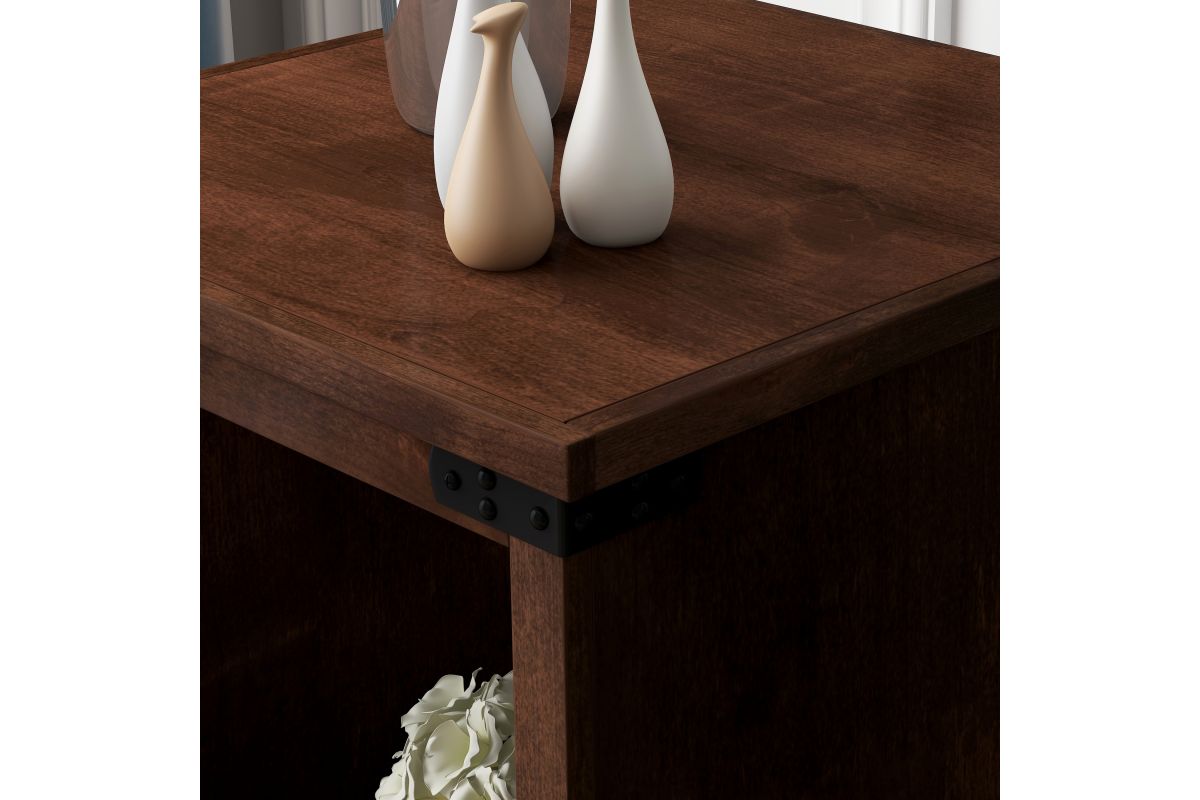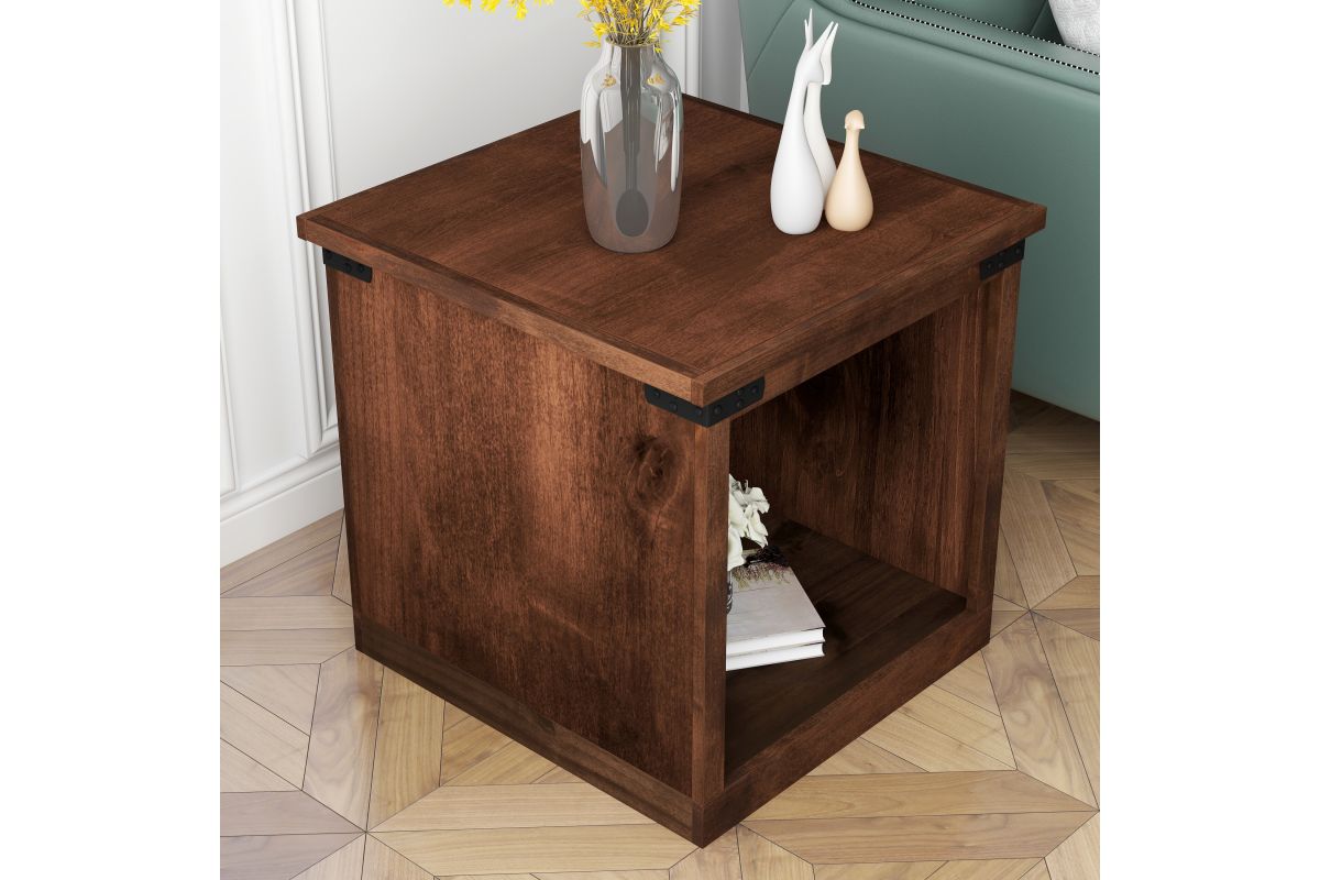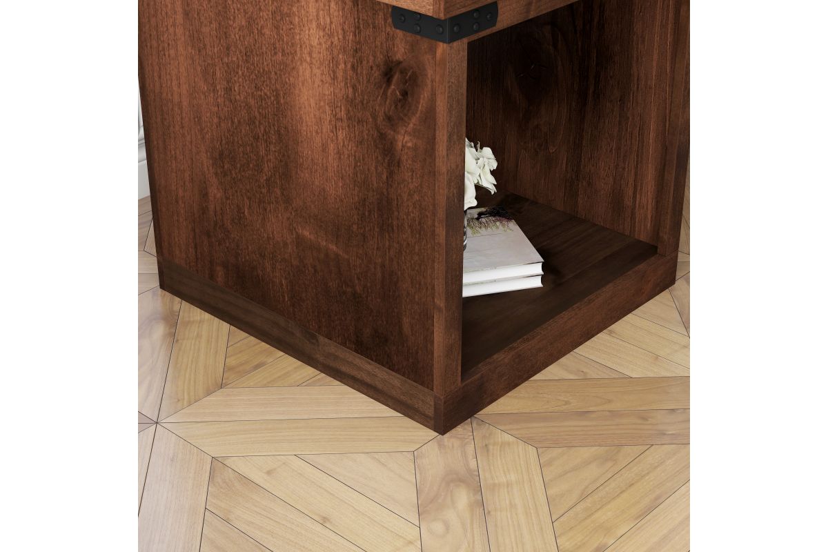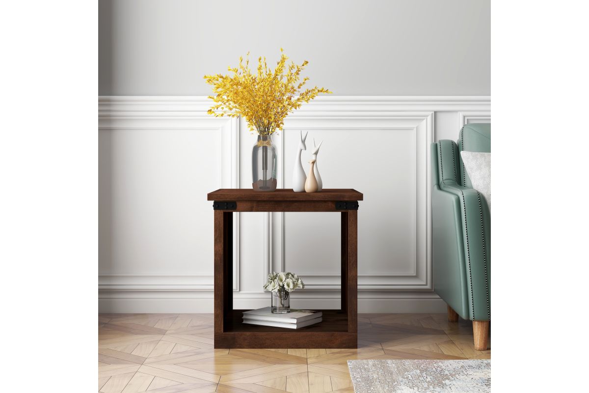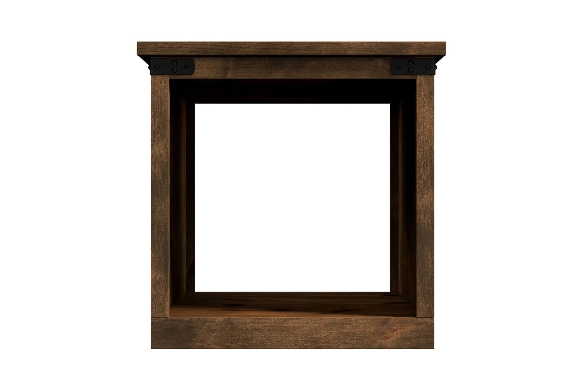 Enhance your living space with the Farmhouse End Table, a perfect match for modern farmhouse decor. This end table combines open storage with chic metal accents, ensuring both style and functionality. Coordinate it seamlessly with our Farmhouse TV and Fireplace Stands for a complete look.