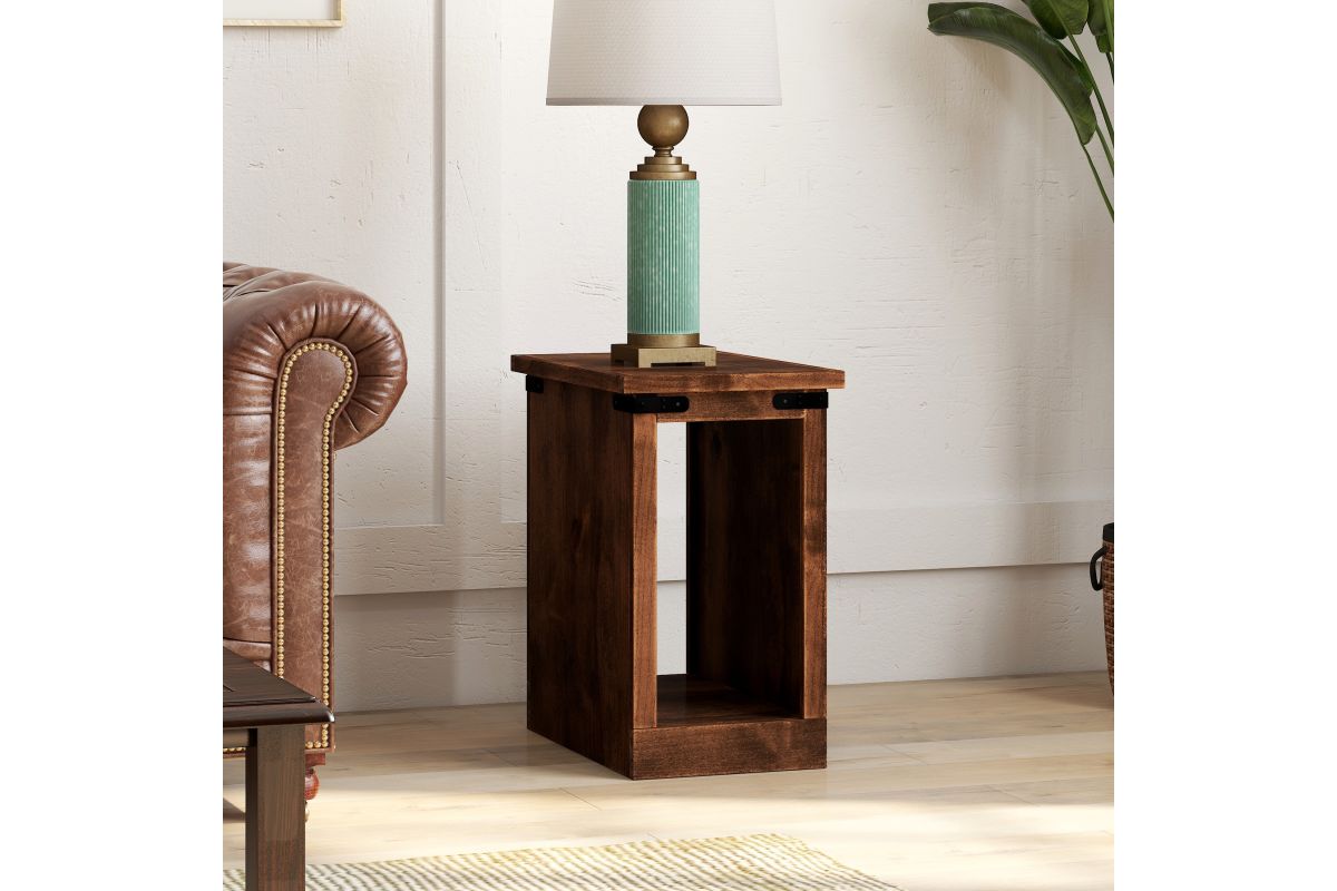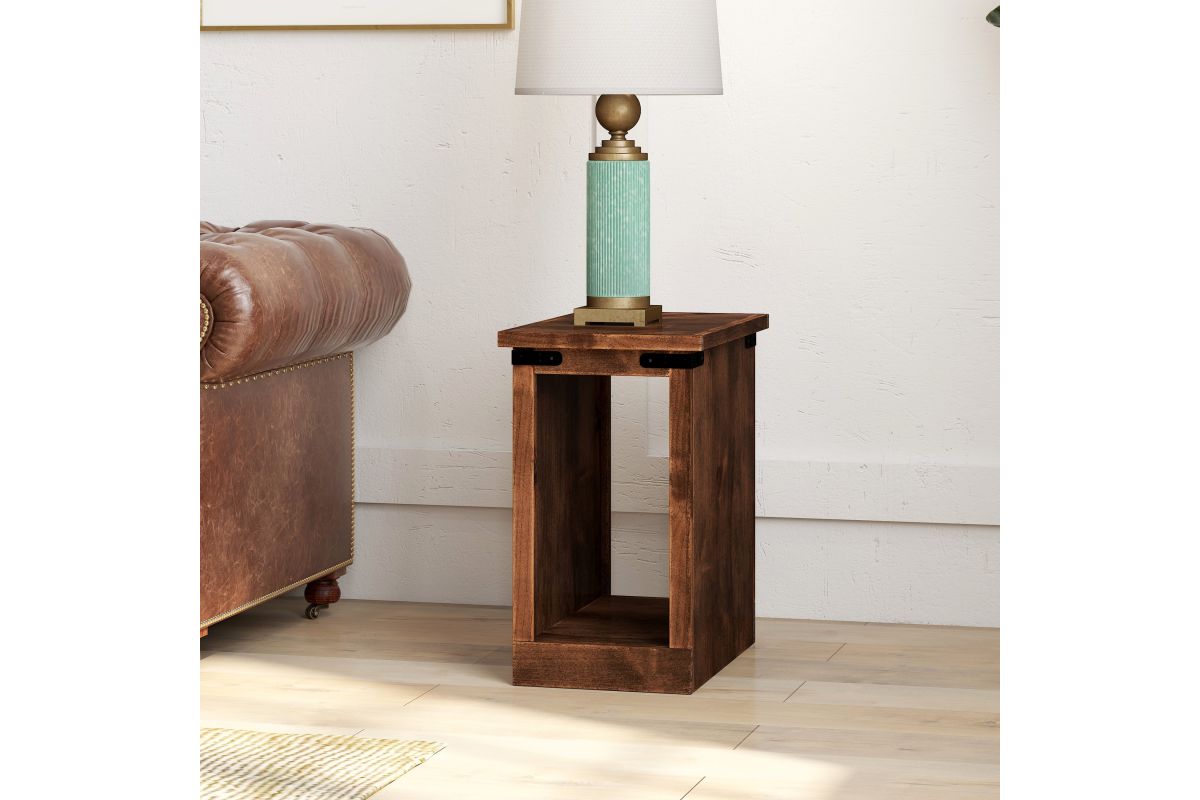 Enhance your modern farmhouse decor with the Farmhouse Chairside Table. This piece pairs seamlessly with our Farmhouse TV and Fireplace Stands, creating a unified look in your living space. Featuring open storage and chic metal accents, it helps keep your living room tidy and stylish.