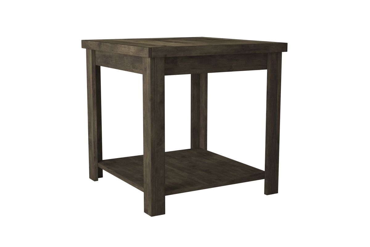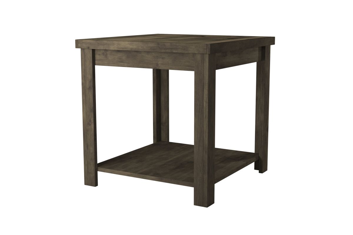 Enhance your rustic living room decor with the Joshua Creek End Table. This piece features a spacious top surface and an open shelf below, perfect for keeping essentials organized. Its robust design and charming style make it a great addition to any space.