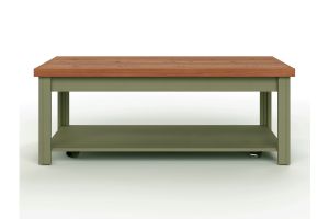 Enhance your living space with the Vineyard Coffee Table, perfect for coastal-cottage or modern farmhouse decor. This coffee table features a spacious top and an open shelf below, providing ample storage and display options. Keep your living room organized and stylish with this charming piece.