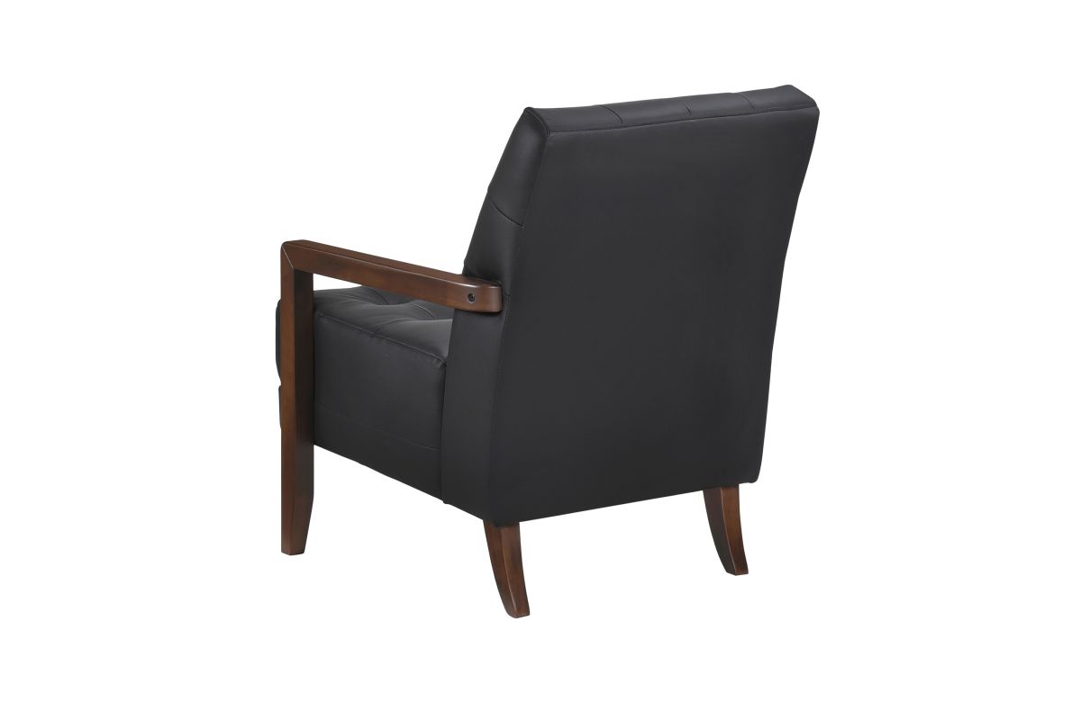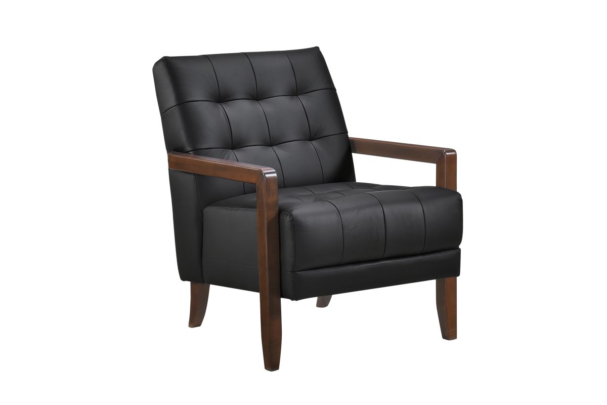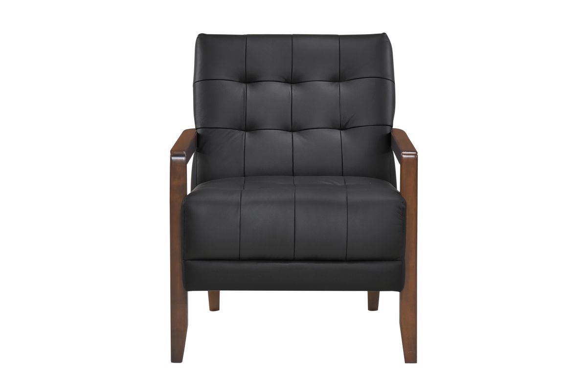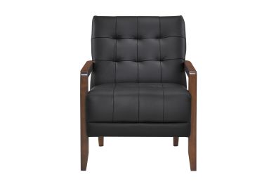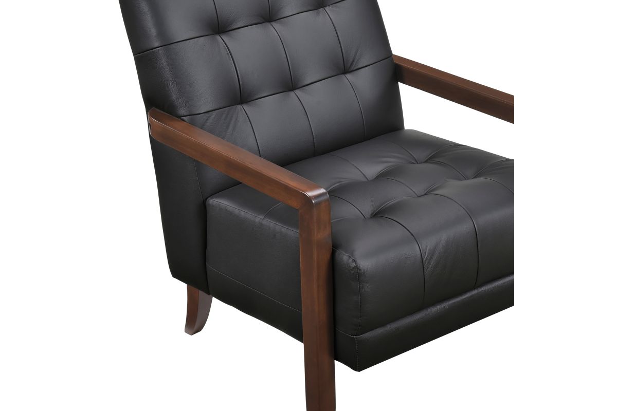 Elevate your living space with this top grain leather match accent chair, designed for timeless elegance, premium comfort, and lasting durability. Featuring a mid-century modern silhouette, deep tufted detailing, and a solid wood frame with sleek armrests, this chair blends sophisticated style with everyday functionality. The plush, high-density foam cushioning provides exceptional support, while the top grain leather match upholstery offers a luxurious look and soft, supple feel. Built with sturdy wooden legs and reinforced construction, this accent chair is perfect for living rooms, home offices, reading nooks, or bedroom seating, adding a touch of refined charm to any decor.