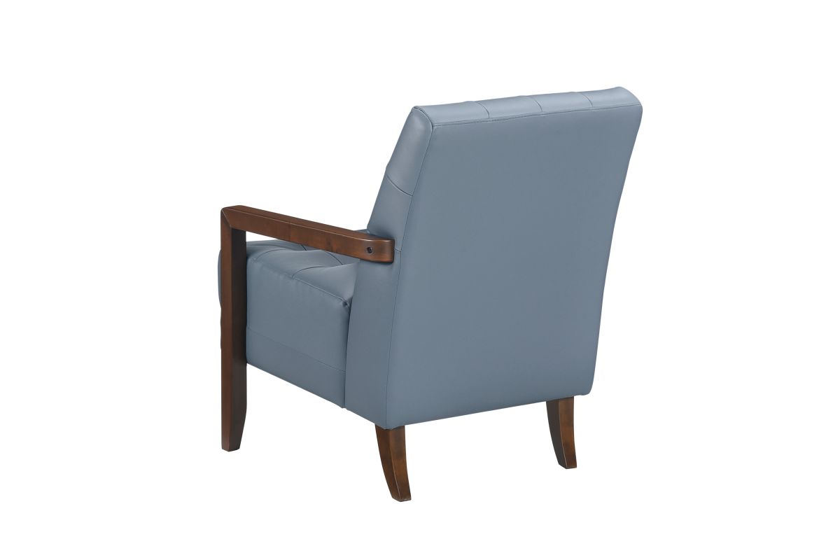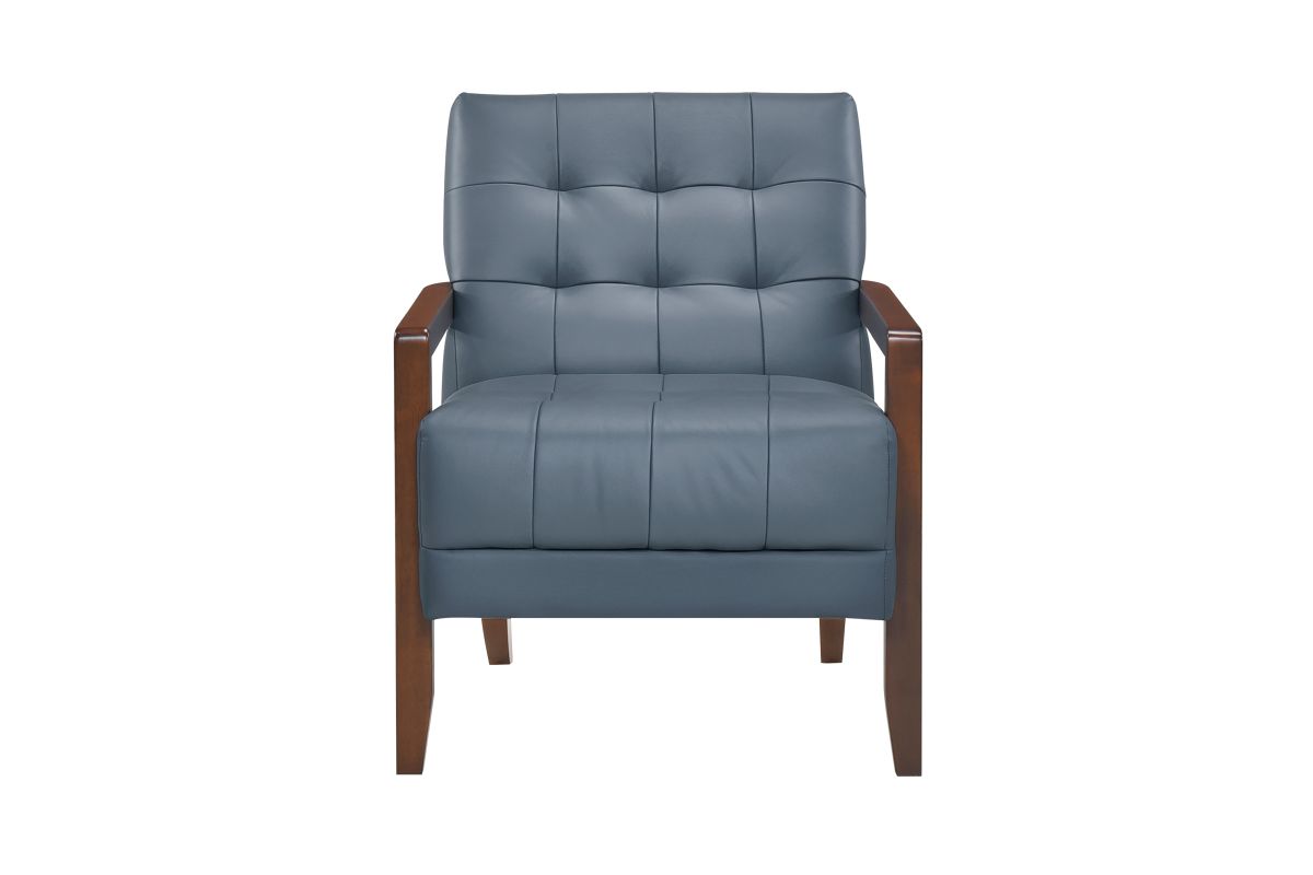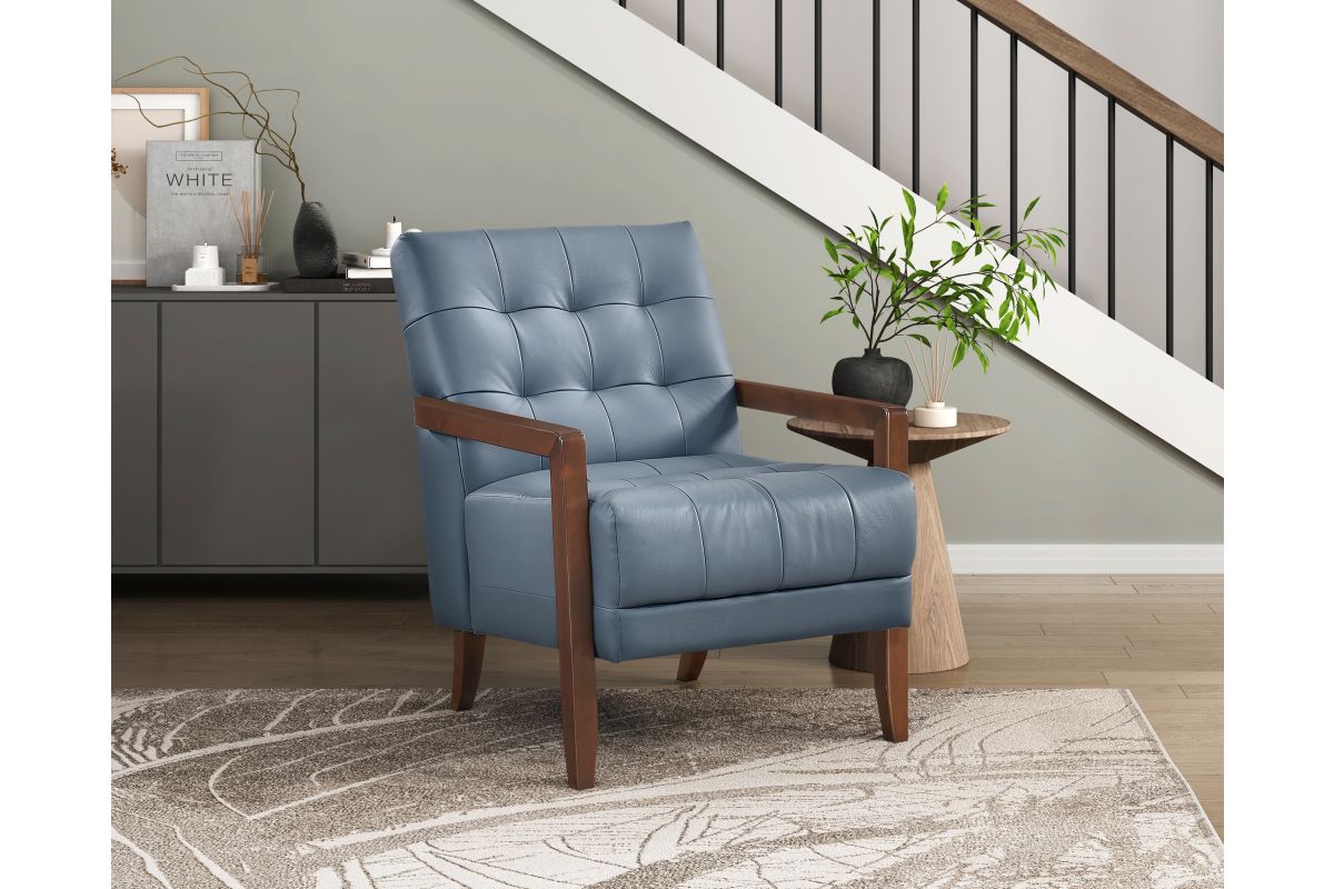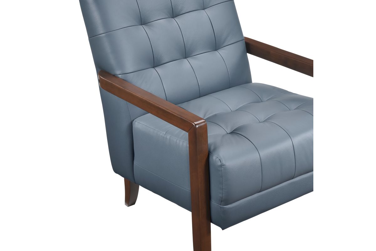 Elevate your living space with this top grain leather match accent chair, designed for timeless elegance, premium comfort, and lasting durability. Featuring a mid-century modern silhouette, deep tufted detailing, and a solid wood frame with sleek armrests, this chair blends sophisticated style with everyday functionality. The plush, high-density foam cushioning provides exceptional support, while the top grain leather match upholstery offers a luxurious look and soft, supple feel. Built with sturdy wooden legs and reinforced construction, this accent chair is perfect for living rooms, home offices, reading nooks, or bedroom seating, adding a touch of refined charm to any decor.